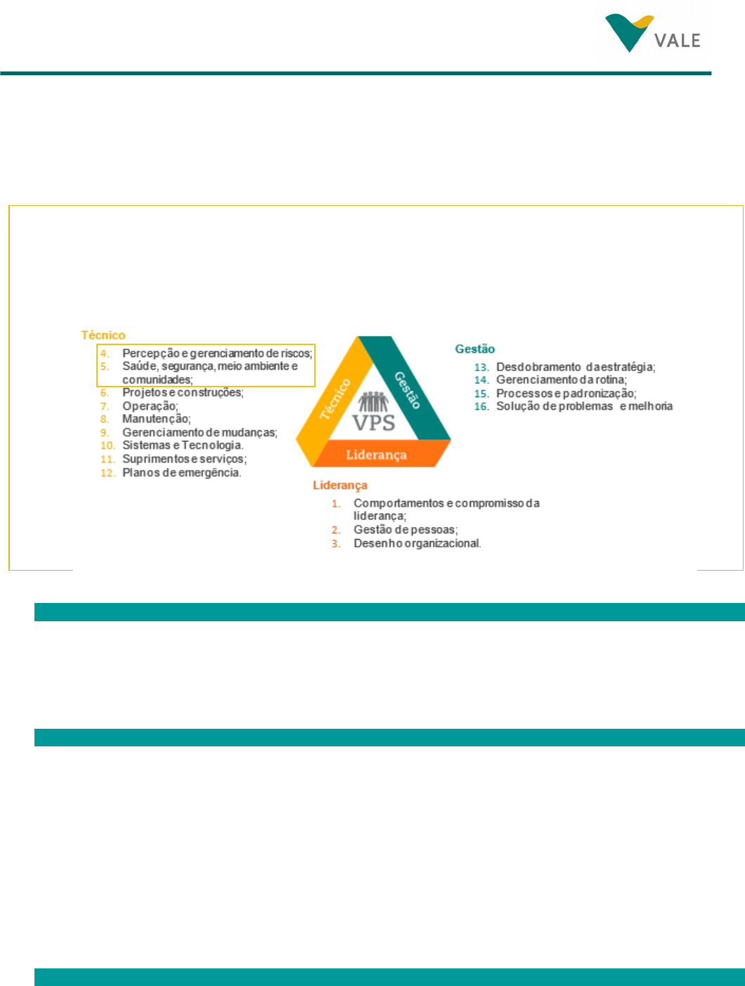 PROCEDIMENTO PARA ELABORAÇÃO E IMPLEMENTAÇÃO DE PGR PRO-023890, Rev.03: 14/01/2022 Diretoria Emitente: DIR SSMA RISCOS E COMUNIDADE Responsável(is) Técnico(s): Alander Torres, Matrícula 81013689 e Regina Freitas, Matrícula 01731430 Público Alvo: Responsáveis técnicos pela elaboração do PGR Necessidade de Treinamento: ( )Sim (x)Não PROCEDIMENTO PARA ELABORAÇÃO E IMPLEMENTAÇÃO DE PGR PRO-023890, Rev.03: 14/01/2022 Resultado esperado: Garantir a padronização dos Programas de Gerenciamento de Riscos – PGR nas Diretorias de Operações Ferrosos Sudeste e Sul. Associação com VPS: 1. Objetivo Definir diretrizes mínimas para elaboração e implementação do Programa de Gerenciamento de Riscos (PGR ) previsto Norma Regulamentadora 22 – Saúde e Segurança Ocupacional na Mineração, da Portaria n.º 3.214 de 08 de junho de 1978 do Ministério do Trabalho e Emprego, com as devidas alterações dispostas na Portaria nº 1.085, de 18 de dezembro de 2018 e demais instrumentos legais. 2. Aplicação Este procedimento aplica-se em todas as unidades operacionais das Diretorias de Operações Ferrosos Sudeste e Sul. Para as outras diretorias que atendem estas diretorias e estão instaladas dentro das minas, deverão definir, elaborar, implementar e gerenciar documento que contemple no mínimo as etapas: · Estabelecimento de Metas de S&S; · Definição do Fluxograma; · Antecipação, Identificação, Avaliação e Gerenciamento dos Riscos; · Cronograma de Ações. 3. Referências · NOR-0003-G: Norma Gestão de Riscos. · PGS-003123: Diretrizes para o Gerenciamento de Riscos em Saúde, Segurança e Meio Ambiente. · Portaria 3.214/78: Norma Regulamentadora NR01, NR09 e NR22. · PRO-022889: Orientações para Elaboração do PPRA e do Anexo de Riscos Ambientais do PGR. · PRO-028346: Central de Documentação – CEDOC / GED Segurança do trabalho. · PRO-029020: Matriz de Aplicabilidade 4. Elaboração do PGR A redação contida no Anexo 8 - Modelo Documento Base PGR Padrão deste procedimento estrutura as informações sobre o gerenciamento de risco portanto, deverá ser aplicada como padrão. Em caso de necessidade de alteração, esta deverá ser compartilhada com os Responsáveis Técnicos pela elaboração do PGR de cada estabelecimento das diretorias, exceto aqueles que estão com o campo “Clique aqui para inserir seu texto” para informações específicas. Os PGR’s (VALE e Contratada) deverão ser elaborados e implementados por estabelecimento, conforme o modelo padrão constante no Anexo 8 - Modelo Documento Base PGR Padrão e seus anexos. Após a elaboração do documento base, este deve ser mantido impresso e assinado na unidade de referência, podendo os anexos e evidências do programa estarem em meio eletrônico ou físico. Após realização da análise crítica, o PGR deve ser escaneado e arquivado no GED – Segurança do Trabalho. 4.1 Controle de Revisões As revisões realizadas no documento base do PGR ou nos anexos devem ser registradas através do “Quadro de Controle de Revisões” contido no próprio programa. As revisões devem registradas pelo responsável técnico local. O quadro de revisões deve ser contínuo, evidenciando toda a alteração do programa e os documentos revisados, incluindo as páginas alteradas e devem ser arquivados a cada 12 meses juntamente com a análise crítica. Neste quadro podem ser registrados outros comentários que o responsável pelo programa julgar necessário. No caso de alteração do “Cronograma de Ações” o responsável da referida ação deverá solicitar formalmente a revisão por meio físico ou eletrônico. O responsável técnico local pelo programa deverá promover revisão do cronograma mantendo a arquivo da solicitação realizada. 4.2 Estabelecimento de Metas As metas devem sempre ser mensuráveis através de indicadores que possibilitem a comparação do resultado. Ex: Cumprir em x. % das ações previstas em planos de ação oriundos das ferramentas proativas de S&S. A definição de metas deve estar alinhada com as diretrizes internas da empresa nos quesitos de S&S, com a legislação e sistema de gestão e, ainda, com desdobramento de ações no cronograma do programa. No caso de alteração de metas, o responsável técnico pelo programa deverá promover a revisão. 4.3 Definição do Fluxograma O fluxograma que figura o PGR deve ser macro para representar as principais etapas dos processos produtivos da unidade permitindo identificar como ocorre o desenvolvimento destas. 4.4 Antecipação, Identificação, Avaliação e Gerenciamento dos Riscos Itens 1.5.3.2, 1.5.4.2, 1.5.4.3, 1.5.4.4, 1.5.5, 1.5.7 – NR01 As metodologias e ferramentas utilizadas ao processo de gerenciamento de riscos serão aplicadas conforme as normas corporativas da empresa, podendo, inclusive, haver mais de uma disponível conforme o período de análise. Abaixo segue quadro indicativo: Tipo de Cenário de Risco Ferramenta/Metodologia Riscos de Acidentes/Mecânico ART e/ou APR e/ou ferramenta de gerenciamento de riscos. Riscos Ergonômicos APR-ERGO E/OU AET e/ou ferramenta de gerenciamento de riscos. Riscos Ambientais APRHO e/ou Laudos Quantitativos e/ou ferramenta de gerenciamento de riscos. Tabela 1 - Cenários de Riscos e Ferramentas/Metodologia. As ferramentas citadas acima servem de evidência da análise de risco e devem ficar arquivadas nas gerencias conforme tempo de retenção definido em procedimento local. As análises de riscos devem ser revisadas sempre que houver alterações nos processos ou tarefas que levem a identificação de novos “Perigos ou condições perigosas” ou alteração da classificação dos “Perigos” já existentes para “Alto ou Muito Alto”. 4.5 Cronograma de Ações O cronograma é um consolidado de ações aplicáveis ao estabelecimento tendo consonância com as metas estabelecidas e com as análises de riscos. Tais ações devem estar cadastradas no sistema informatiz