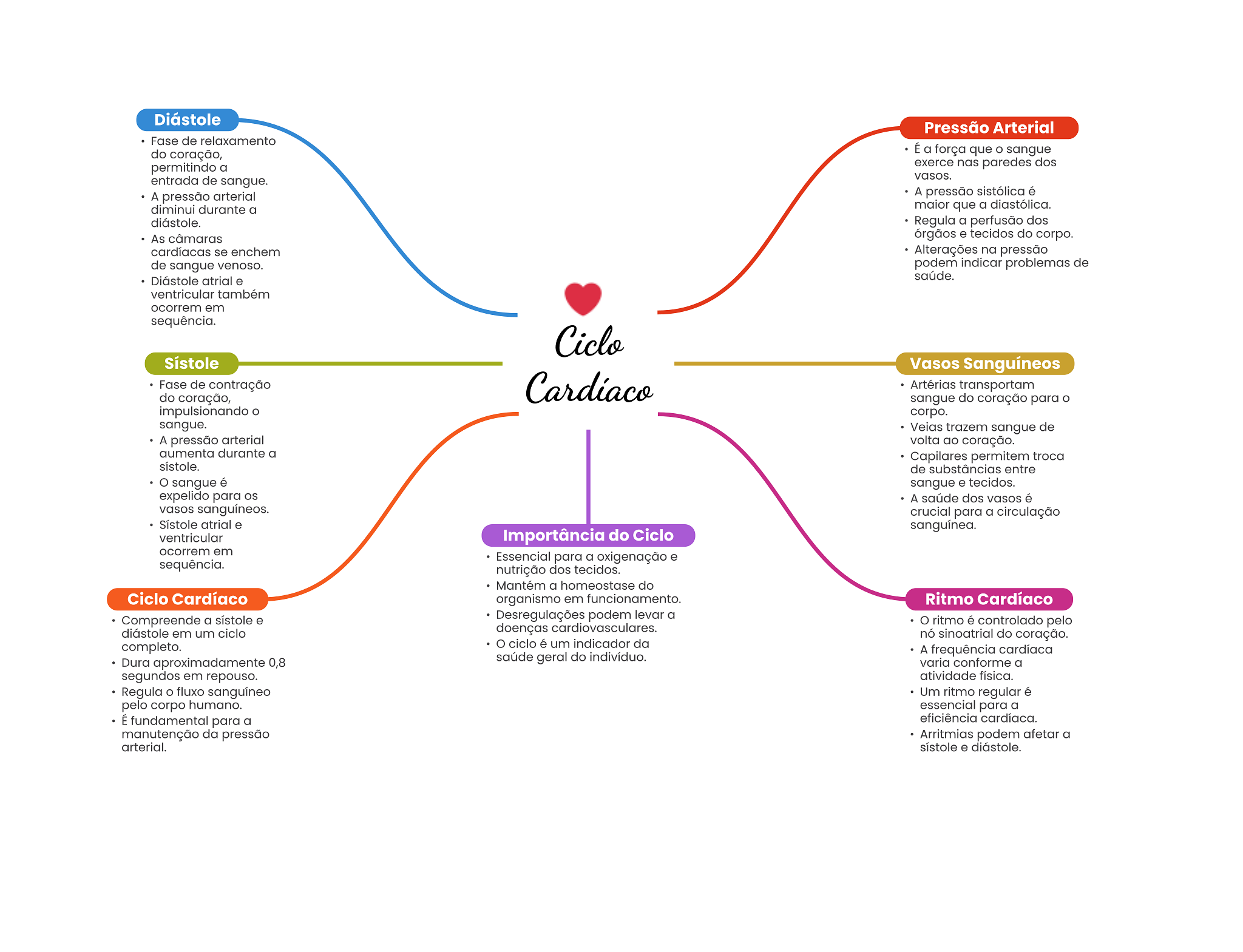 Diástole Pressão Arterial Fase de relaxamento do coração, É a força que sangue permitindo a exerce nas paredes dos entrada de sangue. vasos. A pressão arterial A pressão sistólica é diminui durante a maior que a diastólica. diástole. Regula a perfusão dos As câmaras órgãos e tecidos do corpo. cardíacas se enchem Alterações na pressão de sangue venoso. podem indicar problemas de Diástole atrial e saúde. ventricular também ocorrem em sequência. Ciclo Sístole Vasos Sanguíneos Fase de contração do coração, Cardíaco Artérias transportam sangue do coração para O impulsionando corpo. sangue. Veias trazem sangue de A pressão arterial volta ao coração. aumenta durante a Capilares permitem troca sístole. de substâncias entre sangue é sangue e tecidos. expelido para OS A saúde dos vasos é vasos sanguíneos. crucial para a circulação Sístole atrial e sanguínea. ventricular Importância do Ciclo ocorrem em Essencial para a oxigenação e sequência. nutrição dos tecidos. Mantém a homeostase do Ciclo Cardíaco organismo em funcionamento. Ritmo Cardíaco Compreende a sístole e Desregulações podem levar a ritmo é controlado pelo diástole em um ciclo doenças cardiovasculares. nó sinoatrial do coração. completo. ciclo é um indicador da A frequência cardíaca Dura aproximadamente 0,8 saúde geral do indivíduo. varia conforme a segundos em repouso. atividade física. Regula fluxo sanguíneo Um ritmo regular é pelo corpo humano. essencial para a É fundamental para a eficiência cardíaca. manutenção da pressão Arritmias podem afetar a arterial. sístole e diástole.