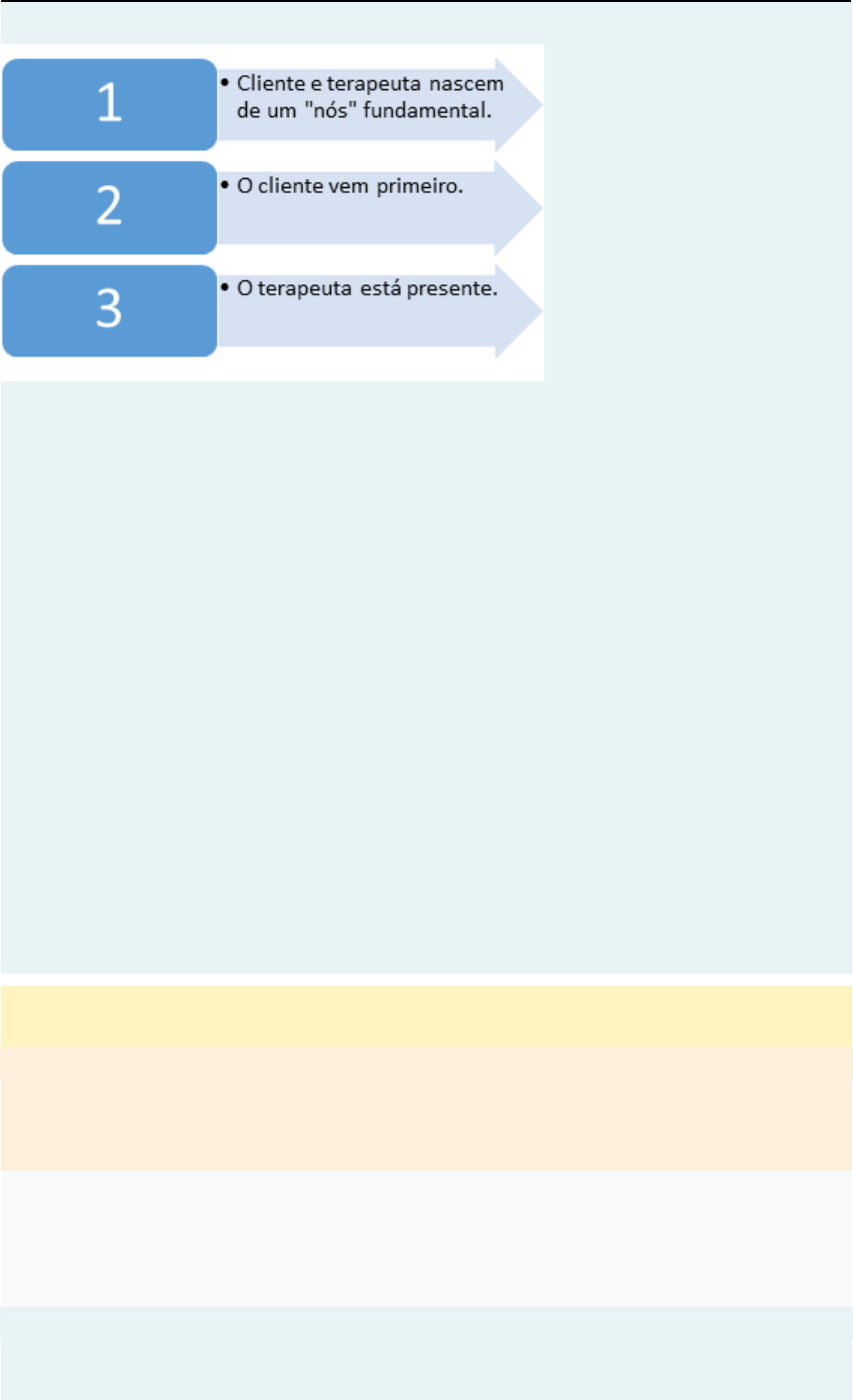 Parte superior do formulário Observe a imagem a seguir com três característica da ACP: Após observar atentamente a figura anterior, assinale a alternativa que descreve o princípio da ACP que diz “O terapeuta está presente”. Escolha uma opção: a. O que o cliente mostra, revela? O que ele ou ela deseja que seja compreendido? b. A função do terapeuta é de acolher e julgar a veracidade das falas do cliente na busca de um diagnóstico eficaz e de um tratamento eficiente. c. Está enraizada na convicção de que não somos meramente indivíduos a-contextuais, mas existimos apenas como parte de um “Nós”. d. Que o cliente é um especialista em problemas e métodos, e o terapeuta seja um facilitador. e. Significa estar presente e disponível como pessoa para o cliente, que o terapeuta encontra o cliente pessoa a pessoa. A resposta está correta, pois a presença é a forma fundamental de "estar junto" e isso só é possível da perspectiva do Nós. Feedback Sua resposta está correta. A resposta correta é: Significa estar presente e disponível como pessoa para o cliente, que o terapeuta encontra o cliente pessoa a pessoa. Questão 2 Incorreto Atingiu 0,00 de 1,00 Remover marcação Texto da questão A Terapia Centrada na Pessoa é uma abordagem humanista que foi criada por Rogers em resposta aos modelos tradicionais da Psicologia da época, o Behaviorismo e a Psicanálise, ambos considerados por ele como abordagens reducionistas com uma visão de homem igualmente reducionista, sendo assim, focou seus estudos em uma abordagem que coloca o cliente em primeiro lugar. Por quê? Assinale a resposta correta. Escolha uma opção: a. Porque é com ele que estão os problemas. b. Porque a terapia é para o cliente. c. Porque ele está em sofrimento. d. Porque ele é o centro da vida dele. e. Porque ele é quem paga a terapia. Feedback Sua resposta está incorreta. A resposta correta é: Porque a terapia é para o cliente. Questão 3 Incorreto Atingiu 0,00 de 1,00 Remover marcação Texto da questão A Abordagem Centrada na Pessoa foi desenvolvida, pensada, refletida e concretizada com base nos conceitos da Filosofia Humanista e no desenvolvimento da Psicologia Humanista. Sendo assim, assinale a alternativa que justifica a escolha da Psicologia e da Filosofia Humanista por Roger para o desenvolvimento de sua teoria. Escolha uma opção: a. A abordagem humanística entende que as pessoas são capazes e autônomas, que podem resolver suas dificuldades e concretizar seu potencial de mudar a vida de forma positiva. b. A abordagem humanista não permite que o ser humano seja compreendido de forma diferente do que ele é, os problemas que são tratados na terapia são semelhantes a todos os outros apresentados por seres humanos. c. a. A abordagem humanista entende a pessoa como um conjunto de ambiguidades e que isso acarreta a possibilidade de ser aproveitada em qualquer forma de teoria. d. A abordagem humanista entende que as pessoas não podem resolver seus problemas sozinhas, elas precisam de um aconselhamento, de alguém capaz de direcioná-las para o caminho correto. e. A abordagem humanista prevê a construção de um ser humano perfeito com base em uma eugenia liberal apoiada pela manutenção política dos status quo político. Feedback Sua resposta está incorreta. A resposta correta é: A abordagem humanística entende que as pessoas são capazes e autônomas, que podem resolver suas dificuldades e concretizar seu potencial de mudar a vida de forma positiva. Questão 4 Correto Atingiu 1,00 de 1,00 Remover marcação Texto da questão Leia o texto a seguir e faça o que se pede. Desde o início de sua carreira, Rogers foi um pesquisador perspicaz, e essa atividade de pesquisa se expandiu consideravelmente após sua passagem para o setor universitário, onde estimulou abordagens inovadoras e vigorosos programas de pesquisa no processo de aconselhamento/psicoterapia, frequentemente envolvendo outros colegas que passaram a desenvolver aplicações dessa abordagem relacional que incluiu terapia lúdica, resolução de conflitos, ensino centrado no aluno e liderança e administração centrada no grupo. Assinale a alternativa que preenche adequadamente a lacuna do texto anterior. Escolha uma opção: a. Psicoterapia/participação política. b. Participação política/relações intergrupais. c. Aconselhamento/psicoterapia. A resposta está correta, pois a Terapia Centrada na Pessoa continuou a crescer e se desenvolver nas décadas intermediárias com o acréscimo de uma ampla gama de postulados teóricos e clínicos, com o desenvolvimento de diferentes "tribos" de prática teórica compartilhando valores comuns e o revigoramento de pesquisas. d. Aconselhamento/participação política. e. Aconselhamento/relações intergrupais. Feedback Sua resposta está correta. A resposta correta é: Aconselhamento/psicoterapia. Questão 5 Correto Atingiu 1,00 de 1,00 Remover marcação Texto da questão Leia o texto a seguir e faça o que se pede. Ele representa resumidamente nossos esforços para alcançar nossos objetivos ou ideais. Em outras palavras, são nossas ambições e objetivos dinâmicos. À medida que nossa sociedade diverge da tendência de atualização, e somos forçados a viver com condições de valor que estão em desacordo com a valoração organísmica e recebemos apenas consideração positiva condicional e autoestima, desenvolvemos em vez disso um _________. Assinale a alternativa que completa o texto adequadamente. Escolha uma opção: a. Conceito equivocado de nós mesmos. b. Eu ideal. A resposta está correta. Por ideal, Rogers (1961) sugeriu que há algumas coisas situadas além de nosso alcance que podem resultar da lacuna entre o eu real e o eu ideal. Na verdade, esse Eu é gerado por influências externas a nós. c. Quadro patológico. d. Processo depressivo. e. Conhecimento e si mesmo. Feedback Sua resposta está correta. A resposta correta é: Eu ideal. Questão 6 C