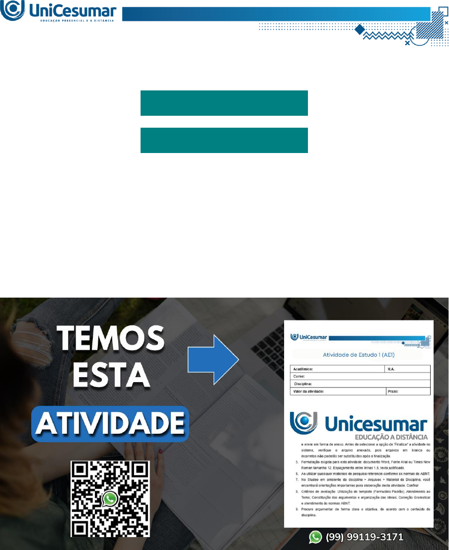 (99) 99119-3171 (99) 99119-3171 Olá!!! Somos da Assessoria Excellence Educacional e iremos te ajudar com este trabalho! Entre em contato conosco! ATIVIDADE 1 - ECIV - ESTRADAS E RODOVIAS - 54_2025 ATIVIDADE 1 - ECIV - ESTRADAS E RODOVIAS - 54_2025 ATIVIDADE 1 - ESTRADAS E RODOVIAS INSTRUÇÕES DE ENTREGA Esta atividade 1 deve ser feita individualmente. Leia todo o enunciado com atenção antes de começar a fazer a atividade. Como finalizar e entregar a Atividade 1: Ao final do seu trabalho, é necessário que você tenha UM ARQUIVO em mãos. A seguir, algumas possibilidades de arquivo que você pode entregar: → '.jpg', '.pdf', '.doc', '.zip' ou '.rar'. Obs.: O STUDEO ACEITA SOMENTE O ENVIO DE UM ANEXO/ARQUIVO. Problemas frequentes a evitar: → Coloque um nome simples no seu arquivo. Se o nome tiver caracteres estranhos (principalmente pontos) ou for muito grande, é possível que a equipe de correção não consiga abrir o seu trabalho, e ele seja zerado. → Se você usa OPEN OFFICE ou MAC, transforme o arquivo em .pdf para evitar incompatibilidades. finalizado você não poderá mais modificar o arquivo. Sugerimos que você clique no link gerado da sua atividade e faça o download para conferir. ATENÇÃO! Sobre plágio e outras regras: → Esta Atividade 1 é, obrigatoriamente, individual, ou seja, não pode ser feita em duplas, trios, quartetos etc. → Não é permitido que duas ou mais pessoas entreguem o mesmo trabalho. Se isso acontecer, todos os envolvidos terão suas atividades zeradas. → Trabalhos copiados da internet ou de outros alunos serão zerados. EQUIPE PEDAGÓGICA CURSOS HÍBRIDOS | ENGENHARIA CIVIL DISTÂNCIA DE VISIBILIDADE DE FRENAGEM Ao elaboramos projetos rodoviários, alguns elementos imprescindíveis devem ser verificados para que a rodovia apresente segurança aos seus usuários, como distância de visibilidade de frenagem e a distância de visibilidade de ultrapassagem, dois elementos muito importantes para a segurança da via. Por definição, a Distância de Visibilidade é a extensão que pode ser vista à frente pelo motorista. A partir desta que se realizam alguns tipos de movimentações sobre a pista, por exemplo, frenagens. Assim, quanto mais uma estrada permite que o usuário tenha uma maior distância de visibilidade, mais segura essa via é nesse aspecto. A partir do exposto acima e de seus conhecimentos, determine: 1) A distância de visibilidade desejável e mínima para frenagem em uma rodovia com velocidade de projeto de 120 km/h, estando o veículo em rampa ascendente de 1%. 2) Calcular as distâncias de visibilidade desejável e mínima para frenagem em uma rodovia com velocidade de projeto de 120 km/h, estando o veículo em rampa descendente de 3%. 3) Qual dos valores (distância desejável ou distância mínima) é exigido em obediência ao manual de projeto geométrico de rodovias rurais? Por qual motivo busca-se atingir os valores desejáveis sempre que possível? 4) Compare os valores encontrados nos itens 1 e 2 com as tabelas 5.3.1.3 e 5.3.1.4. Explique com suas palavras o motivo de haver diferença entre o cálculo e o valor tabelado. Utilize como referência os dados contidos no Manual de projeto geométrico de rodovias rurais do DNIT, disponível em: https://www.gov.br/dnit/pt- br/assuntos/planejamento-e-pesquisa/ipr/coletanea-de- manuais/vigentes/706_manual_de_projeto_geometrico.pdf, quadro 5.3.1.2. Bons estudos!