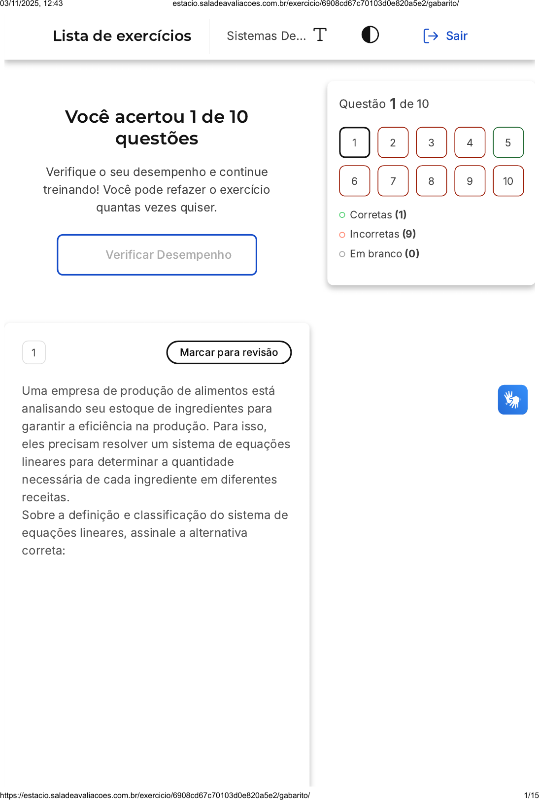 Você acertou 1 de 10