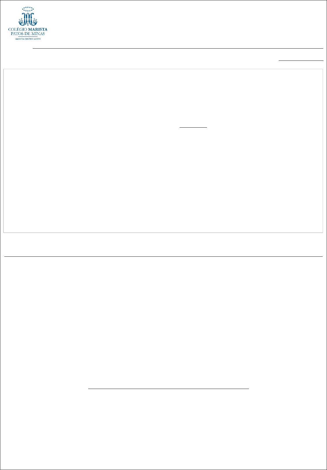 P1/ AVALIAÇÃO SOMATIVA – PRODUÇÃO DE TEXTO Professora: Renata Araújo 3ª etapa – 2025 Estudante: Série: 6º ano Turma: ( ) A ( ) B ( ) C Segmento: Ensino Fundamental II Data: 27/10/25 Valor: 7,0 pontos Média: 4,9 pontos Pontos obtidos: Instruções gerais: Caro(a) estudante, fique atento(a) às informações a seguir. _ Assine, no lugar correto e de forma legível, seu nome completo. _ Leia atentamente a proposta de redação, antes de iniciar a escrita sobre o tema. É importante planejar, selecionar previamente as informações a serem utilizadas e fazer um rascunho. _ Seu texto deverá ter de 20 a 30 linhas.Entregue o rascunho a lápis e o texto definitivo à caneta azul ou preta. _ Dê um título ao seu texto. Escreva QUATRO parágrafos. _ Não serão aceitas rasuras e/ou rabiscos no texto definitivo. Caso você se engane na grafia de alguma palavra, faça apenas um traço sobre ela e, em seguida, reescreva-a de forma correta. Exemplo: conciênncia consciência. Salienta-se que é expressamente proibido o uso de corretivo. ._ Utilize uma linguagem formal, e evite, portanto, o uso de estruturas que marcam a oralidade. _ Procure atender ao que é solicitado na proposta, obedecendo à temática e à estrutura do gênero textual solicitado. _ As informações dos textos motivadores não podem ser copiadas, elas apenas servem de inspiração para a sua escrita. Linhas que configurem cópia dos textos motivadores serão desconsideradas para correção. Caso o texto apresente mais de 50% de cópia, será avaliado em 0 (zero). _ Durante a realização da prova, seu celular deverá estar guardado no porta-celulares da sua sala. Caso seja identificado o uso do aparelho, serão tomadas as medidas cabíveis. _ A prova é individual e sem consulta a qualquer tipo de conteúdo. É vedada, além disso, qualquer comunicação ou tentativa por meio de sinais, lembretes ou outros recursos, de modo que os alunos que se utilizarem de qualquer material que configure consulta ou outros meios fraudulentos terão a prova e o(s) material(is) apreendidos no ato da infração e terão toda a avaliação anulada. _ A fraude, a indisciplina e o desrespeito ao(s) professor (es) e/ou aplicador(es)s são faltas passíveis de sanção disciplinar. *Atenção às situações abaixo. Elas podem zerar seu texto: 1. fugir do tema ou não atender ao gênero solicitado. 2. texto com menos de 7 linhas escritas não serão considerados. PROPOSTA DE REDAÇÃO – TEXTOS JORNALÍSTICOS - NOTÍCIA Orientações: Você receberá uma notícia impressa, porém suas partes estarão embaralhadas. Seu desafio é reconstruir essa notícia, organizando as partes na ordem correta e reescrevendo-a em uma folha à parte. Leia atentamente todas as partes da notícia.Identifique o título, o subtítulo e o corpo do texto. Organize as partes na sequência correta, seguindo a estrutura de uma notícia: título, subtítulo e corpo do texto. Reescreva a notícia completa na folha definitiva, à caneta azul ou preta. Revise seu texto, verificando a ortografia, a pontuação e a clareza das ideias.Entregue somente a folha definitiva à caneta azul ou preta. Estrutura de uma notícia: Título: Frase curta e chamativa que resume o fato principal da notícia. Subtítulo: Complementa o título, fornecendo informações adicionais sobre o fato. Corpo do texto: Desenvolvimentos dos fatos, com informações mais detalhadas sobre o que aconteceu, quem está envolvido, quando, onde e como ocorreu. Dicas: · Preste atenção à ordem dos acontecimentos. · Utilize conectivos para ligar as ideias e garantir a coesão do texto. · Releia seu texto após a escrita para verificar se todas as informações estão claras e organizadas. SEGUE ABAIXO A NOTÍCIA QUE SERÁ ORGANIZADA POR VOCÊ. A cena, que poderia ser traumatizante, foi logo desvendada no mesmo post, que já teve mais de 12 mil reações no Facebook desde sexta-feira (20). O filhotinho aparece nas fotos seguintes acordado, todo lambuzado, erguido por um homem. Um cãozinho da raça corgi foi responsável por um baita susto na web após seus donos postarem uma foto dele dormindo no chão depois de uma refeição, no Vietnã. Filhote da raça corgi, comeu frutas e dormiu manchado de vermelho. Após susto, vietnamitas desvendaram a cena em post. O filhote, cujo nome seria Gody, atacou alguma fruta vermelha e depois dormiu de barriga para cima, com o pêlo todo manchado após a refeição. Cachorrinho dá susto em donos e viraliza na web Folha de rascunho 01 1 1 1 02 1 1 1 03 1 1 1 04 1 1 05 1 1 1 06 1 1 07 1 1 08 1 1 1 09 1 1 1 10 1 1 11 1 1 1 12 1 13 1 1 1 14 1 1 1 15 1 1 16 1 1 17 1 1 18 1 1 1 19 1 1 20 1 1 1 21 1 1 22 1 1 23 1 1 1 24 1 ' 1 25 1 1 1 26 1 1 1 27 1 1 28 1 1 29 1 1 1 30 1 Folha definitiva 01 1 1 1 02 1 1 1 03 1 1 1 04 1 1 05 1 1 1 06 1 1 07 1 1 08 1 1 1 09 1 1 1 10 1 1 11 1 1 1 12 1 13 1 1 1 14 1 1 1 15 1 1 16 1 1 17 1 1 18 1 1 1 19 1 1 20 1 1 1 21 1 1 22 1 1 23 1 1 1 24 1 ' 1 25 1 1 1 26 1 1 1 27 1 1 28 1 1 29 1 1 1 30 1 Competência 1 Estética textual x Competência 2 Convenção da escrita x Competência 3 Gênero proposto x Competência 4 Coerência textual x Competência 5 Coesão textual x Texto em monobloco Falha de acentuação Fuga total ao tema Contradição Repetições Texto com poucas linhas Falha de separação silábica Não atendimento ao gênero solicitado Trechos sem sentido Ausência de conectivos Ausência de paragrafação Falha de pontuação Ausência de elementos composicionais Raciocínio incompleto Queísmo Parágrafos curtos Desvio de ortografia Tangenciamento do tema (fuga parcial) Incoerência Falha no emprego de conectivos Parágrafos longos Emprego de linguagem informal Outras falhas de gênero, tema ou proposta Informações irrelevantes Outras falhas de coesão Desobediência à margem Outras falhas gramaticais Outras falhas de coerência Rasuras excessivas Traçado irregular da letra Descuido com o traçado da letra Comentários gerais: ima