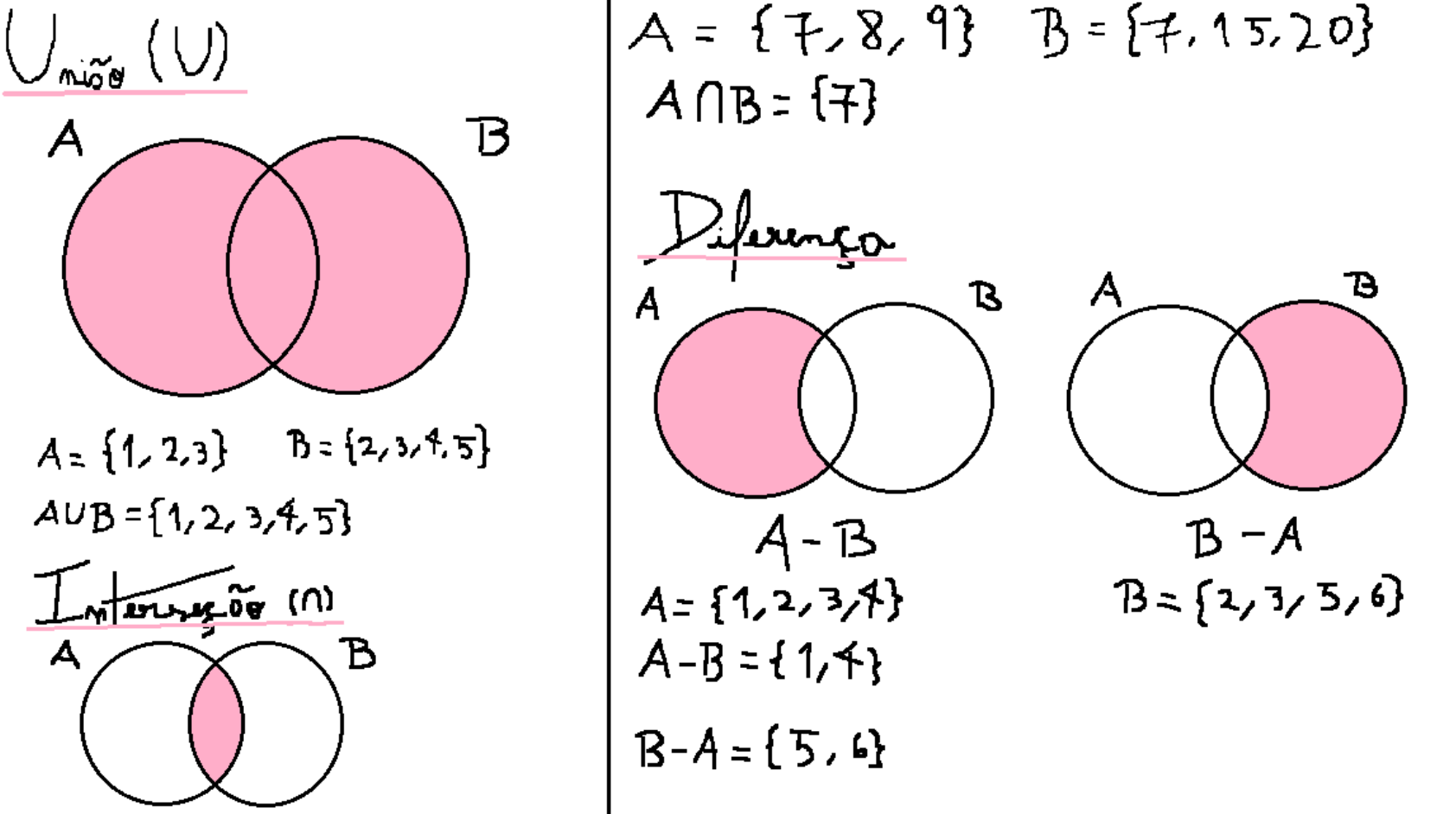 (U) = {7,8,9} = A = {7} A B Diferença A B A B A= A = {1,2,3} = AUB = {1,2,3,4,5} A-B B-A - (n) A= {1,2,3,4} B= {2, 5,6} A A-B B-A={5,6} "