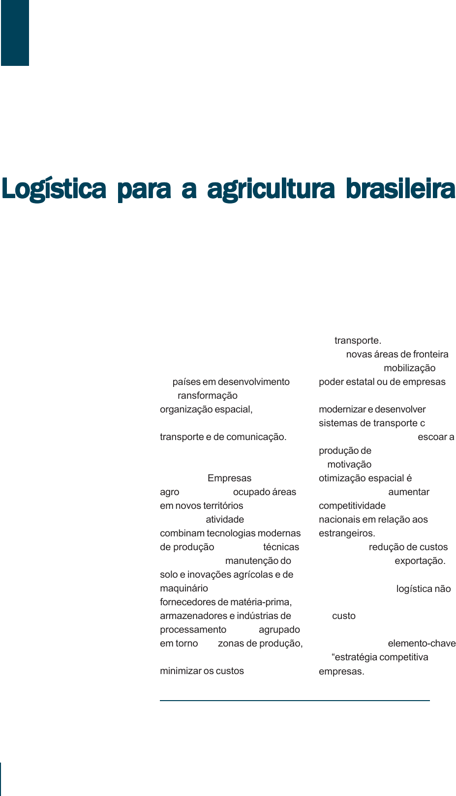 18 RBCE - 103 logística e comércio exterior Logística para a agricultura brasileiraLogística para a agricultura brasileiraLogística para a agricultura brasileiraLogística para a agricultura brasileiraLogística para a agricultura brasileira Nas décadas passadas, um dos fenômenos mais marcantes observados na economia agrícola de países em desenvolvimento é a transformação de sua organização espacial, especialmente em termos de transporte e de comunicação. Nos últimos anos, inclusive, isso vem ocorrendo de forma mais acelerada. Empresas do ramo do agronegócio têm ocupado áreas em novos territórios, geralmente através de atividades que combinam tecnologias modernas de produção, tais como técnicas apropriadas de manutenção do solo e inovações agrícolas e de maquinário. Do mesmo modo, fornecedores de matéria-prima, armazenadores e indústrias de processamento têm se agrupado em torno das zonas de produção, focando especialmente em minimizar os custos envolvidos em transporte. Nesse sentido, essas novas áreas de fronteira necessitam da mobilização do poder estatal ou de empresas do ramo do agronegócio para modernizar e desenvolver sistemas de transporte com o objetivo de, sobretudo, escoar a produção de maneira adequada. A motivação básica para tamanha otimização espacial é a necessidade de aumentar a competitividade dos produtos nacionais em relação aos estrangeiros. Isso já resultou numa clara redução de custos em operações de exportação. Dessa maneira, a logística não é mais vista como um elemento de custo ao qual as firmas estão sujeitas, mas sim, hoje em dia, é considerada um elemento-chave na “estratégia competitiva” das empresas. Assume-se, então, José Vicente Caixeta Filho José Vicente Caixeta Filho é professor de Logística Agroindustrial e de Pesquisa Operacional do Departamento de Economia, Administração e Sociologia da Escola Superior de Agricultura “Luiz de Queiroz” (ESALQ), Universidade de São Paulo (USP), Brasil. E-mail: jvcaixet@esalq.usp.br. User Realce User Realce User Realce User Realce User Realce User Realce User Realce User Realce User Realce User Realce User Realce User Realce User Realce User Realce User Realce User Realce User Realce User Realce User Realce User Realce User Realce User Realce User Realce User Realce User Realce User Realce User Realce User Realce User Realce User Realce User Realce User Realce User Realce User Realce User Realce User Realce User Realce User Realce User Realce User Realce User Realce 19RBCE - 103 que a chamada “logística mais eficiente” pode contribuir para o aumento da renda em países em desenvolvimento, promovendo também a inclusão, especialmente de pequenos agricultores ao longo das cadeias agroalimentares. Este artigo tem como principal objetivo apresentar um conjunto de boas experiências na logística da agroindústria no Brasil, focando principalmente nas melhorias observadas, normalmente relacionadas ao aumento da competitividade de produtos agroindustriais em mercados locais e globais. CONCEITOS BÁSICOS Nos últimos tempos, o termo “logística” tornou-se cada vez mais popular, trazendo conceitos gerenciais inovadores para as empresas que fazem bom uso do real significado da palavra. À primeira vista, “logística” era uma maneira mais sofisticada de se referir ao que originalmente era chamado de physical distribution management; mais recentemente, logística pode ser substituída pelo que chamam de supply chain management (SCM). O termo logística, no sentido em que é conhecido hoje, procura principalmente transmitir a ideia de otimização global do sistema como um todo, envolvendo a dinamização dos procedimentos e a redução dos custos ao longo da cadeia logística. O Council of Supply Chain Management Professionals, ou CSCMP (anteriormente, entre 1985 e 2004, conhecido como Council of Logistics Management, ou CLM; e, entre 1963 e 1984, como National Council of Physical Distribution Management, ou NCPDM), define o gerenciamento de cadeias logísticas como a “função integradora que tem como principal responsabilidade conectar as funções fundamentais do negócio aos processos dentro e através das empresas, de modo a obter um modelo de negócios coeso e de alta performance. Isso inclui todas as atividades de gerenciamento da logística, bem como as operações de produção, além de exigir a coordenação de processos e atividades que envolvem as áreas de marketing, vendas, design do produto, finanças e tecnologia da informação”. O mesmo CSCMP considera o gerenciamento logístico como “aquela parte de cadeia logística que planeja, implementa e controla o fluxo e o armazenamento de bens, serviços e informações relacionadas, desde o ponto de origem até o ponto de consumo, a fim de se adequar às exigências dos clientes.” A literatura acadêmica está repleta de definições para “logística”, sendo que a proposta por Daskin (1985) é uma das mais aceitas. Segundo o autor, logística pode ser definida como o “planejamento e operação de sistemas físicos, de gerenciamento e de informação necessários para permitir que insumos e produtos vençam condicionantes espaciais e temporais de forma econômica”. A CSCMP indica em seu website, numa descrição mais detalhada, que a logística geralmente inclui o gerenciamento do transporte de produtos (chegada e saída), gerenciamento de frotas, armazenamento, manuseio de materiais, acompanhamento de pedidos, desenvolvimento de redes de logística, gerenciamento de estoques, planejamento de oferta e demanda e gerenciamento de fornecedores de serviços de logística. Em diferentes graus, as funções da logística também incluem atividades de suprimento e de desenvolvimento de fornecedores, planejamento e agendamento da produção, embalagem e montagem e serviços de atendimento ao cliente. A logística está envolvida em todos os níveis de planejamento e de e