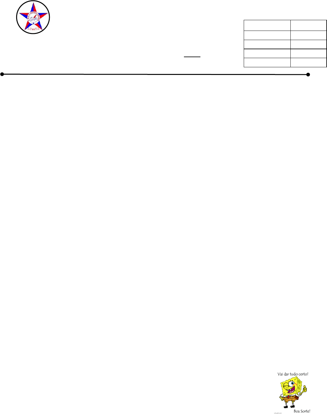 4ª AVALIAÇÃO DE EDUCAÇÃO FÍSICA Escola Municipal de Ensino Fundamental Raposo Tavares Diretor: Cíntia Luana Vasconcelos da Silva Professor(a): Bianca Soeiro Aluno (a):__________________________________ Turma:_____ Nº_____ 1. Marque somente uma alternativa correta. Agora, o esporte é executado em quadras fechadas de 40 por 20 metros. Além disso, no início o handebol era um jogo exclusivo para mulheres. Onde o handebol começou a ser jogado? a. Brasil b. Estados Unidos c. Alemanha d. França 2. Marque somente uma alternativa correta. Desde sua criação, o handebol tal qual o conhecemos hoje sofreu algumas modificações. O local de jogo, por exemplo, era ao ar livre (em gramados) e os espaços eram menores. Quem foi o professor de educação física criador do handebol? a. Karl Schelenz b. James Naismith c. Charles Miller d. William George Morgan 3. O Handebol é praticado entre duas equipes, o nome dessa modalidade esportiva é proveniente da língua inglesa. O que significa hand? 4. Marque somente uma alternativa correta. O basquetebol, ou simplesmente basquete, é um esporte coletivo praticado entre duas equipes. Qual o objetivo principal do jogo de basquetebol? a. Bater a bola no chão b. Jogar a bola no aro da cesta c. Inserir a bola no gol d. Inserir a bola na cesta 5. Marque somente uma alternativa correta. O esporte surgiu como uma alternativa ao inverno rigoroso da região, em detrimento dos outros praticados ao ar livre como o basebol e o futebol. Quem foi o professor de educação física criador do basquetebol? a. Karl Schelenz b. James Naismith c. Charles Miller d. William George Morgan 6. O basquetebol foi criado em 1891 pelo professor de Educação Física canadense. Na época, ele trabalhava na Associação Cristã de Moços de Springfield, Massachusetts, nos Estados Unidos. O termo “basquetebol” vem da língua inglesa. O que significa basket? PROVA:( ) TRAB. EM CLASSE.: TRAB. EX. CLASSE.: PATICIPAÇÃO.: Nota Geral: