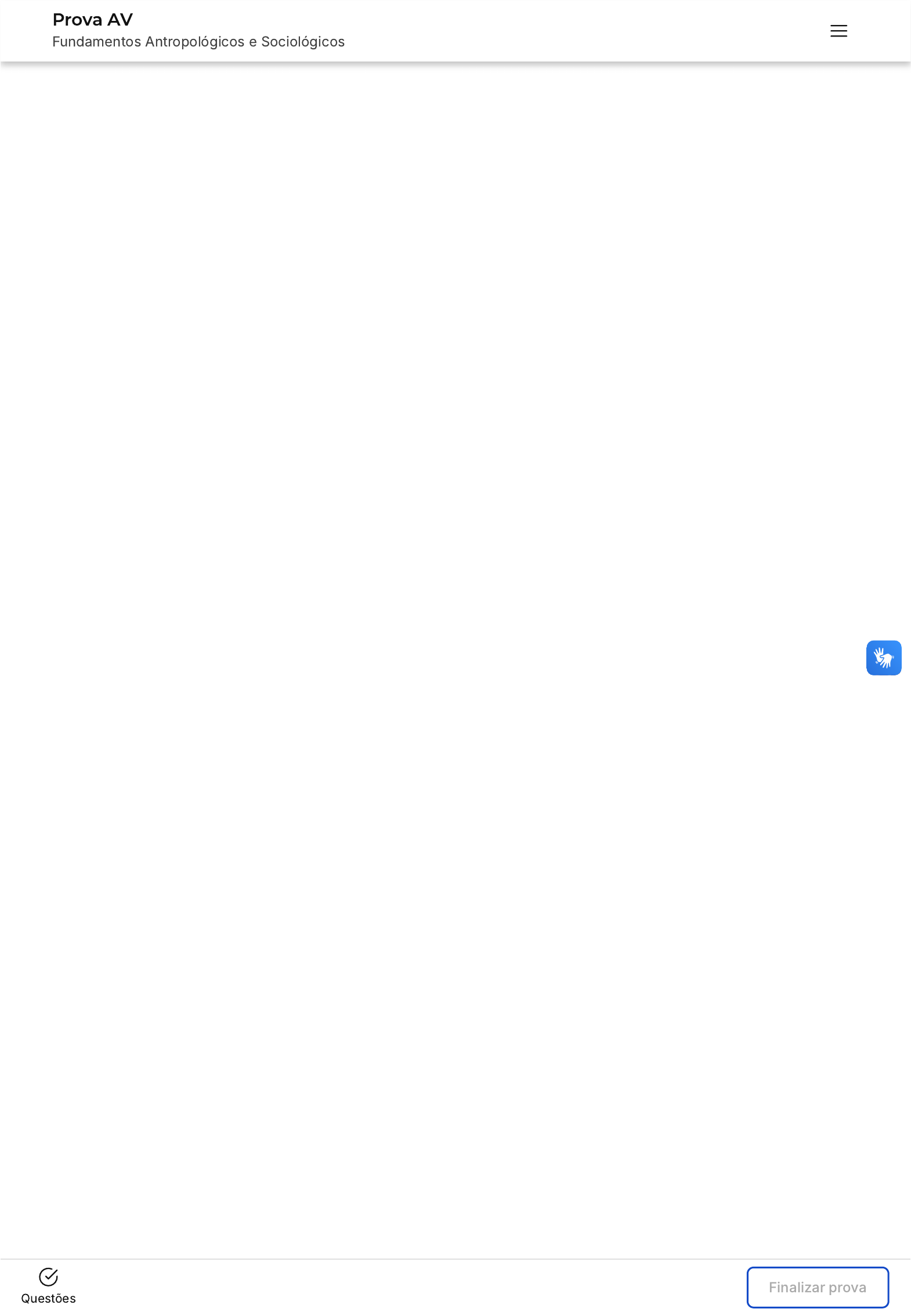 Questões Finalizar prova Prova AV Fundamentos Antropológicos e Sociológicos A B C D E A B C D E A B 1 Marcar para revisão O que é sociologia e qual seu objetivo? Ciência que estuda a relação do homem com a natureza e visa analisar como a sociedade se relaciona com a natureza. Ciência que estuda o meio ambiente e busca identificar as mudanças do meio ambiente. Ciência que estuda os grupos, sua organização e sua influência sobre a vida dos indivíduos para compreender a estrutura básica da sociedade humana. Ciência que estuda os homens para avaliar como estes evoluíram com o tempo. Ciência que estuda a mecânica das sociedades. 2 Marcar para revisão Qual é o melhor verbo para descrever o ofício antropológico? Provar Julgar Compreender Demonstrar Generalizar 3 Marcar para revisão Segundo Émile Durkheim, constitui uma lei da história que a solidariedade mecânica, a qual a princípio é quase único, perca terreno progressivamente e que a solidariedade orgânica, pouco a pouco, se torne preponderante. Por esta lei, segundo o autor, nas sociedades simples, prevalece a solidariedade por semelhança. Nas organizações sociais mais complexas, prevalece aquela que resulta do aprofundamento da especialização profissional. De acordo com a teoria de Durkheim, é correto afirmar que: As sociedades tendem a evoluir da solidariedade mecânica para a solidariedade orgânica, em função da intensificação da divisão do trabalho. Na situação em que prevalece a solidariedade mecânica, as sociedades não evoluem para a solidariedade orgânica. C D E A B C D E A B C D E Na situação em que prevalecem clãs e hordas, as sociedades não desenvolvem formas de solidariedade e, por isso, tendem a desaparecer progressivamente. Na situação em que prevalece a divisão social do trabalho, as sociedades não desenvolvem formas de solidariedade. A solidariedade mecânica representa o ponto máximo de evolução da sociedade. 4 Marcar para revisão Ao longo do tempo, o pensamento marxiano foi apropriado e reformulado por diferentes correntes, dando origem a distintas vertentes do marxismo. Entre os principais desafios enfrentados por esses teóricos estava a necessidade de adaptar a teoria marxista a contextos históricos específicos. Considerando esse processo, qual das afirmações a seguir está correta sobre a relação entre o pensamento marxiano e seus desdobramentos posteriores? O marxismo permaneceu homogêneo ao longo do tempo, sem variações ou interpretações divergentes entre os estudiosos e militantes. A Revolução Russa de 1917 seguiu fielmente todas as previsões de Marx, sem necessidade de ajustes na teoria para o contexto russo. O leninismo representou uma adaptação do marxismo às condições da Rússia czarista, enfatizando a necessidade de uma vanguarda revolucionária. O pensamento de Marx se limitou ao século XIX e não teve impacto nas discussões políticas e econômicas do século XX. A teoria marxista rejeita qualquer tipo de adaptação ao contexto histórico e considera que as revoluções devem ocorrer da mesma forma em todas as sociedades. 5 Marcar para revisão A antropologia cultural urbana é marcada por: Crescimento dos meios urbanos que multiplicam as formas culturais. Crescimento da sociedade industrial e marcação uma relação central entre luta de classes. Crescimento de sociedade patriarcal e ampliação do controle do corpo feminino. Estudo de indivíduos em todas as suas nuanças em sociedades com grande concentração de pessoas. Estudo de coletivos pobres segregados nos meios urbanos. A B C D E A B C D E 6 Marcar para revisão Émile Durkheim é considerado um dos fundadores das ciências sociais e, entre as suas diversas obras, destacam- se: As regras do método sociológico, O suicídio e Da divisão do trabalho social. Sobre este último estudo, é correto afirmar que: A divisão do trabalho possui um importante papel social. Muito além do aumento da produtividade econômica, a divisão garante a coesão social ao possibilitar o surgimento de um tipo específico de solidariedade. A solidariedade mecânica é o resultado do desenvolvimento da industrialização, que garantiu uma robotização dos comportamentos humanos. A solidariedade orgânica se refere às relações sociais estabelecidas nas sociedades mais tradicionais. O nome remete ao entendimento da harmonia existentes nas comunidades de menor taxa demográfica. Indiferentemente dos tipos de solidariedade predominantes, o crime necessita ser punido por representar uma ofensa às liberdades e à consciência individual existente em cada ser humano. Onde prevalece a solidariedade mecânica há uma intensa divisão social do trabalho. 7 Marcar para revisão Quanto aos pressupostos teóricos e metodológicos implicados na construção de tipos ideais, é correto afirmar que: Uma vez construído, o tipo ideal passa a servir como parâmetro de comparações gerais e de pesquisas posteriores sobre o mesmo tema O tipo ideal é uma construção mental, feita na mente do investigador, sem qualquer vínculo com a realidade concreta O tipo ideal é uma construção mental, subjetiva, feita pelo pesquisador, que não permite uma análise objetiva da realidade. Por isso, sua eficácia explicativa é pouco valorizada Como o próprio termo indica, um tipo ideal representa, de modo perfeito e acabado, um fenômeno social, encontrando correspondência plena com a realidade da vida social O tipo ideal é uma construção teórica abstrata que o cientista elabora por meio do estudo sistemático das diversas manifestações particulares de um fenômeno, no qual ele acentua aquilo que lhe pareça característico ou fundante 8 Marcar para revisão O art. 93 da Lei nº 8.213/91 determina que, a empresa com 100 (cem) ou mais empregados está obrigada a preencher de 2% (dois por cento) a 5% (cinco por cento) dos seus cargos com beneficiários reabilitados ou pessoas portadoras de deficiência, hab
