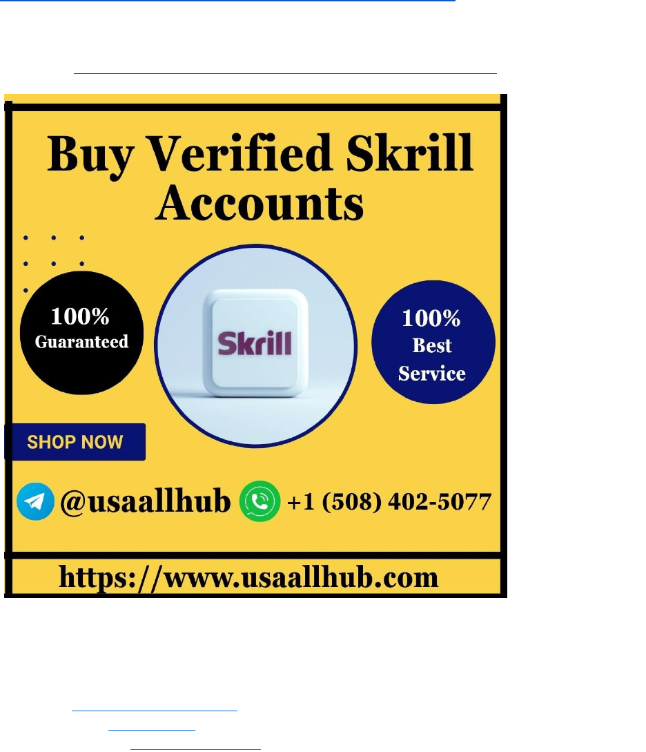 Best Ways to Buy Verified Skrill Account Looking for the best ways to buy a verified Skrill account? This comprehensive guide explores the risks and strategies to purchase a verified account safely while maintaining your financial security,,,,,https://www.usaallhub.com/product/buy-verified-skrill-accounts/ . If you are feeling any problems and know more about us then contact us via Email, WhatsApp, or Telegram. ⇔Contact For More Information ✓Email:usaallhub@gmail.com ✓Telegram:@usaallhub ✓WhatsApp:+1 (508) 402-5077 In today’s rapidly evolving digital world, online payment solutions have become crucial for individuals and businesses alike. One of the most popular and trusted payment platforms for online transactions is Skrill. Known for its convenience and security, Skrill allows users to make payments, transfers, and purchases globally. However, accessing certain features on Skrill—such as higher withdrawal limits, added security, and more—requires a verified account. For users looking to buy a verified Skrill account, the process can be intricate, especially considering the risks associated with fraudulent activities. This article will guide you through the best ways to buy a verified Skrill account, ensuring that you do so securely and legally while avoiding common pitfalls. What is a Verified Skrill Account? A verified Skrill account is one where the user's identity has been confirmed through the submission of official documentation. These documents usually include a government-issued ID, proof of address, and sometimes a payment method verification. Verification typically allows users to access higher limits for sending, receiving, and withdrawing money. Verified accounts also offer added security features, which help protect users against fraud and unauthorized access. Why Do You Need a Verified Skrill Account? There are several reasons why users prefer a verified Skrill account over a basic or unverified one: 1. Higher Transaction Limits: With a verified account, you can send and receive larger amounts of money compared to an unverified account. 2. Increased Security: Verification ensures that the account is linked to your identity, offering an added layer of protection against fraudulent activities. 3. Access to Global Services: Many online merchants and platforms require a verified Skrill account for international transactions, especially for businesses dealing with clients across different countries. 4. Faster Withdrawals: A verified Skrill account typically allows faster withdrawal options, as well as access to more withdrawal methods. Key Risks of Buying a Verified Skrill Account Before diving into the process of purchasing a verified Skrill account, it's important to understand the risks involved: · Fraudulent Sellers: Many online sellers offer verified Skrill accounts for a price, but not all of them are trustworthy. Some sellers may provide fake or compromised accounts, leading to loss of funds and potential legal issues. · Violation of Terms and Conditions: Buying an account violates Skrill’s terms of service. If Skrill detects that an account has been purchased, they may freeze or permanently suspend it. · Account Scams: Certain online platforms or individuals may try to scam you by taking your money without providing the account. Always be cautious of shady sellers. The Best Ways to Buy a Verified Skrill Account 1. Buy from a Reputable Vendor The first step in purchasing a verified Skrill account is to find a reputable vendor. This is where caution and research become essential. Reliable vendors often operate on established online platforms, like forums or trusted marketplaces that cater to financial services. Always check for: · Customer Reviews and Testimonials: Read reviews from other buyers to gauge the credibility of the vendor. · Official Website: Ensure that the vendor has an official website with contact details, terms of service, and customer support. · Refund Policy: A trustworthy vendor should offer some form of guarantee or refund policy in case of any issues with the account. 2. Check the Seller’s Reputation and Background While purchasing a verified Skrill account, verifying the seller's background is crucial. You can do this by researching their history in online payment services, reading user feedback, and checking if they are involved in any previous fraudulent activity. Look for: · Online Presence: A legitimate vendor will have an established online presence with a well-known reputation in forums or professional networks. · Communication: Ensure that the seller is responsive and transparent in their communication. A reliable seller will be open about their process and willing to answer all your questions. 3. Avoid Peer-to-Peer Marketplaces Peer-to-peer (P2P) platforms are often filled with unregulated transactions that are difficult to trace. Though they might offer lower prices, they come with an increased risk of scams and fraudulent activity. In addition, buying a verified Skrill account from such a marketplace can easily lead to account suspension, as Skrill’s monitoring systems detect unusual activities such as account transfers. 4. Secure Payment Methods When buying a verified Skrill account, always use secure payment methods. Avoid sending cash or using untraceable payment methods. Use services that offer buyer protection, such as: · Escrow Services: These third-party services hold the payment until the product (the verified Skrill account) is delivered. They act as intermediaries to ensure both the buyer and seller are protected. · PayPal: PayPal often provides buyer protection for digital goods, offering recourse if the transaction goes awry. 5. Ensure Account Documents Are Properly Verified For your peace of mind, verify that the account you are purchasing comes with the necessary documentation that proves it has been verified by Skrill. These documents should include: · Government-issued ID: A passport, national