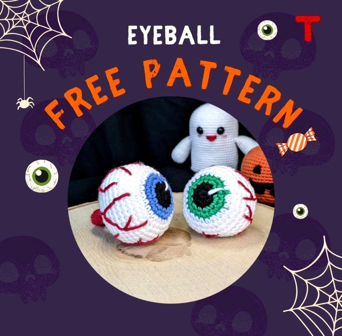 EYEBALL / REE PATTERNTools and materials Yarn size - 8/4 in the following colors: Black, red, white and green, blue or color of choice Stitch markers Scissors Fiber fill Hook number 2.5Abbreviations mr - magic ring slst - slip stitch ch - chain SC - single crochet in US (double crochet in UK) inc - increase (2 single crochet in one stitch in UK) dec - decreaseEyeball End every row with slst, ch1. Start with black color yarn. 1. 6sc in a mr (6) 2. inc X 6 (12) Change to green/ blue or color of choice yarn. 3. '1sc, inc' X 6 (18) 4. '2sc, inc' X 6 (24) Change to white color yarn. 5. '3sc, inc' X 6 (30) 6. '4sc, inc' X 6 (36) 7. '5sc, inc' X 6 (42) 8. - 13. SC around (42)14. '5sc, dec' X 6 (36) 15. '4sc, dec' X 6 (30) 16. '3sc, dec' X 6 (24) Fill the eyeball well. 17. '2sc, dec' X 6 (18) Change to red color yarn. 18. '1sc, dec' X 6 (12) 19. dec X 6 (6) Fasten off, weave in the ends.Optional: tail - continue after R19, do not fasten off! 20. - 28. SC around (6) Fasten off, weave in the ends. Using red color yarn embroider some blood vessels, weave in the yarn.bree pattern!