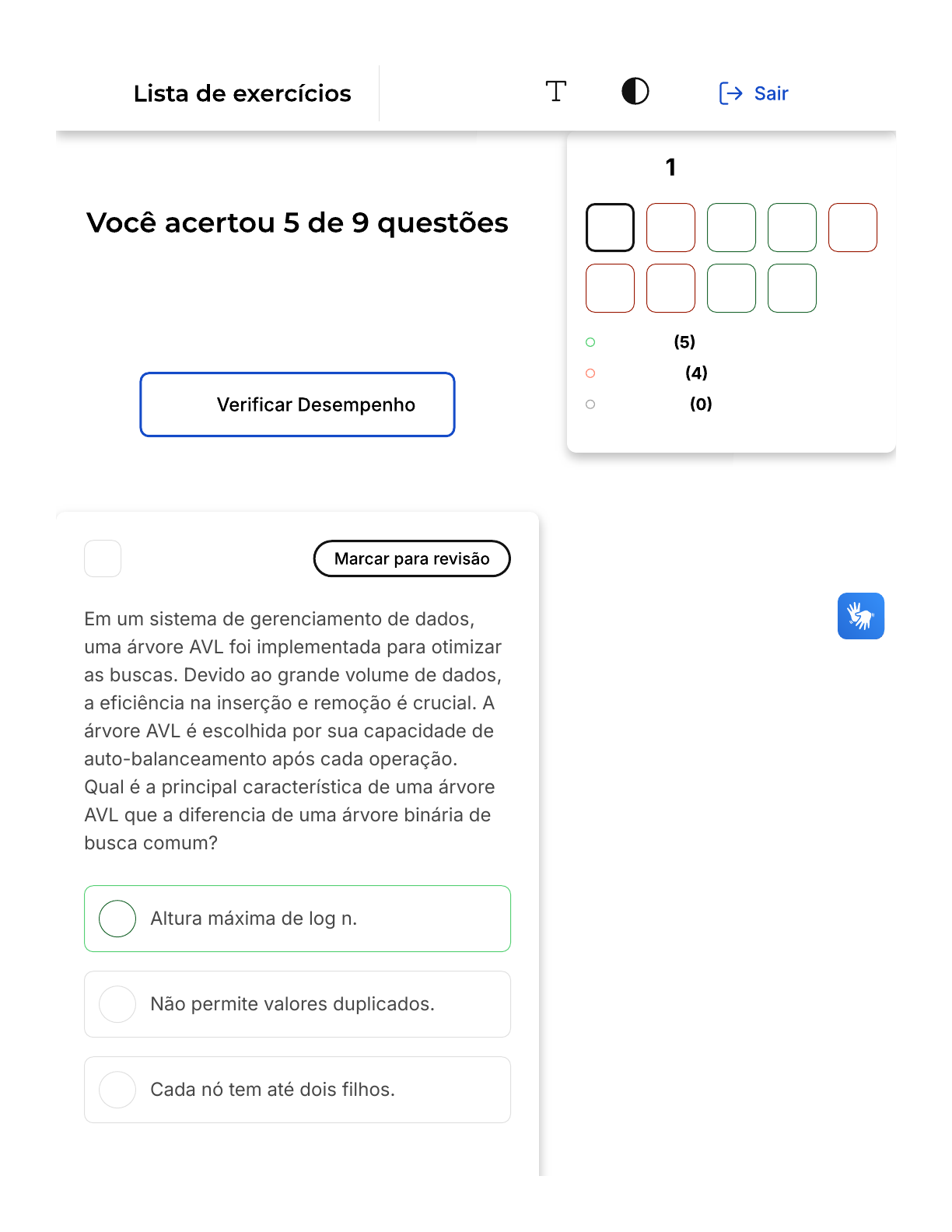 Verifique o seu desempenho e continue