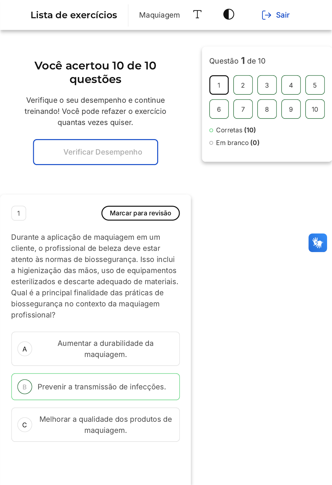 Você acertou 10 de 10 questões Verifique o seu desempenho e continue treinando! Você pode refazer o exercício quantas vezes quiser. Verificar Desempenho A B C 1 Marcar para revisão Durante a aplicação de maquiagem em um cliente, o profissional de beleza deve estar atento às normas de biossegurança. Isso inclui a higienização das mãos, uso de equipamentos esterilizados e descarte adequado de materiais. Qual é a principal finalidade das práticas de biossegurança no contexto da maquiagem profissional? Aumentar a durabilidade da maquiagem. Prevenir a transmissão de infecções. Melhorar a qualidade dos produtos de maquiagem. Questão 1 de 10 Corretas (10) Em branco (0) 1 2 3 4 5 6 7 8 9 10 Lista de exercícios Maquiagem Sair D E A B Facilitar a aplicação de maquiagem. Promover técnicas de maquiagem inovadoras. Resposta correta Parabéns, você selecionou a alternativa correta. Confira o gabarito comentado! Gabarito Comentado As práticas de biossegurança, como a higienização das mãos e o uso de equipamentos esterilizados, são essenciais no contexto da maquiagem profissional para prevenir a transmissão de infecções. Essas medidas garantem a segurança tanto do profissional quanto do cliente, evitando riscos à saúde. 2 Marcar para revisão Carlos é um especialista em biossegurança na maquiagem e está conduzindo uma auditoria em um salão de beleza para garantir que as práticas de higiene e segurança estejam sendo seguidas. Qual ação Carlos deve priorizar para assegurar a biossegurança no salão? Verificar a validade dos produtos. Ensinar técnicas de contorno facial. C D E A B C Avaliar a iluminação do salão. Selecionar uma paleta de cores adequada. Escolher fragrâncias hipoalergênicas. Resposta correta Parabéns, você selecionou a alternativa correta. Confira o gabarito comentado! Gabarito Comentado Para assegurar a biossegurança no salão de beleza, a prioridade de Carlos deve ser verificar a validade dos produtos de maquiagem. Produtos vencidos podem causar reações adversas na pele e comprometer a segurança dos clientes. 3 Marcar para revisão Quais são as três cores primárias? Vermelho, amarelo e cobre. Azul, vermelho e amarelo. Laranja, vermelho e amarelo. D E A B Amarelo, laranja e cobre. Cobre, vermelho e violeta. Resposta correta Parabéns, você selecionou a alternativa correta. Confira o gabarito comentado! Gabarito Comentado As três cores primárias são azul, vermelho e amarelo. Essas são as cores que não podem ser obtidas pela mistura de outras cores. Elas são a base para a criação de todas as outras cores. Portanto, a alternativa correta é a B: Azul, vermelho e amarelo. 4 Marcar para revisão Ao escolher as cores para uma maquiagem, um maquiador experiente leva em consideração a teoria das cores. Isso é crucial para realçar as características naturais e alcançar um resultado harmonioso. Qual aspecto é fundamental considerar ao aplicar a teoria das cores na maquiagem? A moda atual em maquiagem. O preço dos produtos de maquiagem. C D E O tom de pele do cliente. A rapidez na aplicação da maquiagem. A marca dos produtos de maquiagem. Resposta correta Parabéns, você selecionou a alternativa correta. Confira o gabarito comentado! Gabarito Comentado A aplicação efetiva da teoria das cores na maquiagem depende fundamentalmente do entendimento e da consideração do tom de pele do cliente. Essa abordagem assegura que as cores escolhidas complementem e realcem as características naturais do cliente, contribuindo para um resultado estético mais agradável e personalizado. 5 Marcar para revisão A regulamentação e as leis relacionadas à indústria de beleza e estética são essenciais para a qualidade dos serviços prestados. Por que é importante para um maquiador estar ciente das normas e leis do setor de beleza? A B C D E Para aumentar a variedade de serviços oferecidos. Para garantir a conformidade legal e segurança. Para focar exclusivamente em técnicas antigas. Para reduzir o tempo de aprendizado. Para usar somente produtos de uma marca específica. Resposta correta Parabéns, você selecionou a alternativa correta. Confira o gabarito comentado! Gabarito Comentado O conhecimento e a aderência às normas e leis do setor de beleza são cruciais para um maquiador profissional. Isso garante que suas práticas estejam em conformidade com os padrões legais e regulamentares, assegurando a segurança e a qualidade dos serviços prestados aos clientes. 6 Marcar para revisão Joana, uma maquiadora profissional, está preparando sua paleta de maquiagem para uma A B C D E cliente com tom de pele frio. Ela precisa escolher cores que realcem a beleza natural da cliente, levando em consideração a teoria das cores e a temperatura das cores na maquiagem. Considerando o texto, analise as afirmativas abaixo: I - Cores quentes devem ser prioritárias para clientes com tom de pele frio. II - Cores frias são mais adequadas para realçar a beleza de clientes com tom de pele frio. III - A escolha de cores para a maquiagem não depende da temperatura da pele do cliente. Marque a alternativa que apresenta a(s) afirmativa(s) correta(s). Apenas as afirmativas I e II estão corretas. Apenas a afirmativa II está correta. Apenas a afirmativa III está correta. Apenas as afirmativas I e III estão corretas. Apenas as afirmativas II e III estão corretas. Resposta correta Parabéns, você selecionou a alternativa correta. Confira o gabarito comentado! Gabarito Comentado A escolha das cores na maquiagem deve considerar a temperatura da pele do A B C D E cliente. Para clientes com tom de pele frio, cores frias são mais indicadas, pois realçam a beleza natural, mantendo a harmonia com a temperatura da pele. Portanto, a afirmativa II é a única correta, pois as cores quentes não são prioritárias para clientes com tom de pele frio, e a escolha de cores na maquiagem depende sim da temperatura da pele do cliente. 7 Marcar para revisão