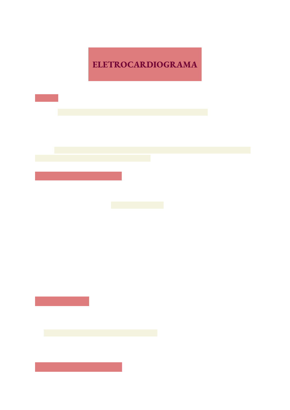 Definição - O eletrocardiograma (ECG) é o registro da atividade elétrica do coração . - O impulso elétrico estimula a contração das fibras musculares cardíacas , resultando na sístole (contração das câmaras cardíacas) . Ao final da sístole, o estímulo se extingue , permitindo a diástole (relaxamento). Primeiro ocorre a contração dos átrios , seguida pela contração dos ventrículos , que acontece do ápice em direção à base para permitir a ejeção eficiente do sangue. Sistema de Condução Cardíaca Responsável por conduzir o impulso elétrico de forma organizada. ● Nó sinusal (SA): localizado na base do átrio direito, é o marcapasso natural do coração . ○ Gera impulsos elétricos regulares e rítmicos, com frequência entre 50 a 100 bpm . ○ Estimula primeiro os átrios e depois o nó atrioventricular (AV) , onde ocorre um pequeno atraso fisiológico . ● Nó atrioventricular (AV): conduz o impulso para o feixe de His e, em seguida, para as fibras de Purkinje , que distribuem o estímulo pelos ventrículos. O ECG registra os impulsos que geram sístole e diástole . Cada onda representa um evento elétrico no coração. Fisiologia Elétrica ● A membrana das células cardíacas apresenta polaridade: externamente positiva e internamente negativa . ● A diferença de potencial gera o impulso elétrico . ● Quando ocorre despolarização , o impulso elétrico é produzido. ● O Sistema Nervoso Central regula o ritmo cardíaco. Ondas do Eletrocardiograma Cada onda representa a passagem do estímulo elétrico por uma região do coração: Onda Representa Características P Despolarização dos átrios Duração: 2–3 quadradinhos; amplitude ≤ 2,5 quadradinhos Q Início da despolarização ventricular (septo) Primeira onda negativa e de baixa amplitude R Despolarização do ápice ventricular Primeira onda positiva e de alta amplitude S Despolarização das paredes ventriculares Onda negativa após a positiva T Repolarização dos ventrículos Assimétrica, arredondada e na mesma direção do QRS predominante Maiúsculas ou minúsculas das letras dependem do tamanho da onda (amplitude). Vetores Elétricos ● Aproxima-se do eletrodo (Olhinhos): onda positiva ● Afasta-se do eletrodo (olhinhos): onda negativa ● Quanto maior o vetor, maior a onda. Em seguida, ocorre a despolarização ventricular no septo interventricular. O primeiro vetor aponta para direita (lembrando me refiro à direita no ponto de vista do paciente). Isso acontece porque a velocidade da despolarização do ramo esquerdo é mais rápido que a do direito. Esse vetor também aponta anteriormente (devido a posição anatômica do coração). Em seguida ocorre a despolarização das células de purkinje em ambos os ventrículos. Porém, como a despolarização do ventrículo esquerdo é muito mais forte que a do direito, o vetor resultante aponta para a direção do ventrículo esquerdo. Veja as imagens a seguir: Para saber se o complexo QRS está normal basta pensar: qual o vetor resultante de todo o complexo? Analisando somente o plano coronal (pois, assim foi definido) podemos dizer se o complexo é predominantemente positivo ou negativo. Se predominar positivo no DI, bifásico no aVF e negativo no aVR, sabemos que o vetor, no plano frontal, aponta aproximadamente para a esquerda (novamente, não se confunda; a esquerda para o ponto de vista do leitor é na verdade a direita). A abaixo irá ajudar a visualizar o processo: Quando o vetor resultante está entre 100° e -30°, está normal. Caso esteja fora disso, dizemos que está com desvio do complexo QRS para esquerda ou com desvio para direita. Quando o desvio é extremo denominamos desvio do complexo QRS extremo ou indeterminado, pois não dá para saber se está com um desvio para a esquerda muito extremo ou um desvio para a direita muito extremo. A definição dos ângulos (por exemplo, 0° em DI) é meramente convencional. Como Fazer um ECG: 1. Higienizar as mãos e explicar o procedimento. 2. Posicionar o paciente em decúbito dorsal (deitado de barriga para cima). 3. Retirar adornos metálicos. 4. Expor o tórax. 5. Colocar os eletrodos : ○ Cores claras em cima e escuras embaixo ○ MACETE: i. Direita: SP (São Paulo) ii. Esquerda: Brasil Derivações do ECG São os diferentes pontos de vista elétricos do coração. Derivações Bipolares (Triângulo de Einthoven) ● D1: negativo no braço direito, positivo no braço esquerdo ● D2: negativo no braço direito, positivo na perna esquerda → vista mais frontal do coração ● D3: negativo no braço esquerdo, positivo na perna esquerda Derivações Unipolares (Periféricas) ● aVR: do neutro para o braço direito ● aVL: do neutro para o braço esquerdo ● aVF: do neutro para o pé esquerdo As derivações permitem observar o coração em diferentes planos (vertical e horizontal). Coração no plano horizontal: Escala e Medidas do ECG ● Velocidade do papel: 25 mm/s ● 1 mm = 0,04 s ● 1 quadrado pequeno = 0,1 mV ● Eixo horizontal: tempo (duração da onda) ● Eixo vertical: amplitude (tensão da onda) Cálculo da Frequência Cardíaca (FC) ● 1 minuto = 1500 mm → FC = 1500 / distância entre dois R (RR) ○ Exemplo: RR = 18 quadradinhos → FC = 1500 / 18 = 83 bpm Para Ritmos Irregulares ● Usar D2 longo (10 segundos) ● Contar o número de complexos QRS e multiplicar por 6 . Ritmos Cardíacos ● Ritmo sinusal: ritmo cardíaco normal, regular. ● Ritmo arrítmico: irregularidade na frequência ou no intervalo entre batimentos. Alterações Importantes ● Supra de ST (segmento ST acima da linha base): indica sofrimento miocárdico agudo (ex.: infarto) → urgência cirúrgica. ● Infra de ST (segmento ST abaixo da linha base): indica sofrimento isquêmico (redução de oxigênio). VÍDEOS QUE AJUDAM A ENTENDER (realmente valem a pena, caso surjam dúvidas na leitura): https://youtu.be/3wYkAbV7sCw?si=_s31XIYrDqneGrYg https://youtu.be/wCZ_MtW79IE?si=