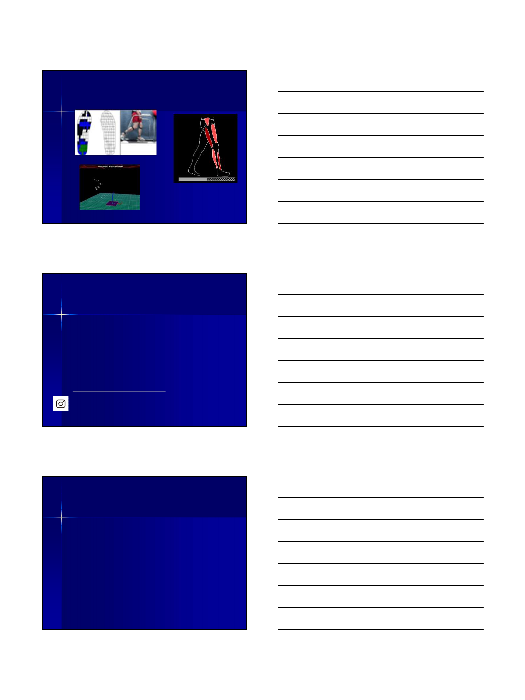 1 Profa: Sandra Aliberti BIOMECÂNICA Formação 1991 - Graduação em Educação Física EEFEUSP 1997 – Graduação em Fisioterapia UNICID 2004 – Especialização Aparelho Locomotor no Esporte UNIFESP 2009 – Mestrado em Ciências da Reabilitação FMUSP 2015 – Doutorado em Biodinâmica do Movimento EEFEUSP (Estágio de Doutoramento no Departamento de Cinesiologia da UMASS - USA) Email: sandra.aliberti@docente.unip.br @s.aliberti BIOMECÂNICA Disciplina que descreve, analisa e avalia o MOVIMENTO DOS SERES VIVOS do ponto de vista da física / mecânica associada com a anatomia e cinesiologia (AMADIO,1996) BIO-MECÂNICA 2 MECÂNICA CLÁSSICA • Cinemática: Descrição do movimento • Cinética : Estudo das forças que originam o movimento Estudo do movimento dos corpos CARACTERÍSTICAS DA BIOMECÂNICA • Interdisciplinar (Fisiologia, Anatomia , Física, Matemática) • Possui métodos de investigação específicos e próprios BIOMECÂNICA INTERNA X BIOMECÂNICA EXTERNA Biomecânica Interna Estuda as forças internas (forças articulares e musculares) que tem origem dentro do corpo humano Ex: forças musculares e de contato (articulares) Biomecânica Externa Estuda as forças que ocorrem externamente ao corpo humano Ex: força gravitacional e cargas aplicadas 3 OBJETIVOS DA BIOMECÂNICA • Melhora do rendimento (Biomecânica do rendimento) Eficácia do gesto / economia de energia • Diminuir incidência de lesões (Biomecânica da sobrecarga) Controle da sobrecarga Aplicação Multidisciplinar da Biomecânica esporte & educação física medicina controle motor reabilitação indústria anatomia funcional engenharia biomédica animação biomecânica Breve histórico da Biomecânica A preocupação com a análise física (mecânica) do movimento humano é bastante antiga. Leonardo da Vinci (1452-1519) 4 Breve histórico da Biomecânica • Galileu Galilei (1564-1642) A observação torna-se quantitativa e experimental Breve histórico da Biomecânica • Isaac Newton (1642- 1727) Descobriu muitas das relações que fundamentam o campo da mecânica moderna Breve histórico da Biomecânica • Giovani Afonso Borelli O primeiro investigar o movimento dos seres vivos por meio das leis da física 5 Breve histórico da Biomecânica • Marey e Muybridge (1830-1904) Desenvolvimento de instrumentos de medição Áreas da Biomecânica Antropometria Cinemática Cinética/Dinamometria Eletromiografia ANTROPOMETRIA Mensura as características de forma, constituição e distribuição de massa do corpo humano • Massa, estatura, IMC • Modelos antropométricos 6 CINEMÁTICA • Com que rapidez um corpo está se movendo? • Qual altura atinge? • A que distância se desloca? • Qual a variação angular? Descreve o movimento • posição • deslocamento • velocidade • amplitude angular / movimentos • planos CINEMÁTICA Instrumentos •Câmeras de vídeo •Sistemas óptico-eletrônicos •Eletrogoniômetros Acessível X precisão Digitalização CINEMÁTICA / Instrumentos •Câmeras de vídeo •Sistemas óptico-eletrônicos •Eletrogoniômetros 7 CINEMÁTICA / Instrumentos •Câmeras de vídeo •Sistemas óptico-eletrônicos •Eletrogoniômetros (Aliberti, 2015) CINEMÁTICA / Instrumentos •Câmeras de vídeo •Sistemas óptico-eletrônicos •Eletrogoniômetros Medida direta da variação angular Precisão depende da articulação / plano mensurados CINÉTICA Examina as forças que originam o movimento 8 Força (F) “Ação de puxar ou empurrar aplicada sobre um corpo” Depende da: Magnitude , direção e ponto de aplicação Ex: Peso corporal, atrito, resistência do ar Força = massa x aceleração FORÇA DE REAÇÃO DO SOLO (FRS) “Força de reação proporcionada pela superfície em que o indivíduo está se movimentando” Terceira lei de Newton Lei da ação-reação Para cada força/ação existe uma força/reação de magnitude igual e sentido oposto Instrumento Plataforma de força FORÇA DE REAÇÃO DO SOLO (FRS) Fase de apoio marcha Sobrecarga x Peso corporal Calçados 9 Distribuição da Pressão Plantar - DPP • Plataforma de pressão (descalços) • Palmilhas (dentro dos calçados) Pressão = Força / Area Aplicações Eletromiografia Mensuração da atividade elétrica do músculo ou ativação muscular (indica como a ativação muscular é coordenada) Eletromiografia Mensuração da atividade elétrica do músculo ou ativação muscular (indica como a ativação muscular é coordenada) Início / fim ativação muscular Quanto o músculo foi ativado 10 Eletromiografia Mensuração da atividade elétrica do músculo ou ativação muscular (indica como a ativação muscular é coordenada) Eletromiografia Ativação muscular X Força Eletromiografia A eletromiografia é fácil de se usar e, consequentemente, fácil de se abusar. ( De Luca,1997) São muitos os parâmetros metodológicos Difícil a comparação entre estudos 11 Grata pela atenção! @s.aliberti
