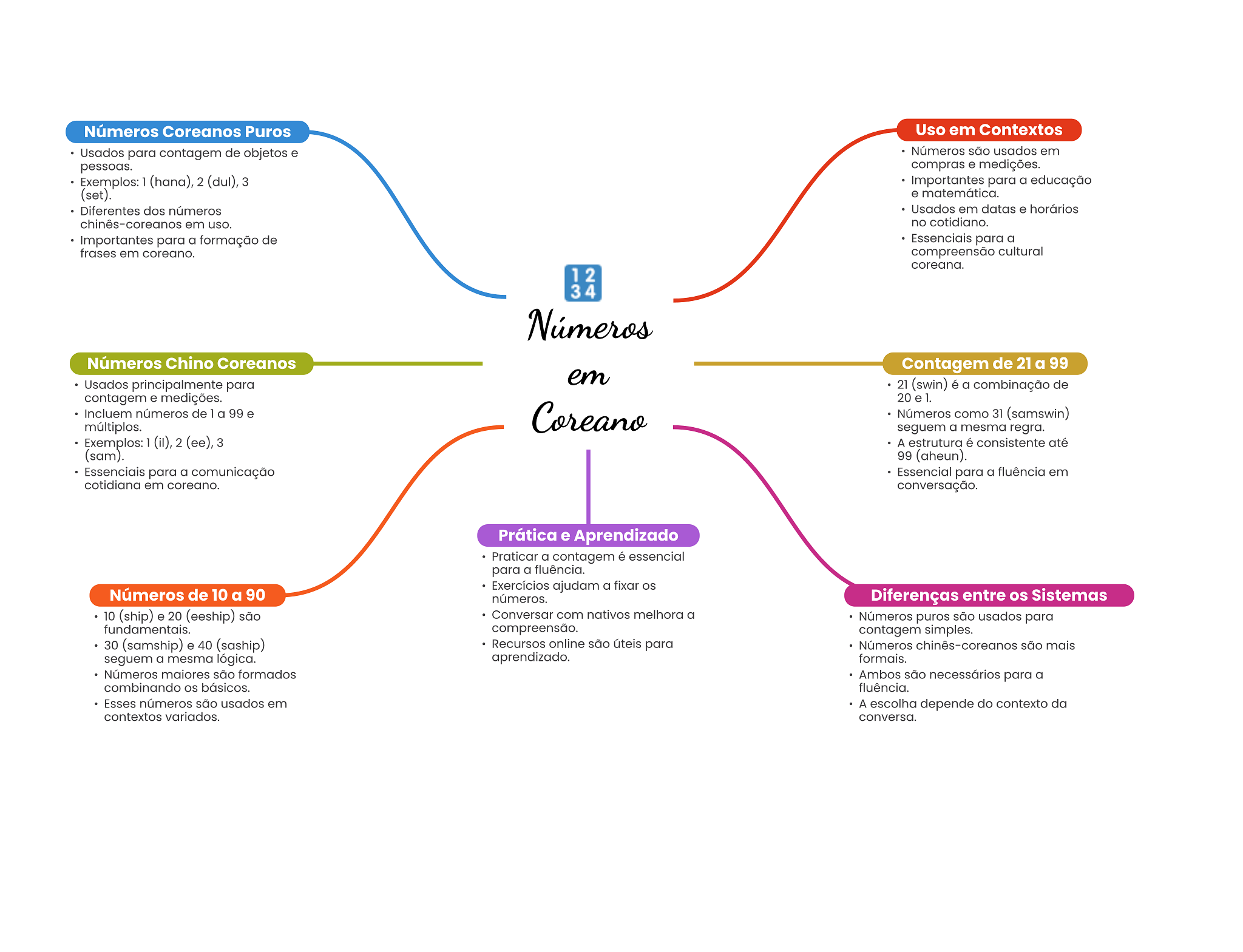 Números Coreanos Puros Uso em Contextos Usados para contagem de objetos e Números são usados em pessoas. compras e medições. Exemplos: 1 (hana), 2 (dul), 3 Importantes para a educação (set). e matemática. Diferentes dos números Usados em datas e horários chinês-coreanos em uso. no cotidiano. Importantes para a formação de Essenciais para a frases em coreano. compreensão cultural coreana. Números Números Chino Coreanos Contagem de 21 a 99 em Usados principalmente para 21 (swin) é a combinação de contagem e medições. 20 e 1. Incluem números de 1 a 99 e múltiplos. Coreano Números como 31 (samswin) seguem a mesma regra. Exemplos: 1 2 (ee), 3 A estrutura é consistente até (sam). 99 (aheun). Essenciais para a comunicação Essencial para a fluência em cotidiana em coreano. conversação. Prática e Aprendizado Praticar a contagem é essencial para a fluência. Exercícios ajudam a fixar Números de 10 a 90 números. Diferenças entre os Sistemas 10 (ship) e 20 (eeship) são Conversar com nativos melhora a Números puros são usados para fundamentais. compreensão. contagem simples. 30 (samship) e 40 (saship) Recursos online são úteis para Números chinês-coreanos são mais seguem a mesma lógica. aprendizado. formais. Números maiores são formados Ambos são necessários para a combinando básicos. fluência. Esses números são usados em A escolha depende do contexto da contextos variados. conversa.