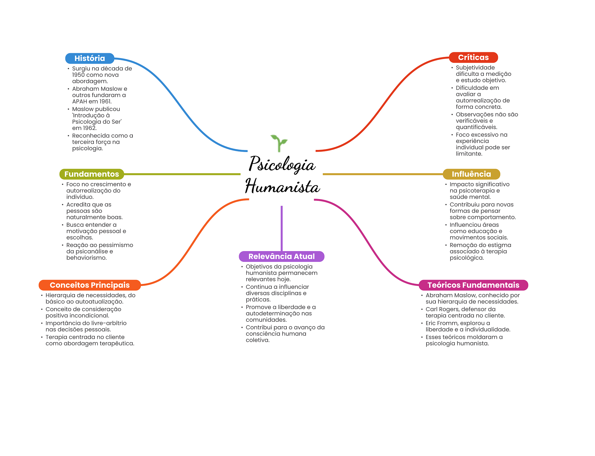 História Críticas Surgiu na década de Subjetividade 1950 como nova dificulta a medição abordagem. e estudo objetivo. Abraham Maslow e Dificuldade em outros fundaram a avaliar a APAH em 1961. autorrealização de Maslow publicou forma concreta. Introdução à Observações não são Psicologia do Ser' verificáveis e em 1962. quantificáveis. Reconhecida como a Foco excessivo na terceira força na experiência psicologia. individual pode ser limitante. Psicologia Fundamentos Influência Foco no crescimento e autorrealização do Humanista Impacto significativo na psicoterapia e indivíduo. saúde mental. Acredita que as Contribuiu para novas pessoas são formas de pensar naturalmente boas. sobre comportamento. Busca entender a Influenciou áreas motivação pessoal e como educação e escolhas. movimentos sociais. Reação ao pessimismo Remoção do estigma da psicanálise e associado à terapia behaviorismo. Relevância Atual psicológica. Objetivos da psicologia humanista permanecem relevantes hoje. Conceitos Principais Continua a influenciar Teóricos Fundamentais Hierarquia de necessidades, do diversas disciplinas e Abraham Maslow, conhecido por básico ao autoatualização. práticas. sua hierarquia de necessidades. Conceito de consideração Promove a liberdade e a Carl Rogers, defensor da positiva incondicional. autodeterminação nas terapia centrada no cliente. comunidades. Importância do livre-arbítrio Eric Fromm, explorou a nas decisões pessoais. Contribui para avanço da liberdade e a individualidade. consciência humana Terapia centrada no cliente Esses teóricos moldaram a coletiva. como abordagem terapêutica. psicologia humanista.