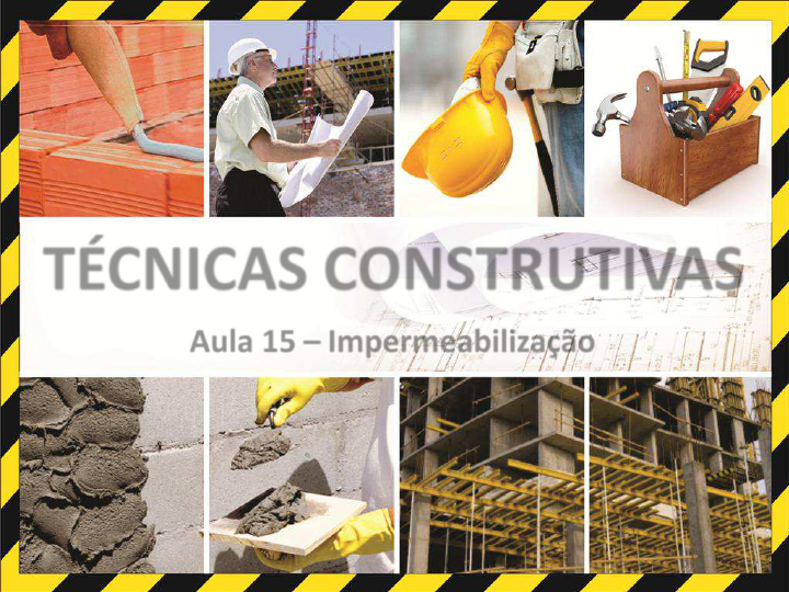 TÉCNICAS CONSTRUTIVAS Aula 15 – Impermeabilização Introdução A vida útil de uma construção é diretamente influenciada pela presença dos sistemas de impermeabilização, que protegem as estruturas contra a ação nociva da água. Eles cumprem a função de formar uma barreira física que contém a propagação da umidade e evitam infiltrações. Os impermeabilizantes são usados em praticamente todas as partes da construção, como fundações, subsolos, áreas molháveis, lajes, piscinas, reservatórios, paredes de contenção. Impermeabilização Introdução De maneira geral os impermeabilizantes são divididos em dois grupos: Rígidos; Flexíveis. Impermeabilização Introdução A especificação do impermeabilizante correto, depende de vários fatores, dentre eles: Movimentação estrutural; Exposição aos fenômenos climáticos; Existência ou não de transito de veículos e pessoas; Exposição a agentes químicos. Impermeabilização Características Impermeabilização Rígidos Flexíveis Aplicações indicadas Sua aplicação e recomendada para as partes mais estáveis da edificação, menos sujeitos ao aparecimento de trincas e fissuras. Sua principal utilização ocorre em fundações, pisos internos em contato com o solo, contenções e piscinas enterradas. Indicados para estruturas sujeitas a movimentações, vibrações, insolação e variações térmicas dilatações e contrações. São mais usados em lajes (térreo e cobertura), banheiros, cozinhas, terraços e reservatórios elevados. Exemplos • Argamassas impermeabilizantes; • Cimentos poliméricos; • Cristalizantes; • Resinas epóxi. • Mantas asfálticas; • Membranas asfálticas moldadas no local (a quente ou a frio); • Mantas de PEAD, PVC; • Membranas de poliuretano, de poliureia, resinas acrílicas, etc. Tipos de impermeabilizantes Rígidos Cristalizantes São compostos químicos de cimento aditivados, resinas e água. O produto é aplicado diretamente sobre a estrutura a ser impermeabilizada. Ao entrar em contato com a água de infiltração cristaliza-se e preenche os poros do concreto, constituindo uma barreira impermeável. Impermeabilização Tipos de impermeabilizantes Rígidos Argamassa impermeável São argamassas de cimento e areia que adquirem propriedades impermeáveis com a mistura de aditivos que repelem a água (hidrofugantes), líquidos ou em pó. Devem ser aplicadas em locais não sujeitos a trincas e a fissuração, no emboço de revestimento de baldrames e paredes no assentamento de alvenarias em contato com o solo. Impermeabilização Tipos de impermeabilizantes Rígidos Argamassa polimérica Argamassas industrializadas bicom- ponentes (cimento aditivado e resinas líquidas). Devem ser misturadas e homogeneizadas antes da aplicação Impermeabilização Tipos de impermeabilizantes Rígidos Epóxi A base de resinas epóxi, bicomponente, com ou sem adições e indicado para a impermeabilização e proteção anticorrosiva de estruturas de concreto, metálicas e argamassas. Impermeabilização Tipos de impermeabilizantes - Mantas asfálticas Um dos materiais mais usados em impermeabilização. Trata-se de um sistema flexível pré-fabricado, formado por um elemento estruturante central - filamentos de poliéster ou véu de libra de vidro, que conferem ao produto grande resistência mecânica - recoberto em ambas as faces por um composto asfáltico. A manta e indicada para estruturas sujeitas a movimentação e fissuras, e com dimensões superiores a 50m2. Impermeabilização Tipos de impermeabilizantes – Membranas moldadas in loco A impermeabilização moldada in loco e obtida pela aplicação a frio ou a quente, de sucessivas demãos de um impermeabilizante liquido na superfície a ser tratada, que forma, depois de seco, uma membrana flexível e sem emendas. Impermeabilização Os sistemas moldados in loco são indicados para espaços menores ou de acesso mais difícil, como áreas molháveis e pequenas lajes, onde o uso de mantas asfálticas e contraindicado. Tipos de impermeabilizantes – Mantas sintéticas As mantas pré-fabricadas a base de diferentes tipos de materiais sintéticos (PEAD, PVC, EPDM, etc.) também podem ser utilizados nos sistemas impermeabilizantes. Feitas de ligas elásticas e flexíveis, adaptam-se com facilidade a locais sujeitos a movimentações e vibrações. Também são resistentes aos raios ultravioleta e a ataques químicos, dependendo de sua formulação. No caso de obras como lagos artificiais, aterros sanitários e tanques, a impermeabilização pode também ter a função de proteção ao meio ambiente. Impermeabilização Tipos de impermeabilizantes – Mantas sintéticas - PEAD Impermeabilização Geomembranas de polietileno de alta densidade ( PEAD) Execução de impermeabilização – Manta asfáltica Impermeabilização Execução de impermeabilização – Manta asfáltica Impermeabilização Execução de impermeabilização – Manta asfáltica Impermeabilização Execução de impermeabilização – Manta asfáltica Impermeabilização Execução de impermeabilização – Manta asfáltica Impermeabilização A NBR 9574 – Execução de Impermeabilização estabelece que: Após a execução da impermeabilização, recomenda-se ser efetuado ensaio de estanqueidade com água limpa, com duração mínima de 72 h para verificação de falhas na execução do tipo de impermeabilização utilizado. Impermeabilização Execução de impermeabilização – Viga baldrame Impermeabilização Chapisco Execução de impermeabilização – Viga baldrame Impermeabilização Aplicação de argamassa com impermeabilizante Execução de impermeabilização – Viga baldrame Impermeabilização Regularização da superfície Execução de impermeabilização – Viga baldrame Impermeabilização Aplicação de impermeabilizante betuminoso Execução de impermeabilização – Viga baldrame Impermeabilização Aplicação de impermeabil