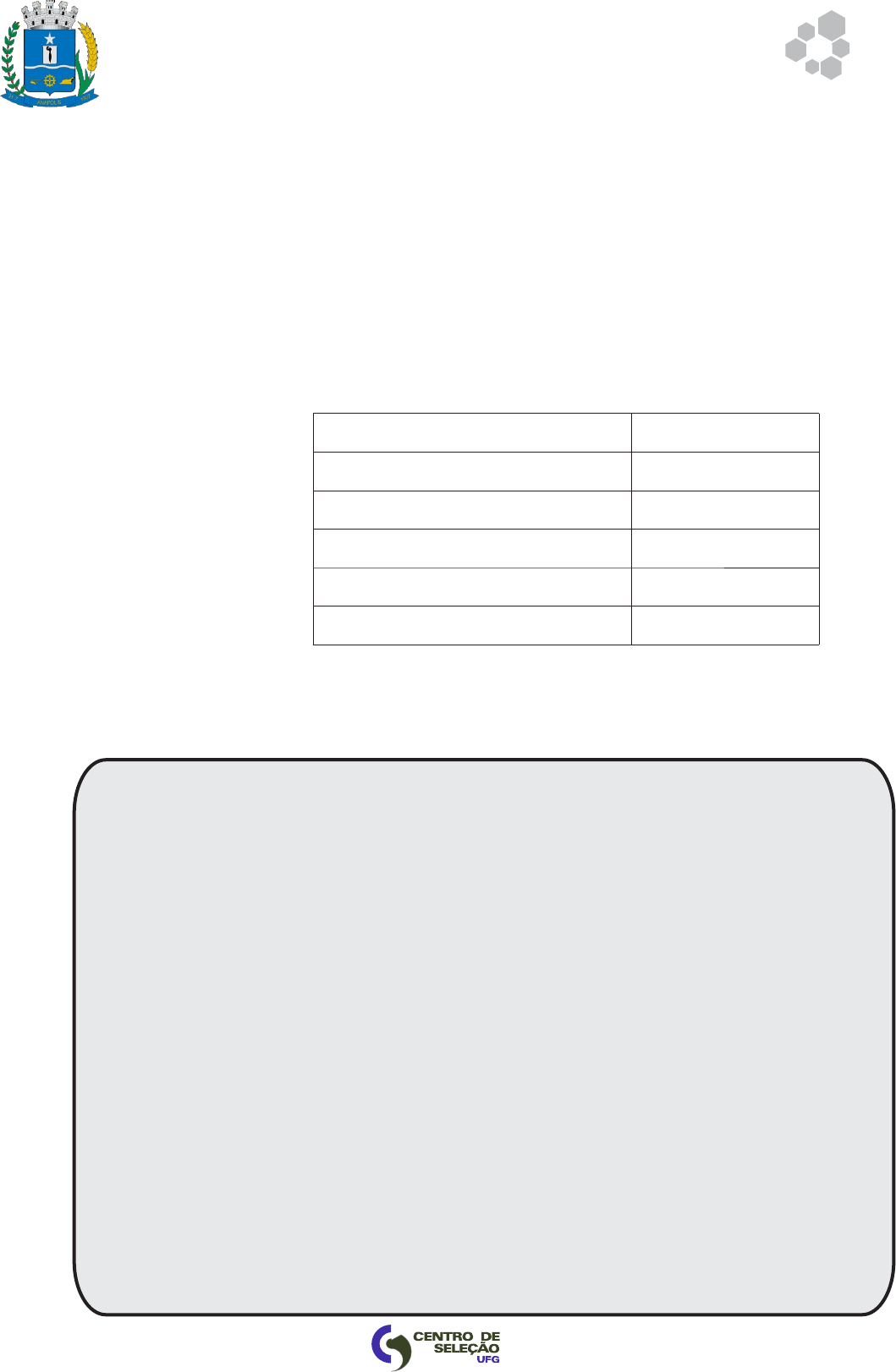 C O N C U R S O P Ú B L IC O SÓ ABRA ESTE CADERNO QUANDO AUTORIZADO UFG LEIA ATENTAMENTE AS INSTRUÇÕES . 1 Quando for permitido abrir o caderno, verifique se ele está completo ou se apresenta imperfeições gráficas que possam gerar dúvidas. Se houver algum defeito dessa natureza, peça ao aplicador de prova para entregar-lhe outro exemplar. 2 Este caderno contém 40 questões objetivas. Cada questão apresenta quatro alternativas de resposta, das quais apenas uma é correta. Preencha no cartão-resposta a letra correspondente à resposta que julgar correta. 3 O cartão-resposta é personalizado e não será substituído em caso de erro durante o seu preenchimento. Ao recebê-lo, verifique se seus dados estão impressos corretamente; se for constatado algum erro, notifique-o ao aplicador de prova. 4 Preencha integralmente um alvéolo por questão, rigorosamente dentro de seus limites e sem rasuras, utilizando caneta esferográfica de tinta AZUL ou PRETA fabricada em material transparente. Dupla marcação implica anular a questão. 5 Esta prova terá a duração de quatro horas, incluídos nesse tempo os avisos, a coleta de impressão digital e a transcrição para o cartão-resposta. 6 Iniciada a prova, você somente poderá retirar-se do ambiente de realização da prova após decorridas duas horas de seu início e mediante autorização do aplicador de prova. Somente será permitido levar o caderno de questões após três horas do início das provas, desde que permaneça em sala até esse momento. É vedado sair da sala com quaisquer anotações antes deste horário. 7 Os três últimos candidatos, ao terminarem a prova, deverão permanecer no recinto, sendo liberados após a entrega do material utilizado por eles e terão seus nomes registrados em Relatório de Sala, no qual irão apor suas respectivas assinaturas. 8 Ao terminar sua prova entregue, obrigatoriamente, o cartão-resposta ao aplicador de prova. UNIVERSIDADE FEDERAL DE GOIÁS PRÓ-REITORIA DE GRADUAÇÃO CENTRO DE SELEÇÃO CÂMARA MUNICIPAL DE ANÁPOLIS ASSISTENTE DE CONTROLE INTERNO PROVAS QUESTÕES LINGUA PORTUGUESA MATEMÁTICA INFORMÁTICA HISTÓRIA DE ANÁPOLIS CONHECIMENTOS ESPECÍFICOS 01 a 10 11 a 17 18 a 25 26 a 30 31 a 40 UFG/CS – CONCURSO PÚBLICO PARA INGRESSO NOS CARGOS DO QUADRO PERMANENTE DO PESSOAL DA CÂMARA MUNICIPAL DE ANÁPOLIS/GO. - 2017 LÍNGUA PORTUGUESA Leia o Texto 1 para responder às questões de 01 a 05. Texto 1 Disponível em: <http://notaterapia.com.br/2015/11/18/30-anos-de-calvin-e-haroldo-a-tirinha-mais- incrivel-de-bill-watterson/>. Acesso em: 08 set. 2017. ▬ QUESTÃO 01 ▬▬▬▬▬▬▬▬▬▬▬▬▬▬▬▬ O diminutivo presente no primeiro quadrinho da tirinha apresenta o seguinte valor: (A) gradativo, sintetizando o cenário. (B) irônico, debochando do pouco valor dos objetos. (C) afetivo, recriando o universo infantil. (D) pejorativo, depreciando o animal observado. ▬ QUESTÃO 02 ▬▬▬▬▬▬▬▬▬▬▬▬▬▬▬▬ Considerando a leitura do Texto 1, a tira em análise (A) insinua a ineficácia do trabalho em equipe nas situações difíceis. (B) demonstra a crença relacionada aos superpoderes maternos. (C) sugere a morte de um dos personagens por falta de socorro. (D) ironiza as práticas medicinais desenvolvidas por neófitos. ▬ QUESTÃO 03 ▬▬▬▬▬▬▬▬▬▬▬▬▬▬▬▬ O uso do conectivo mas, no segundo quadrinho, introduz um (A) efeito de finalidade. (B) sentido explicativo. (C) efeito de temporalidade. (D) sentido adversativo. ▬ QUESTÃO 04 ▬▬▬▬▬▬▬▬▬▬▬▬▬▬▬▬ No terceiro quadrinho, em Melhor não tocar nele se está machucado, verifica-se no enunciado uma relação semântica de (A) intensificação. (B) adversidade. (C) condição. (D) casualidade. ▬ QUESTÃO 05 ▬▬▬▬▬▬▬▬▬▬▬▬▬▬▬▬ No quarto quadrinho, o enunciado Espero que ela possa ajudar expressa uma (A) ação futura duvidosa. (B) atividade presente essencial. (C) evento habitual contingente. (D) condição progressiva permissiva. ▬ RASCUNHO ▬▬▬▬▬▬▬▬▬▬▬▬▬▬▬▬ Língua_Portuguesa_Médio UFG/CS – CONCURSO PÚBLICO PARA INGRESSO NOS CARGOS DO QUADRO PERMANENTE DO PESSOAL DA CÂMARA MUNICIPAL DE ANÁPOLIS/GO. - 2017 Leia o Texto 2 para responder às questões de 06 a 10. Texto 2 1 2 3 4 5 6 7 8 9 10 Feliz por nada (Martha Medeiros) Geralmente, quando uma pessoa exclama Estou tão feliz!, é porque engatou um novo amor, conseguiu uma promoção, ganhou uma bolsa de estudos, perdeu os quilos que precisava ou algo do tipo. Há sempre um porquê. Eu costumo torcer para que essa felicidade dure um bom tempo, mas sei que as novidades envelhecem e que não é seguro se sentir feliz apenas por atingimento de metas. Muito melhor é ser feliz por nada. Digamos: feliz porque maio recém começou e temos longos oito meses para fazer de 2010 um ano memorável. Feliz por estar com as dívidas pagas. Feliz porque alguém o elogiou. Feliz porque existe uma perspectiva de viagem daqui a alguns meses. Feliz porque você não magoou ninguém hoje. Feliz porque daqui a pouco será hora de dormir e não há lugar no mundo mais acolhedor do que sua cama. Esquece. Mesmo sendo motivos prosaicos, isso ainda é ser feliz por muito. Feliz por nada, nada mesmo? Talvez passe pela total despreocupação com essa busca. Essa tal de felicidade inferniza. “Faça isso, faça aquilo”. A troco? Quem garante que todos chegam lá pelo mesmo caminho? Particularmente, gosto de quem tem compromisso com a alegria, que procura relativizar as chatices diárias e se concentrar no que importa pra valer, e assim alivia o seu cotidiano e não atormenta o dos outros. Mas não estando alegre, é possível ser feliz também. Não estando “realizado”, também. Estando triste, felicíssimo igual. Porque felicidade é calma. Consciência. É ter talento para aturar o inevitável, é tirar algum proveito do imprevisto, 