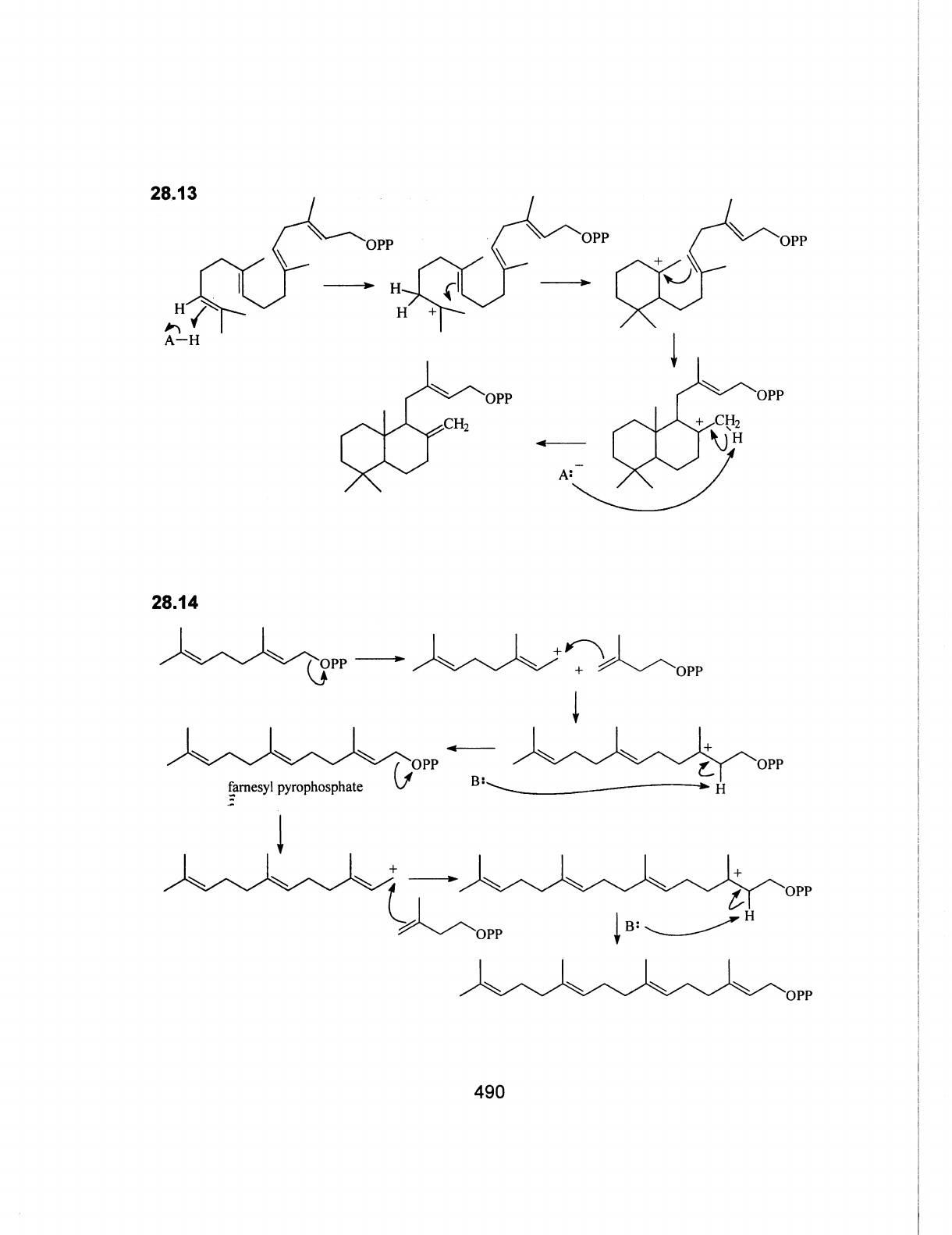 28.13 OPP OPP OPP + H H + A-H OPP OPP CH₂ + CH₂ H A: 28.14 + OPP + OPP + OPP OPP farnesyl pyrophosphate B: H + + OPP H B: OPP OPP 490