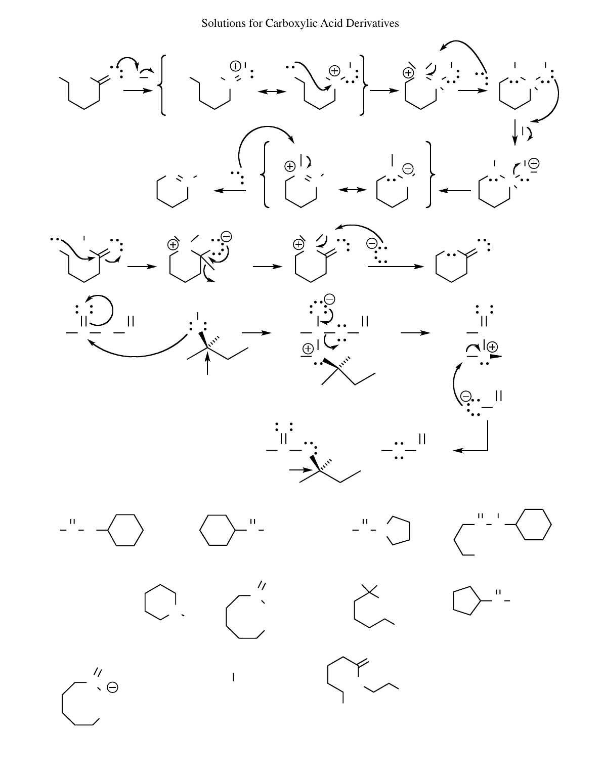 Solutions for Carboxylic Acid Derivatives 49 continued HH2N O (e) C HH2N O H C HH2N O H C N O HH H C N O HH H H C N O HH H H– H2OC N H H C N H H H2OC N H H2OH A H A CCH3 O OC O H3C C O O CCH3 O OH H3C H C O OH3C H O H H O CCH3 O H OH C4H9 C O H3C CCH3 O O + + (g) + R configuration No bond to the chiral center is broken, so the configuration is retained. still R (f) OH2N O CH3 N O H H OCH3 N O H H OCH3 H N O C O O NH2 Ph C O O C CH3 O PhCH2OH C O NHCH3 N H OH C O OCH3 C N O Ph CH3 PhCH2CHCH2NH2 COOH O C N H OH Ph HO Ph (i)(h)(g)(f)(e) (d)(c)(b)(a) 50 (k)(j) (l) O OH O OH transesterification Na+ 536