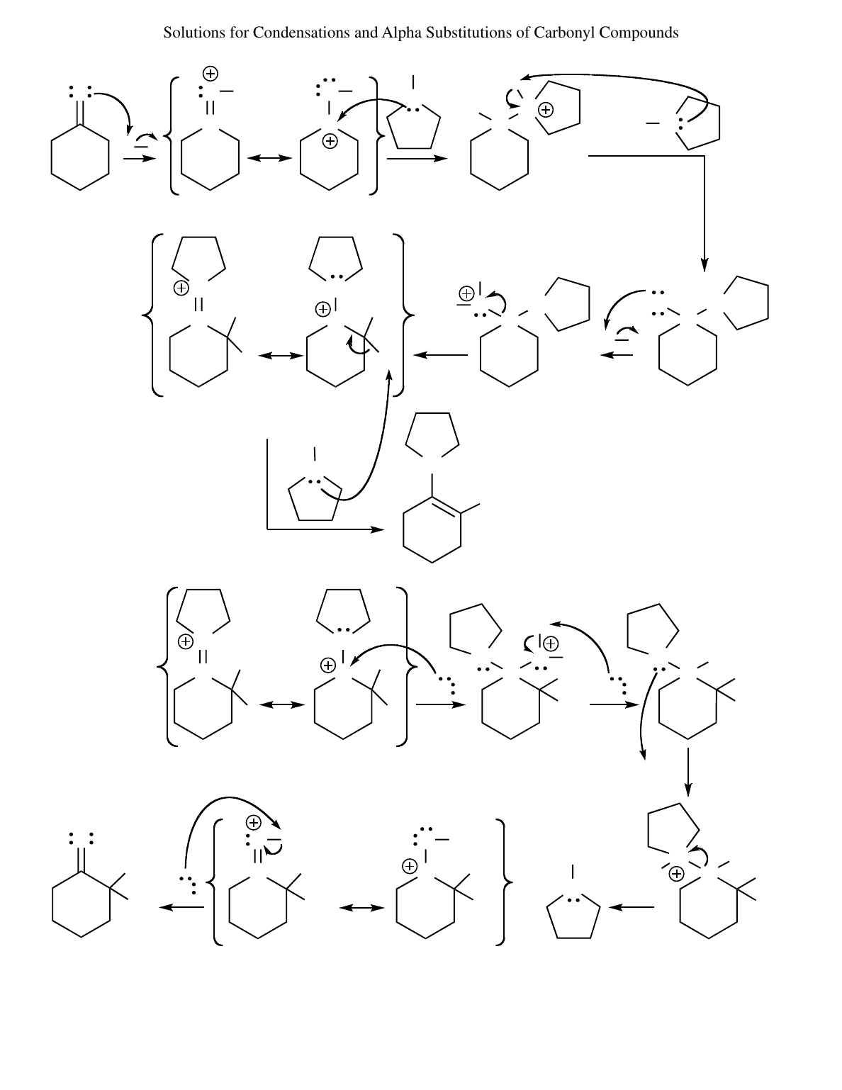 Solutions for Condensations and Alpha Substitutions of Carbonyl Compounds O C O H O H C N C HO N H N C HO C O N H C N H HH H N C H N 6 H NH H N H + C N O H C N H RR H N C H R R H N C OH C N OH H R HC O H O H C N H R H R H 7 H O H R R = CH2Ph H2O H3O+ H2O H2O − H2O H A H A A B C DE F Steps A–F are similar to imine formation, described in the solution to Problem 18-21. 551