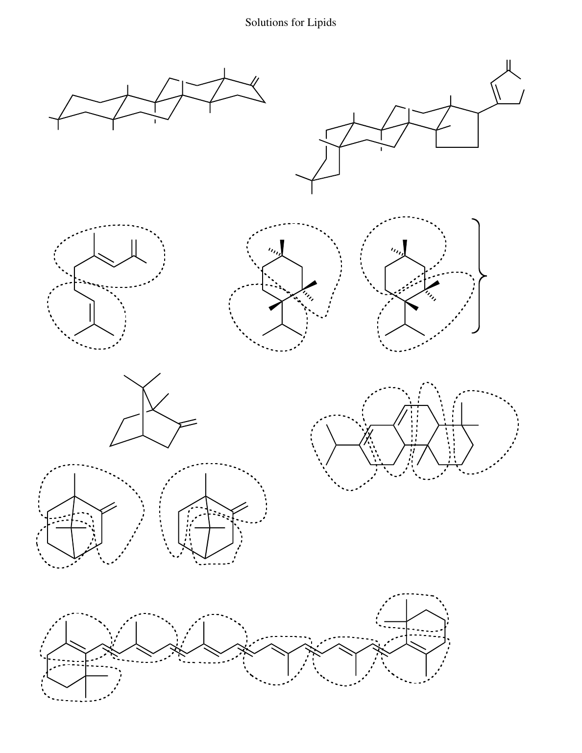 Solutions for Lipids H CH3 H H OH H O CH3 H B A CH3 OH H HO H O H O H CH3 ax to B eq to A ax to A eq to B (d) ax ax axax (c) ax ax ax ax 10 continued ax ax ax eq H O O CH3 OH H H H O OR OR H H H OH CH3 O COOH 11 menthol geranial camphor abietic acid camphor shown in top view 12 β-carotene 660