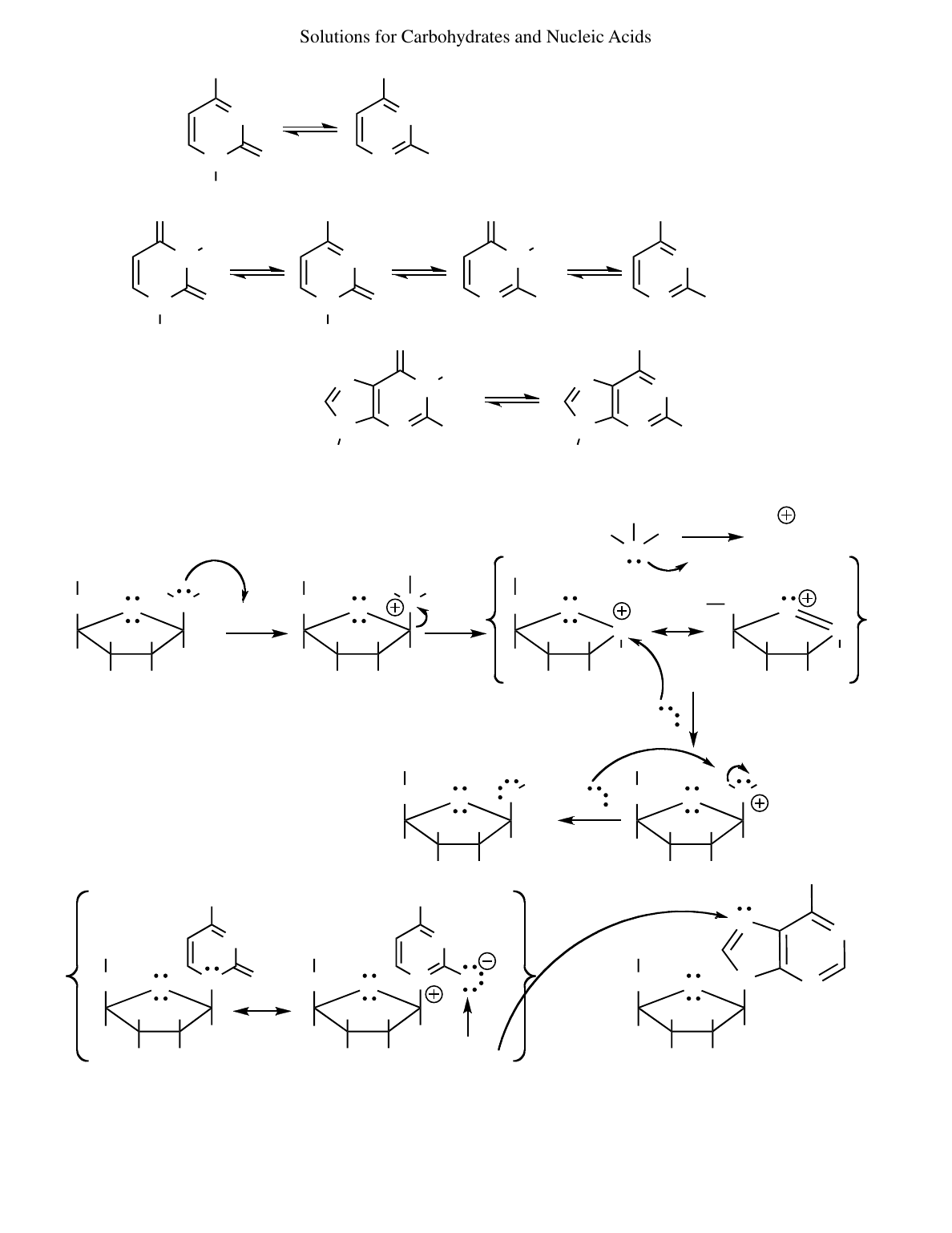 Solutions for Carbohydrates and Nucleic Acids OH NH2 N NN N NH2 O H N N O OH H OH OH N NN H O O N H N N OH O H N NN N H NH2 O H OH NH2 N H N N N guanine: uracil: cytosine:49 R2NH2 R N R H H+ H+ R N R H HH OHOH H CH2 O OH H C H HH OHOH H CH2 O OH R N R H HH OHOH H CH2 O OH C H HH OHOH H CH2 OHO H2O H2OO H H HH OHOH H CH2 O OH H O H H HH OHOH H CH2 O OH N H HH OHOH H CH2 O OH N N N NH2 N N NH2 O H HH OHOH H CH2 O OH N N NH2 O H HH OHOH H CH2 O OH cytidine 50 Aminoglycosides, including nucleosides, are similar to acetals: stable to base, cleaved by acid. (a) 3° aliphatic amine— strong base hemiacetal form of ribose (b) site of protonation; weak base adenosine See discussion on next page. 616