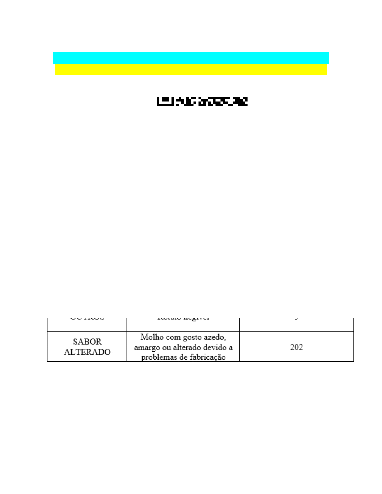 MAPA - EPROD - GESTÃO DA QUALIDADE - 54_2025 Assessoria nos seus TRABALHOS entre em contato com a DL ASSESSORIA E-mail: assessoriaacademicadl@gmail.com · (15) 99143-3322 QUESTÃO 1 Em 2023, a Agência Nacional de Vigilância Sanitária (Anvisa), suspendeu a fabricação, a comercialização, a distribuição e o uso de todos os alimentos de uma marca muito conhecida no ramo alimentício brasileiro. “A empresa é conhecida, principalmente, pela fabricação de molhos de tomate, conservas vegetais e outros molhos, como maioneses e mostardas”. A razão para essa suspensão foi o excesso de reclamações e a constatação de falhas no controle da qualidade. Situações como essas podem ser mudadas, porém, afeta diretamente a imagem da empresa com seus consumidores, não é mesmo? Diante dessa situação, a empresa precisou adotar urgente medidas mais rígidas e aprimorar os seus processos de gestão da qualidade para tentar reverter quanto antes a sua imagem no setor alimentício. VOCÊ, assumiu o papel de Gestor da Qualidade dessa empresa, especificamente para os sachês de molho de tomate, que foi o produto mais afetado pelas reclamações. Com o intuito de encontrar a melhor solução para o problema e garantir que a empresa volte a entregar produtos de qualidade, você utilizará algumas Ferramentas da Qualidade, como Gráfico de Pareto e Diagrama de Causa e Efeito (Ishikawa) para ajudar na sua tomada de decisão. Seu primeiro passo para lidar com essa situação, foi listar em uma tabela as falhas (reclamações recebidas) e a frequência de ocorrência, recebidas durantes os últimos 2 meses em ordem alfabética, conforme apresentados na Tabela 1. Tabela 1 - Reclamações e a frequência de ocorrência recebidas dos sachês de molho de tomate, nos últimos 2 meses, organizado em ordem alfabética. Obs.: Valores fictícios. Fonte: Elaborado pela autora, 2025. Agora, como Gestor(a) da Qualidade, seus próximos passos serão: ETAPA 1 - CONSTRUIR A TABELA PARA O GRÁFICO DE PARETO - Com os dados da Tabela 1, monte e apresente a tabela completa, incluindo as colunas de frequência acumulada, percentual e percentual acumulado, respectivamente. Obs.: pode utilizar o Microsoft Excel para montar a Tabela/Gráfico, desde que forem colados como imagem (arquivo em Excel NÃO será aceito); caso opte por fazer à mão, a resolução da imagem deve ser nítida e legível. Após digitalizar ou tirar a foto, cole a imagem da tabela/gráfico junto com a sua resolução nesse documento. ETAPA 2 - CONSTRUIR O GRÁFICO DE PARETO - Com base na Tabela obtida na Etapa 1, elabore e apresente o Gráfico de Pareto. ETAPA 3 – TOMADA DE DECISÃO - Após analisar o Gráfico de Pareto, qual reclamação, com maior impacto, você como Gestor (a) da Qualidade, deve priorizar para iniciar as ações corretivas? Justifique sua resposta. ETAPA 4- CAUSA E EFEITO - Após identificar a reclamação que mais impactou a insatisfação de seus clientes, o próximo passo é investigar as possíveis causas desse problema. Para isso, desenhe um Diagrama de Ishikawa (também conhecido como Diagrama de Causa e Efeito ou Espinha de Peixe), com o objetivo de identificar as causas que contribuem para o efeito indesejado identificado na Etapa 3. Indique no mínimo duas causas para cada M (Mão de Obra; Método; Máquina; Material; Meio Ambiente e Medidas). ETAPA 5 – PRÓXIMOS PASSOS – Suponha que as ações corretivas foram implementadas e o principal motivo das reclamações foi priorizado e resolvido. Conte agora quais serão os seus próximos passos como Gestor da Qualidade que ainda tem a missão de continuar reduzindo os demais números de reclamações, e consequentemente melhorar ainda mais a satisfação dos clientes? Bom trabalho! 22 image0.wmf image1.wmf image2.wmf
