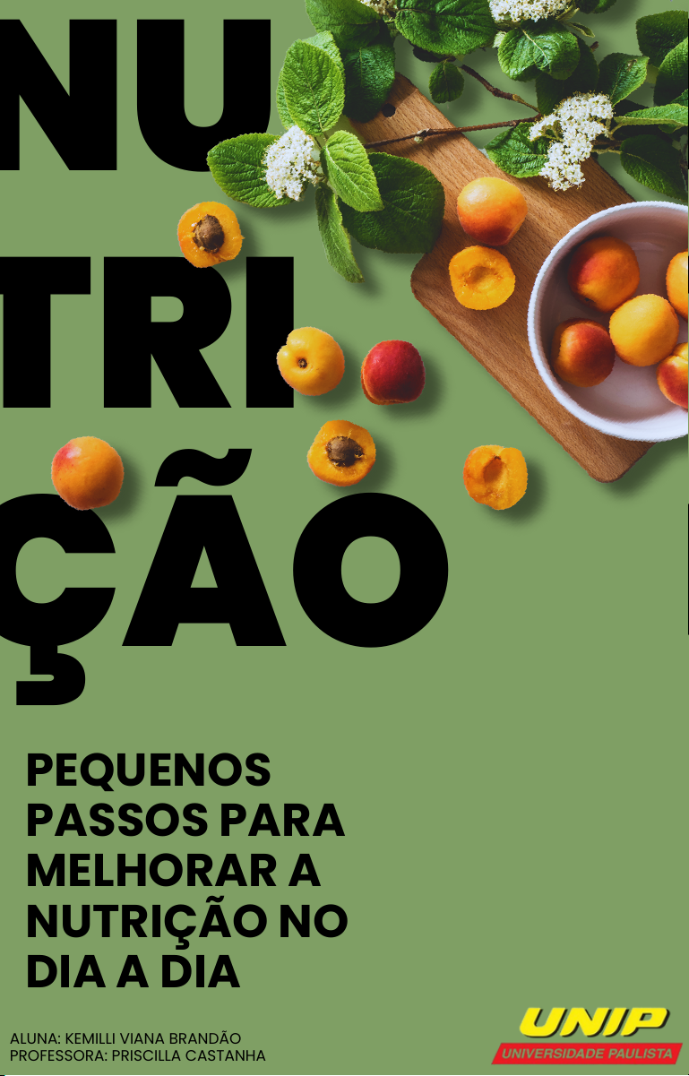 NU TRI ÇÃO PEQUENOS PASSOS PARA MELHORAR A NUTRIÇÃO NO DIA A DIA ALUNA: KEMILLI VIANA BRANDÃO PROFESSORA: PRISCILLA CASTANHA A alimentação é parte essencial da nossa saúde e qualidade de vida. Muitas vezes pensamos que comer bem exige dietas restritivas, mas na verdade pequenos passos já podem transformar a nossa rotina. Este material traz dicas simples, acessíveis e práticas que ajudam a organizar melhor as refeições, equilibrar o prato e tornar a alimentação mais saudável. O objetivo é mostrar que cada escolha conta e que mudar aos poucos é possível para todos. Introdução 1. Faça uma lista com o que realmente precisa e evite comprar por impulso. 2. Prefira alimentos naturais e frescos — frutas, verduras e legumes da estação costumam ser mais baratos e nutritivos. 3. Leia os rótulos: escolha produtos com menos ingredientes e evite os que contêm muito açúcar, gordura e sódio. 4. Compre apenas a quantidade que será consumida, evitando o desperdício. 5. Leve sacolas reutilizáveis e contribua com o meio ambiente. Compras Conscientes Fazer boas escolhas começa no carrinho de compras. Planejar antes de ir ao mercado ajuda a economizar e a evitar produtos desnecessários. Fazer compras vai muito além de encher o carrinho. É o momento de escolher o que vai nutrir o corpo e trazer energia para o dia a dia. Cada produto colocado na sacola é uma decisão sobre saúde, bem-estar e também sobre o impacto que causamos no meio ambiente. Comprar com consciência é praticar o autocuidado desde o supermercado. Organização das Refeições 1. Mantenha horários regulares para as refeições principais (café da manhã, almoço e jantar). 9hs 13h 19hs 2. Evite pular refeições: isso pode gerar fome em excesso e escolhas menos saudáveis. 3. Planeje os lanches intermediários, como frutas, castanhas ou iogurte natural. 4.Preparar marmitas em casa ajuda a economizar e comer melhor. Dica prática: reserve 1 hora da semana para organizar sua lista de compras e pensar em refeições simples para o dia a dia. Organizar suas refeições é transformar pequenas escolhas em grandes resultados! METADE DO PRATO: verduras e legumes de cores diferentes UM QUARTO DO PRATO: proteínas (carnes magras, ovos, feijão, lentilha, grão-de-bico) UM QUARTO DO PRATO: carboidratos (arroz, batata, mandioca, pão integral) O Prato Equilibrado (Prato Colorido) Um prato saudável deve ter variedade de cores e grupos alimentares: Pão branco Refrigerante Biscoito recheado Arroz branco Pão integral, tapioca Água, água com gás Fruta, iogurte, castanhas Arroz, integral, quinoa, batata doce O que comer hoje ? Pode substituir por… Cuidar da alimentação vai muito além do que colocamos no prato. Pequenos hábitos do dia a dia influenciam diretamente nossa saúde, energia e bem-estar. Beber água regularmente, por exemplo, mantém o corpo hidratado, ajuda a eliminar toxinas e pode até reduzir aquela fome desnecessária. Dormir bem também é fundamental: uma boa noite de sono regula os hormônios ligados à fome e ao metabolismo, deixando você mais disposto e ajudando a controlar a vontade de comer fora de hora. prática de atividade física, mesmo que simples, como uma caminhada de 20 a 30 minutos, contribui para a saúde do coração, fortalece os músculos e melhora o humor. Comer devagar e prestar atenção nos alimentos também faz diferença mastigar bem aumenta a saciedade e melhora a digestão, fazendo com que você se sinta satisfeito com menos comida. Além disso, reduzir o consumo de alimentos ultraprocessados, como refrigerantes, embutidos e biscoitos recheados, ajuda a controlar o peso, proteger o coração e manter a energia ao longo do dia. A boa notícia é que não é preciso mudar tudo de uma vez. Pequenas substituições já fazem diferença: troque o refrigerante por água saborizada, o salgadinho industrial por pipoca caseira e o biscoito recheado por uma fruta fresca. Adotar esses hábitos aos poucos transforma não apenas a alimentação, mas também a saúde, o bem-estar e a disposição para viver melhor. Comece incorporando uma mudança de cada vez e veja os resultados aparecerem de forma gradual e duradoura. Pequenos Hábitos que Fazem Diferença 1. Coma com atenção — evite distrações e perceba o momento em que está satisfeita. 2. Reduza o consumo de refrigerantes, embutidos e ultraprocessados aos poucos, sem proibições. 3. Faça substituições inteligentes: troque o biscoito recheado por uma fruta, ou o refrigerante por água com limão. 4. Sirva-se com porções menores e repita se ainda estiver com fome. 5. Lembre-se: o prazer de comer também faz parte de uma alimentação saudável. Redução de Excessos (sem foco em dietas) Cuidar da alimentação não é sobre cortar alimentos, e sim sobre encontrar equilíbrio. Equilíbrio é o segredo para manter hábitos saudáveis sem abrir mão do que você gosta! 1. Beba água ao longo do dia 2. Durma bem: o sono regula fome e metabolismo 3. Atividade física regular: caminhada, alongamento ou dança 4. Coma devagar: mastigar bem melhora digestão e saciedade 5. Reduza ultraprocessados: refrigerantes, embutidos, biscoitos Pequenos Hábitos que Fazem Diferença checklist Comece hoje! - Inclua uma fruta ou verdura na próxima refeição - Troque refrigerante por água - Caminhe 15 minutos Cuidar da alimentação não precisa ser complicado. Cada escolha que fazemos ao longo do dia influencia diretamente nossa saúde, disposição e bem-estar. Pequenos passos, como incluir uma fruta no café da manhã, preparar refeições em casa ou trocar refrigerante por água, podem gerar mudanças significativas ao longo do tempo. O importante é lembrar que a mudança não acontece do dia para a noite. Mudar hábitos alimentares é um processo gradual, que se fortalece com consistência e paciência. Celebrar cada conquista, por menor que seja, ajuda a manter a motivação e transformar essas pequenas atitudes em rotina.