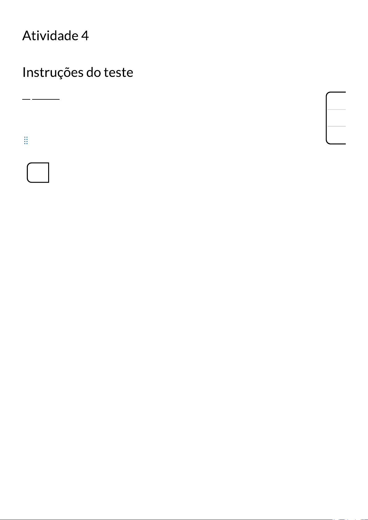 Iniciado: 20 nov em 18:30 Pergunta 1 0,2 pts Importante: Caso você esteja realizando a atividade através do aplicativo "Canvas Student", é necessário que você clique em "FAZER O QUESTIONÁRIO", no final da página. Segundo o artigo abaixo: A acessibilidade de websites pode ser avaliada por validadores automáticos [W3C 2010] que analisam a adequação das páginas às diretrizes. Eles reduzem o tempo e o esforço de verificação, porém não identificam todas as barreiras à acessibilidade [SERPRO 2010], pois validam apenas a sintaxe do código. Assim, além de especialistas, pessoas com deficiências também devem participar da avaliação, pois desenvolvem importantes habilidades na interação mediada por tecnologias assistivas [Theofanos e Redish 2003]. Para desenvolver e avaliar quaisquer produtos de software é preciso selecionar características de qualidade relevantes para eles. Para auxiliar este processo, as normas NBR ISO/IEC 9126-1 e NBR ISO/IEC 14598-1 definem, respectivamente, um modelo de qualidade e um processo de avaliação para produtos de software. No modelo de qualidade da NBR ISO/IEC 9126-1 são especificadas seis características de qualidade (funcionalidade, confiabilidade, usabilidade, eficiência, manutenibilidade e portabilidade), podendo ser consideradas na avaliação apenas os relevantes para o software em questão [NBR ISO/IEC 9126-1 2003]. Cada característica subdivide-se em subcaracterísticas. Estas devem ser subdivididas e mensuradas através de atributos, propriedades do software definidas pelo avaliador [NBR ISO/IEC 14598-1 1998]. O modelo para o processo de avaliação do produto de software, definido pela NBR ISO/IEC 14598-1 apresenta uma sequência de etapas destinadas a guiar o processo de avaliação [NBR ISO/IEC 14598-1 1998]. (Fonte: Aplicação do modelo de qualidade da NBR ISO/IEC 9126 para avaliação de website com nível de acessibilidade AAA conforme o e-MAG Janicy A. Pereira Rocha¹, Dorirley Rodrigo Alves¹, Tiago França Melo de Lima² ¹ Instituto de Ciências Exatas e Informática - PUC-Minas - Campus Guanhães ² TerraLAB - Departamento de Computação - Universidade Federal de Ouro Preto) Considerando as informações apresentadas, avalie as afirmações abaixo: I. As normas ISO 9126-1 e a 14598-1 são um modelo de qualidade e um processo de avaliação para produtos de software. A+ A A- Teste: Atividade 4 https://famonline.instructure.com/courses/48644/quizzes/234120/take 1 of 7 20/11/2025, 18:41 Pergunta 2 0,2 pts II. A ISO 9126-1 é baseada em 6 características de qualidade. III. A ISO 14598-1 define, um modelo de qualidade e um processo de avaliação para produtos de software. IV. A ISO 9126-1 define, um processo de avaliação para produtos de software. É correto o que se afirma apenas em: II II e III III e IV II e IV I e II Leia o texto a seguir: “Segundo o SWEBOK 3.0, qualidade de software é uma área do conhecimento da engenharia de software que pode se referir a: “características desejadas de produtos de software, a extensão em que um produto de software em particular possui essas características e aos processos, ferramentas e técnicas que são usadas para garantir essas características”. Com base nessa definição a área de qualidade de software existe para que o software em questão esteja em conformidade com o que foi combinado durante o levantamento de requisitos do mesmo e evitar o máximo possível de falhas durante o uso.” (Fonte: Disponível em: https://blog.arkmeds.com/2017/11/07/qualidade-software-engenharia- clinica-fatores-que-impactam-no-sucesso-do-setor/ (https://blog.arkmeds.com/2017/11/07/ qualidade-software-engenharia-clinica-fatores-que-impactam-no-sucesso-do-setor/) . Acesso em: 04 de mar. de 2020) De acordo com SWEBOK 3.0 a que qualidade de software ele se refere? Uma área de desenvolvimento Uma área de operações A+ A A- Teste: Atividade 4 https://famonline.instructure.com/courses/48644/quizzes/234120/take 2 of 7 20/11/2025, 18:41 Pergunta 3 0,2 pts Uma área da infraestrutura Uma área da administração Uma área da engenharia de software Leia o texto e observe a figura abaixo: Qual é a importância da Tripla Restrição? Também chamado de Triângulo da Gestão de Projetos, Triângulo de Ferro ou Triângulo do Projeto, a Tripla Restrição na Gestão de Projetos é o principal modelo de ações e reações no gerenciamento de projetos. Um projeto é definido como um esforço temporário empreendido na criação de um produto, de um serviço ou de um resultado único. Dessa forma, o projeto: - Deve atender todas as características pactuadas entre os stakeholders na ocasião da definição do escopo do projeto, nem mais e nem menos do que isso; - Sua entrega deve ser realizada dentro do prazo pactuado entre as partes interessadas; - O orçamento disponibilizado pelos patrocinadores deve ser respeitado, e; - As expectativas de qualidade dos Patrocinadores e Clientes devem ser atingidas. - Os três atributos de restrição de um projeto podem ser representados na forma de um triângulo, onde cada um dos vértices simboliza uma das restrições e a qualidade e torna o objeto central. (Fonte: Disponível em: http://movimentoimpactoglobal.com.br/tripla-restricao/ (http:// movimentoimpactoglobal.com.br/tripla-restricao/) . Acesso em: 04 de mar. de 2020) Considerando o texto, entendemos que um projeto está ligado a tripla restrição, podemos A+ A A- Teste: Atividade 4 https://famonline.instructure.com/courses/48644/quizzes/234120/take 3 of 7 20/11/2025, 18:41 Pergunta 4 0,2 pts entender sua importância pois: Tudo pode mudar num projeto, sempre, pode atrasar a entrega, a qualidade e o custo do projeto, e os custos são calculados durante o projeto, as estimativas são feitas depois do escopo. A tripla Restrição na Gestão de Projetos faz parte do cerne de ações de gerenciamento de projetos, portanto é onde se determina de antemão o sucesso e o fracasso de um projeto. Um 