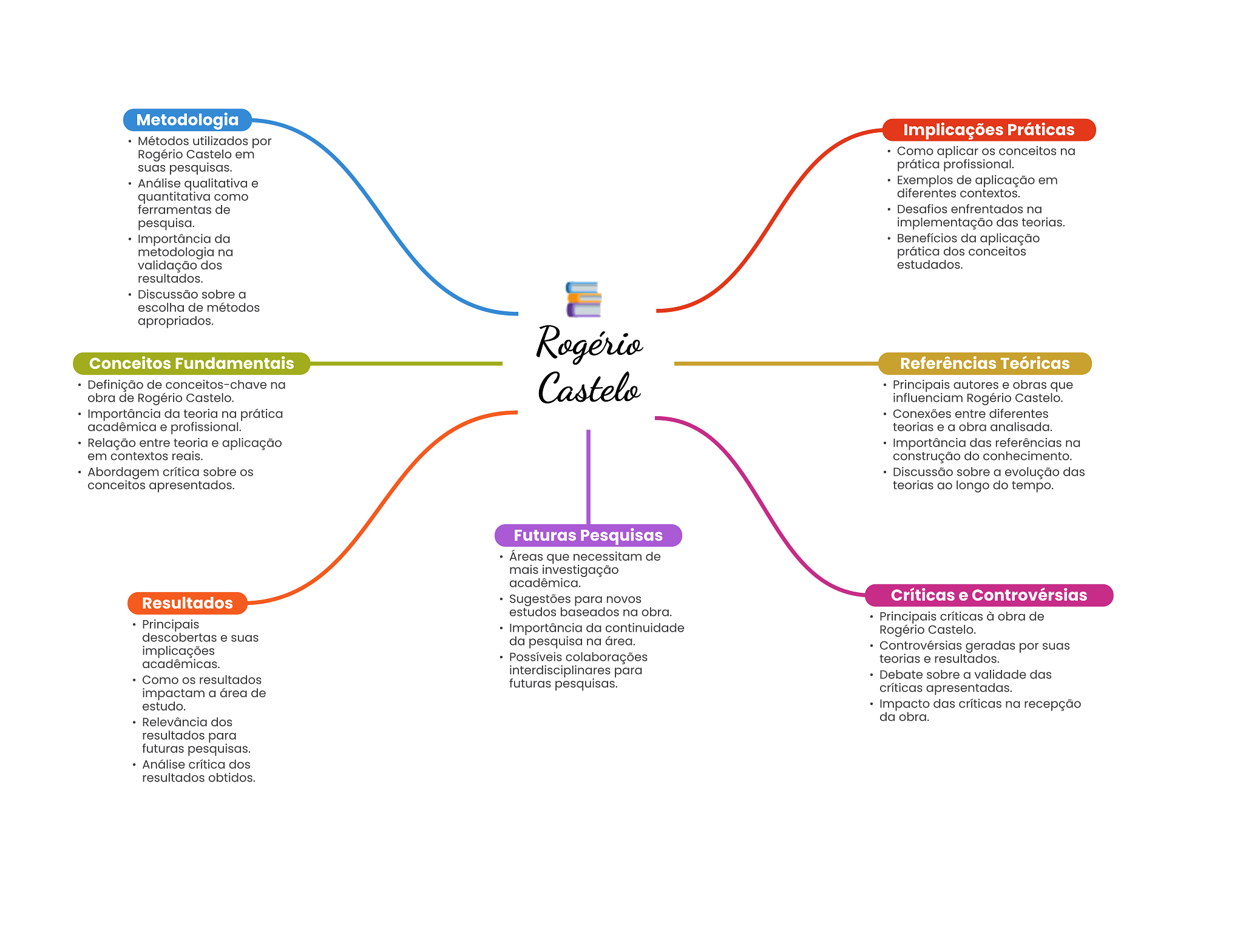Metodologia Implicações Práticas Métodos utilizados por Rogério Castelo em Como aplicar os conceitos na suas pesquisas. prática profissional. Análise qualitativa e Exemplos de aplicação em quantitativa como diferentes contextos. ferramentas de Desafios enfrentados na pesquisa. implementação das teorias. Importância da Benefícios da aplicação metodologia na prática dos conceitos validação dos estudados. resultados. Discussão sobre a escolha de métodos apropriados. Rogério Conceitos Fundamentais Referências Teóricas Definição de conceitos-chave na Castelo Principais autores e obras que obra de Rogério Castelo. influenciam Rogério Castelo. Importância da teoria na prática Conexões entre diferentes acadêmica e profissional. teorias e a obra analisada. Relação entre teoria e aplicação Importância das referências na em contextos reais. construção do conhecimento. Abordagem crítica sobre OS Discussão sobre a evolução das conceitos apresentados. teorias ao longo do tempo. Futuras Pesquisas Áreas que necessitam de mais investigação acadêmica. Sugestões para novos Críticas e Controvérsias Resultados estudos baseados na obra. Principais críticas à obra de Principais Importância da continuidade Rogério Castelo. descobertas e suas da pesquisa na área. implicações Controvérsias geradas por suas acadêmicas. Possíveis colaborações teorias e resultados. interdisciplinares para Como OS resultados Debate sobre a validade das futuras pesquisas. impactam a área de críticas apresentadas. estudo. Impacto das críticas na recepção Relevância dos da obra. resultados para futuras pesquisas. Análise crítica dos resultados obtidos.