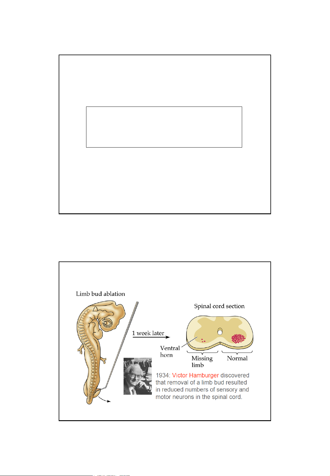 25-Nov-18 1 Neurotrophic Factors and their signaling Lessons (17-18) The Neurotrophic factor hypothesis 25-Nov-18 2 The Neurotrophic factor hypothesis (but he was wrong) 25-Nov-18 3 The discovery of Nerve Growth Factor The Neurotrophin Family 25-Nov-18 4 Family Specific examples Neurotrophin Nerve growth factor (NGF) Brain-derived ticurotrophie factor (BDNF) Neurotrophin 3 (NT-3) EGF Epidermal growth factor (EGF) Transforming growth factor alpha (TGF) Vaccinia virus growth factor Amphiregulin (AR) Schwannoma-derived growth factor (SDGF) FGF Acidic fibroblast growth factor (aFGF) Basic fibrobiast growth factor (bFGF) INT-2, FGF-5, FGF-6, KGF, HST/KGF Insulin-like Insulin Insulin-like growth factors (somatomedins) Relaxin Others Growth hormone (GH) Platelet-derived growth factor (PDGF) Mast cell growth factor (MGS) Colony stimulating factors Ciliary neurotrophie factor (CNTF) Glial maturation factor Protease ne)án 1, Il Sweat gland factor Cholinergic neuronal differentiation factor (CDF) Muscle-derived growth factors (MDGF) Striatal-derived neuronotrophic factor Transforming growth factor beta (TGF)/inhibirVactivin family Membrane-associated neurotransmitter stimulating factor (MANS) Thrombin Entactin Erythropoietin Neurite inducing factor Stem cell factor (SCF) Interleukin 1,3,6 Glial-derived nexin Heparin-binding NF Extracelluiar matrix/adhesion factors Laminin Fibronectin Purpurin Apolipoproteins Gangliosides Nonpeptide hormones Steroid T3/T4 Families of growth and trophic factors DEFINITION Growth factors include substances that stimulate cells to divide (hyperplasia) or increase in size (hypertrophy). Many growth factors are now known to exist Trophic factors include those substances that have effects on cell differentiation, cell survival, expression of a specific cellular phenotype (e.g. a cell becomes an inhibitory or an excitatory neuron), cellular morphological plasticity, as well as cell hypertrophy including, for example, the induction of neurite extention (also considered a "trophic" action). Importantly, some growth factors may also act as trophic factors and viceversa and each growth/trophic factor may have a specific combination of cellular effects. What is a growth factor ? What is a trophic factor ? 25-Nov-18 5 Neurotrophic factors Neurotrophic factors are endogenous soluble proteins regulating survival, growth, morphological and synaptic* plasticity, or synthesis of proteins for differentiated functions of neurons or glial cells. (* synaptic plasticity = regulation of the transmission activity at the level of the synapse) Growth factor References Nerve growth factor (NGF) Thoenen et al., 1987 Whittemore and Sciger, 1987 Hefti et al., 1989 Brain-derived neurotrophic factor (BDNF) Barde et al., 1982 Leibrock et al., 1989 Neurotrophin-3 (NT-3) Ernfors et al., 1990 Hohn et al., 1990 Maisonpierre et al., 1990 Rosenthal et al., 1990 Neurotrophin-4 (NT-4) HalIbrook et al., 1991 Neurotrophin-5 (NT-S) Berkerneier et al., 1991 Ciliary neurotrophic factor (CNTF) Lin et al., 1989 Stóckli et al., 1989 Heparin-binding neurotrophic factor (HBNF) Kovesdi et al., 1990 Growth factors vith neurotrophic activity Basic fibroblast growth factor (bFGF) Morrison et al., 1986 Walicke, 1988 Acidic fibroblast growth factor (aFGF) Walicke, 1988 Insulin-like growth factors (IGFs), insulin Aizenman et al., 1986 Baskin et al., 1987 Epidermal growth factor (EGF) Fallon et al., 1984 Morrison et al., 1987 Transforming growth factor cc (TGFcc) Deryncl,, 1988 Fallon et al., 1990 Interleukin 1 Spranger et al., 1990 Interleukin 3 Kamegai, 1990 Interleukin 6 Harna et al., 1989 Protease nexin 1 and Il Monard, 1987 Oltersdorf et al., 1989 Whitson et al., 1989 Cholinergic neuronal differentiation factor Yarnarnori et al., 1989 List of characterized proteins exhibiting neurotrophic activities 25-Nov-18 6 Neurotrophic factors are produced by all cells of the nervous system, including neurons, glial cells, ependimal cells, blood vessels endothelial cells and cells from innervated tissues such as muscles, epidermis, etc… Which cell synthesizes the neurotrophic factors ? How are neurotrophic factors released from cells ? Abbreviations: g, glial; n, neuronal; bv, blood vessel; ecm, extracellular matrix. Modes of secretion and intercellular communication mechanisms of neurotrophic activity. 25-Nov-18 7 What cellular actions have neurotrophins ? • Neurotrophins will be taken as example because they were the first neurotrophic factors to be discovered (see next section on the discovery of NGF) and because they have a large number of cellular effects. In particular neurotrophins have a: • 1) Trophic action as cell survival factors • 2) Trophic action by stimulating growth of cellular processes (axons and dendrites = neurites, i.e. they promote neuritogenesis) • 3) Trophic action on the cellular phenotype • 4) Trophic/growth action on cellular dimensions • 5) Trophic action on morphological plasticity • 6) Trophic action on synaptic plasticity • 7) Trophic action on cellular differentiation Neurotrophins were first described for their trophic role on cell survival. retrograde neurotrophins transport Correct target No target 25-Nov-18 8 DRG = Dorsal Root Granglion, NG = Nodose Ganglion, SG = Sympatethic ganglion Knock-out mice have highlighted the role of neurotrophins in survival of different neuronal types 25-Nov-18 9 Neurotrophic Factors signalling The neurotrophins and their receptors Mature-neurotrophins Mature-neurotrophins Pro-neurotrophins Protease 25-Nov-18 10 The neurotrophins and their receptors Mature-neurotrophins Mature-neurotrophins Pro-neurotrophins Protease NT signalling transduction pathways and their functions 25-Nov-18 11 Cell Death Cell Survival, Growth and Differentiation The neurotrophins and their receptors Pro-neurotrophins Mature-neurotrophins NT signalling through Trk and p75 receptors Pro and mature-NT bind as dimers to p75- and Trk-receptors. Trk receptor dimerization leads t