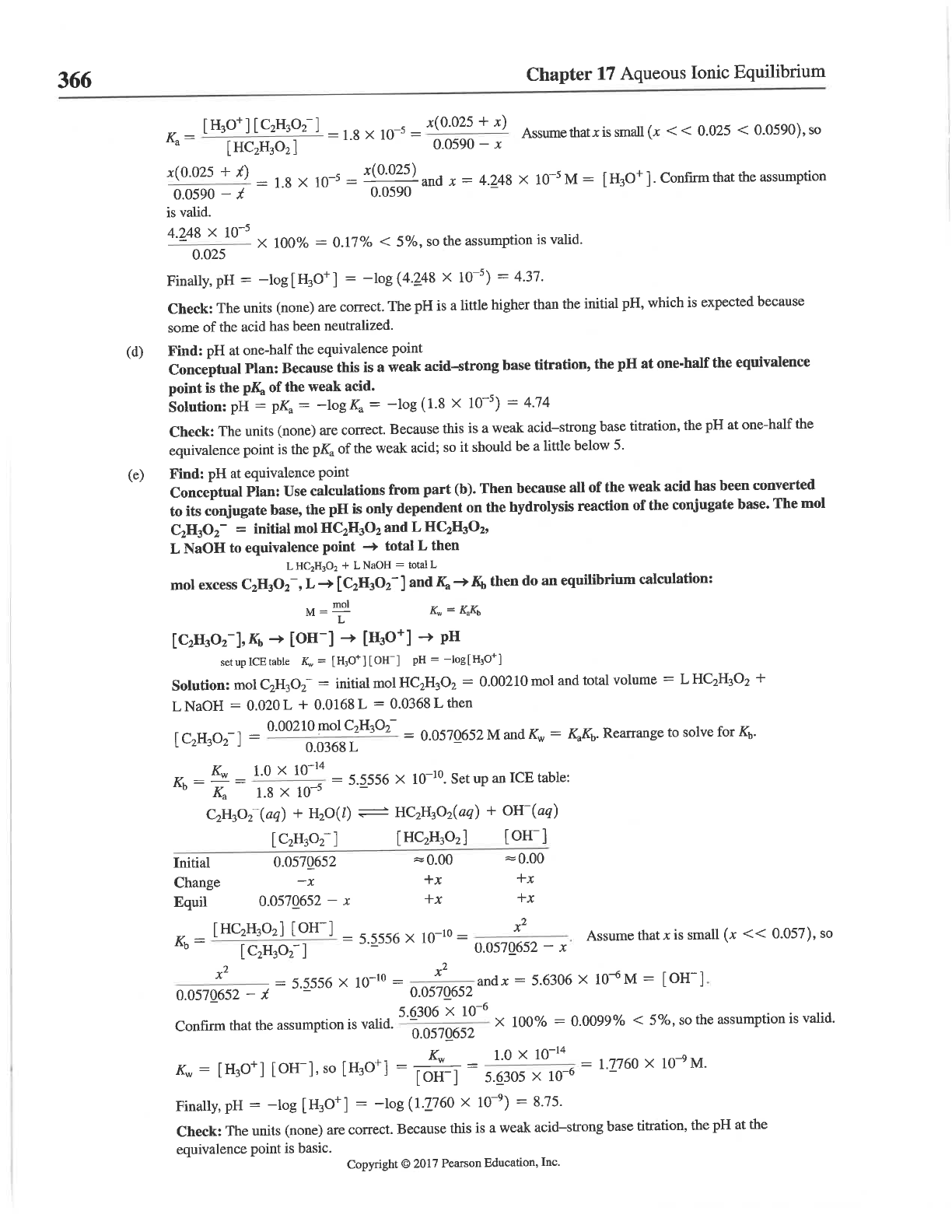 366 Chapter 17 Aqueous Ionic Equilibrium x(0.025 + = = 1.8 10⁻⁵ = Assume that x is small (x