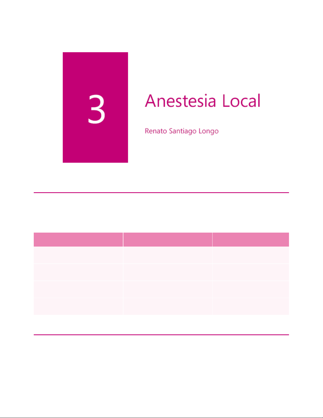 Considerações gerais A Sociedade Brasileira de Anestesiologia, juntamente com todas as suas afiliadas, recomenda que todo procedimento médico anestesiológico deva ser realizado por um médico anestesiologista, pois ele é a pessoa indicada para realizar os cálculos da dosagem adequada (Tabela 3.1) e tratar eventuais complicações. Tabela 3.1 Alguns anestésicos e suas doses máximas. Anestésico Dose máxima (mg/kg) Dose total máxima (mg) Bupivacaína (Marcaína®) 2 150 Lidocaína (Xylocaína®) 7 500 Prilocaína (Citanest®) 6 400 Ropivacaína (Naropin®) 2 a 3 150 a 200 Conceitos básicos Os anestésicos locais determinam o bloqueio reversível da condução nervosa, ocasionando perda das sensações e abolição de funções autonômicas e motoras. Essa reversibilidade de efeito constitui sua principal característica. A maior parte dos anestésicos locais em uso atualmente é de tipo amida, incluindo prilocaína, procainamida, articaína, lidocaína, mepivacaína, bupivacaína, etidocaína e ropivacaína, os quais raramente determinam reações alérgicas. www.princexml.com Prince - Non-commercial License This document was created with Prince, a great way of getting web content onto paper. Sua eficácia em relação ao objetivo terapêutico é incontestável, não havendo superioridade de um agente sobre o outro. Sua seleção está basicamente relacionada com a sua duração de efeito e, assim, são classificados em agentes de curta duração (procaína e clorprocaína), duração intermediária (lidocaína, mepivacaína e prilocaína) e longa duração (tetracaína, ropivacaína, bupivacaína e etidocaína). A lidocaína é protótipo de anestésico de duração intermediária, por isso é considerada um medicamento de referência. A bupivacaína é o medicamento de referência indicado em procedimentos de maior duração. Já a prilocaína é o medicamento de referência para uso em odontologia. O uso de vasoconstritores adrenérgicos diminui a velocidade de absorção do anestésico local, reduzindo os efeitos colaterais e prolongando sua duração, porém suas doses máximas devem ser sempre respeitadas. Indicação Em geral, emprega-se a anestesia local em cirurgias de superfície, de porte pequeno ou médio. Contraindicações • Além das atinentes a todo emprego dos anestésicos locais, hipersensibilidade aos anestésicos locais, infecções na região a ser anestesiada e paciente com menos de 2 meses de idade • Absolutas: doenças cardiovasculares, hipertireoidismo não controlado, diabetes melito não controlado, feocromocitoma e hipersensibilidade a sulfitos • Relativas: utilização de antidepressivos tricíclicos, inibidores da monoamina oxidase (IMAO) apenas para fenilefrina, compostos fenotiazínicos, betabloqueadores adrenérgicos não seletivos e cocaína (cronicamente). Considerações anatômicas O uso de anestésicos locais é indicado somente na área a ser operada. Essa anestesia é frequentemente empregada pelo próprio cirurgião, em procedimentos que envolvem pequenas áreas, por meio de infiltração com um anestésico local, como lidocaína ou bupivacaína, sendo infiltrado na pele e no tecido subcutâneo, o que produz perda temporária da sensibilidade, causada pela inibição da condução nervosa (Figura 3.1). Material Assepsia da região a ser anestesiada, seringas e agulhas, além do próprio medicamento. As agulhas devem ser de pequeno calibre (30×7 ou 30×6), para causar o menor desconforto possível ao paciente. Podem-se ser utilizar o Carpule e seus tubetes adequados, quando for necessária uma pequena quantidade de anestésico, pois cada tubete tem 2,3 mℓ (Figura 3.2). Avaliação e preparo do paciente • Pesquisar histórico e exame clínico que evidenciem quaisquer das contraindicações referidas • Orientar o paciente sobre o procedimento e sua sensação • Solicitar termo de consentimento. Figura 3.1 Anestesia local. A. A aplicação é feita no local onde se realizará a pequena cirurgia. B. A agulha penetra na pele até o subcutâneo. C. O anestésico não atinge o nervo propriamente dito, mas as terminações nervosas da pele. Complicações A toxicidade sistêmica é rara e de pequena monta, se respeitadas as doses máximas recomendadas. Quando houver efeitos colaterais, a sonolência é a queixa inicial mais comum; no sistema cardiovascular, por ação direta, anestésicos locais diminuem a excitabilidade e a contratilidade cardíacas, causando bradicardia, diminuição de débito e, eventualmente, parada cardíaca. Paralelamente, provocam dilatação arteriolar, podendo acarretar hipotensão e choque. Segundo a maior parte das estatísticas, observou-se incidência de 4,5% de complicações. As mais frequentes são: tontura (1,3%), taquicardia (1,1%), agitação (1,1%), náuseas (0,8%) e tremor (0,7%). Reações de hipersensibilidade ocorreram em menos de 1% dos pacientes, e complicações graves (convulsão e broncoespasmo), em 0,07% dos casos. Naturalmente, patologias prévias são fator de risco para esses eventos. Há poucas mortes associadas à administração de anestésicos locais, com taxa de 1 em 1,4 milhão de administrações. O cirurgião deve estar alerta e apto para tratar possíveis efeitos colaterais, mesmo respeitando a dose máxima, pois existem diferenças de sensibilidade individual. Cuidados após o procedimento A alta só pode ser dada se o paciente não apresentar nenhum dos efeitos colaterais referidos ou, caso os tenha apresentado, tiver sido devidamente tratado e estiver recuperado. Figura 3.2 Montagem do Carpule. A. Tracionar a haste-êmbolo, provocando a desarticulação entre o corpo e a empunhadura da seringa e exibindo o receptáculo do tubete. B. Inserir o tubete de anestésico no Carpule, com o anel metálico voltado para o local em que será atarraxada a agulha. C. Girar a tampa da agulha em sentidos horário e anti-horário, para expor o terminal da agulha que será acoplado ao Car