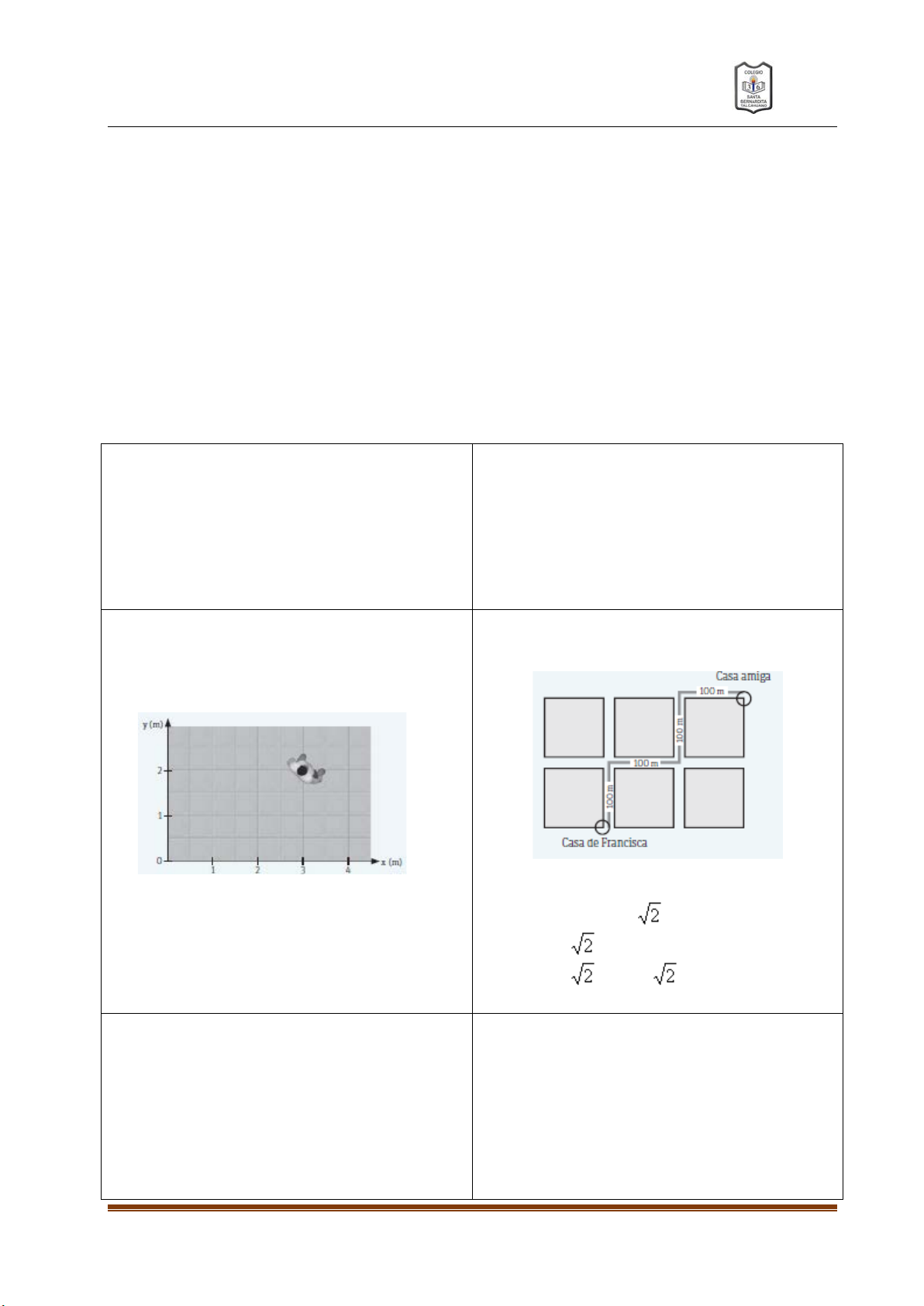 EDUCACIÓN MEDIA/FÍSICA/2020 Página 1 COLEGIO SANTA BERNARDITA TALCAHUANO ASIGNATURA: FÍSICA PROFESORA: STEPHANIE ALBORNOZ CURSO: NM2 SOLUCIONARIO EVALUACIÓN FORMATIVA MOVIMIENTO NOMBRE: ______________________________________ FECHA: Puntaje Máximo = Porcentaje mínimo de logro = Puntaje alumno = Nota ________________ I: SELECCIÓN MÚLTIPLE: Lea atentamente cada enunciado y luego seleccione la alternativa que crea correcta. 1. La magnitud del desplazamiento es siempre que la longitud de la trayectoria. a. menor o igual b. mayor o igual c. menor d. mayor 2. En un movimiento rectilíneo uniforme, ¿qué significa que la velocidad del móvil sea negativa? a. Que está detenido. b. Que va retrocediendo. c. Que tiene aceleración negativa. d. Que se mueve en sentido contrario al sistema positivo de referencia. 3. Mauricio se encuentra parado sobre el suelo de su cocina, como se muestra en la siguiente imagen. Si se mueve al punto (1, 2), ¿cuál será su desplazamiento? a. −2 m, en dirección del eje Y. b. 2 m, en dirección del eje Y. c. 2 m, en dirección del eje X. d. −2 m, en dirección del eje X 4. Francisca corre desde su casa a la de su amiga, tardando 5 min en recorrer 4 cuadras, como se muestra en el siguiente esquema ¿Cuál es la distancia recorrida por Francisca y su desplazamiento, respectivamente? a. 400 m y 200 b. 200 y 400 c. 200 y 200 d. 400 m y 400 m 5. A partir del enunciado anterior, responde la siguiente pregunta. ¿Cuál es la rapidez de Francisca? a. 0,0125 m/min b. 1,33 m/min c. 5 m/min d. 80 m/min 6. Fernando calcula la velocidad de un auto durante un tramo recto de una carretera. Si quiere expresar el resultado en unidades del Sistema Internacional, ¿en qué unidad debería expresarla? a. M b. S c. km/h d. m/s EDUCACIÓN MEDIA/FÍSICA/2020 Página 2 7. El siguiente gráfico muestra la posición en el tiempo de un ciclista que se mueve en línea recta y en una misma dirección. ¿Cuál(es) de las siguientes afirmaciones es (son) correcta(s)? I. La rapidez del ciclista es constante. II. La aceleración del ciclista es nula. III. Transcurridos 3 s el ciclista se ha desplazado 3 m. A. Solo I. B. Solo II. C. Solo I y II. D. Solo I y III. 8. Observa el grafico que se presenta a continuación y selecciona las afirmaciones correctas sobre el movimiento A. Es un movimiento acelerado. B. Recorre distancias distintas en tiempos iguales. C. El móvil tiene rapidez constante. D. El móvil va frenando. 9. A partir del enunciado anterior, responde la siguiente pregunta Con respecto al grafico velocidad vs. tiempo que se desprende del grafico anterior, se puede afirmar que sería: A. Una parábola. B. Una recta de pendiente negativa. C. Una recta de pendiente cero. D. Una recta de pendiente positiva. 10. Cuál de los siguientes movimientos podría considerarse rectilíneo? A. La trayectoria de una bala de canon. B. La luz de un puntero laser. C. La pelota chuteada por un futbolista. D. La caída de una hoja. 11. Un automóvil describe un movimiento rectilíneo uniforme. Se afirma que: I) El automóvil no cambia su aceleración. II) El automóvil no cambia su velocidad. III) El automóvil no cambia su rapidez. Es (son) correcta(s) A. sólo II. B. sólo III. C. sólo I y II. D. I, II y III. 12. Un automovilista que viaja por la carretera observa el siguiente letrero: ¿Qué información le entrega dicho letrero? A. La rapidez media máxima que le está permitido alcanzar al automóvil. B. La velocidad media máxima que le está permitido alcanzar al automóvil. C. La aceleración máxima que le está permitido alcanzar al automóvil. D. La rapidez instantánea máxima que le está permitido alcanzar al automóvil. 13. Para que un objeto describa un movimiento rectilíneo uniforme es suficiente que su A. trayectoria sea recta. B. rapidez sea constante. 14. Un cuerpo se mueve con velocidad constante. Si se cambia el sistema de coordenadas que se utiliza para describir este movimiento, se mantendrá inalterada I) la magnitud de su desplazamiento. EDUCACIÓN MEDIA/FÍSICA/2020 Página 3 C. velocidad sea constante D. desplazamiento sea recto. II) la distancia recorrida por él. III) su rapidez. Es (son) correcta(s) A. solo I. B. solo I y II. C. solo I y III. D. solo II y III. 15. En el MRU la velocidad es: A. constante B. nula C. variable D. aumenta constantemente 16. Si un automóvil se mueve a una rapidez constante de 120 Km/h: A. recorre una distancia de 120 km en una hora B. tiene una aceleración de 100 m/s2 C. recorre 1 metro en una hora D. no recorre distancia 17 El área bajo la curva de un gráfico velocidad- tiempo indica: A. Aceleración B. Tiempo C. distancia recorrida D. velocidad 18. Del gráfico adjunto, se puede concluir que el móvil: I. Recorre 30 metros en 4 segundos II. Viaja a 2,5[m/s] III. Está en reposo A. Sólo I B. Sólo II C. Sólo III D. Sólo I y II 19. Respecto a los conceptos de velocidad y rapidez, es correcto afirmar que I) la rapidez es una magnitud escalar. II) la velocidad es una magnitud vectorial. III) en todo tipo de trayectoria, la magnitud de la velocidad coincide con la rapidez. A. Solo I B. Solo III C. Solo I y III D. Solo I y II 20.Daniel camina 10 (m) hacia el sur en 20 (s) y posteriormente 20 (m) hacia el norte en 20 (s), el módulo de la velocidad media de Daniel fue: A. 3.00 (m/s) B. 2.00 (m/s) C. 1.5 (m/s) D. 0.5 (m/s) EDUCACIÓN MEDIA/FÍSICA/2020 Página 4 II) DESARROLLO Responde la siguiente pregunta de desarrollo. Un móvil describe un movimiento rectilíneo uniforme y su posición en el tiempo se presenta en la siguiente tabla. x (m) 0 10 20 30 40 50 t (s) 0 1 2 3 4 5 a. Realiza un gráfico de posición en función del tiempo. b. A partir del gráfico construido, determina el módulo de la velocidad del móvil. v = 50 m - 40 m / 5 s – 4 s = 10 m/1s = 10 m/s c. Realiza un gráfico de velocidad en función del tiempo. A partir de este gráfico, calcula la distancia recorrida. d = área = base ּaltura = 10 m/s ּ 5 s = 50 m ED