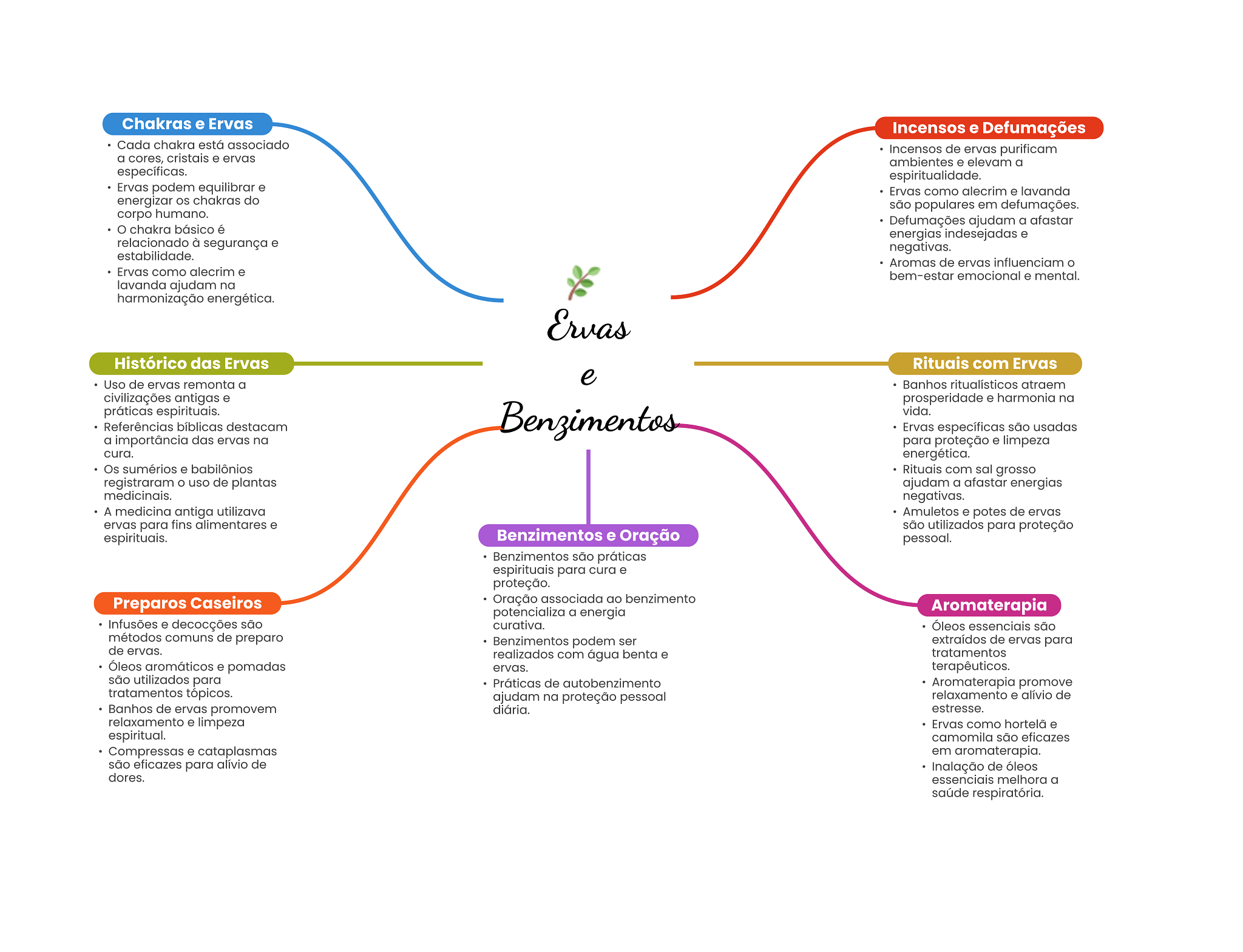 Chakras e Ervas Incensos e Defumações Cada chakra está associado Incensos de ervas purificam a cores, cristais e ervas ambientes e elevam a específicas. espiritualidade. Ervas podem equilibrar e Ervas como alecrim e lavanda energizar chakras do são populares em defumações. corpo humano. Defumações ajudam a afastar o chakra básico é energias indesejadas e relacionado à segurança e negativas. estabilidade. Aromas de ervas influenciam Ervas como alecrim e bem-estar emocional e mental. lavanda ajudam na harmonização energética. Ervas Histórico das Ervas Rituais com Ervas Uso de ervas remonta a e Banhos ritualísticos atraem civilizações antigas e prosperidade e harmonia na práticas espirituais. Referências bíblicas destacam Benzimentos vida. Ervas específicas são usadas a importância das ervas na para proteção e limpeza cura. energética. Os sumérios e babilônios Rituais com sal grosso registraram uso de plantas ajudam a afastar energias medicinais. negativas. A medicina antiga utilizava Amuletos e potes de ervas ervas para fins alimentares e são utilizados para proteção espirituais. Benzimentos e Oração pessoal. Benzimentos são práticas espirituais para cura e proteção. Preparos Caseiros Oração associada ao benzimento potencializa a energia Aromaterapia Infusões e decocções são curativa. Óleos essenciais são métodos comuns de preparo Benzimentos podem ser extraídos de ervas para de ervas. realizados com água benta e tratamentos Óleos aromáticos e pomadas ervas. terapêuticos. são utilizados para Práticas de autobenzimento Aromaterapia promove tratamentos tópicos. ajudam na proteção pessoal relaxamento e alívio de Banhos de ervas promovem diária. estresse. relaxamento e limpeza Ervas como hortelã e espiritual. camomila são eficazes Compressas e cataplasmas em aromaterapia. são eficazes para alívio de Inalação de óleos dores. essenciais melhora a saúde respiratória.