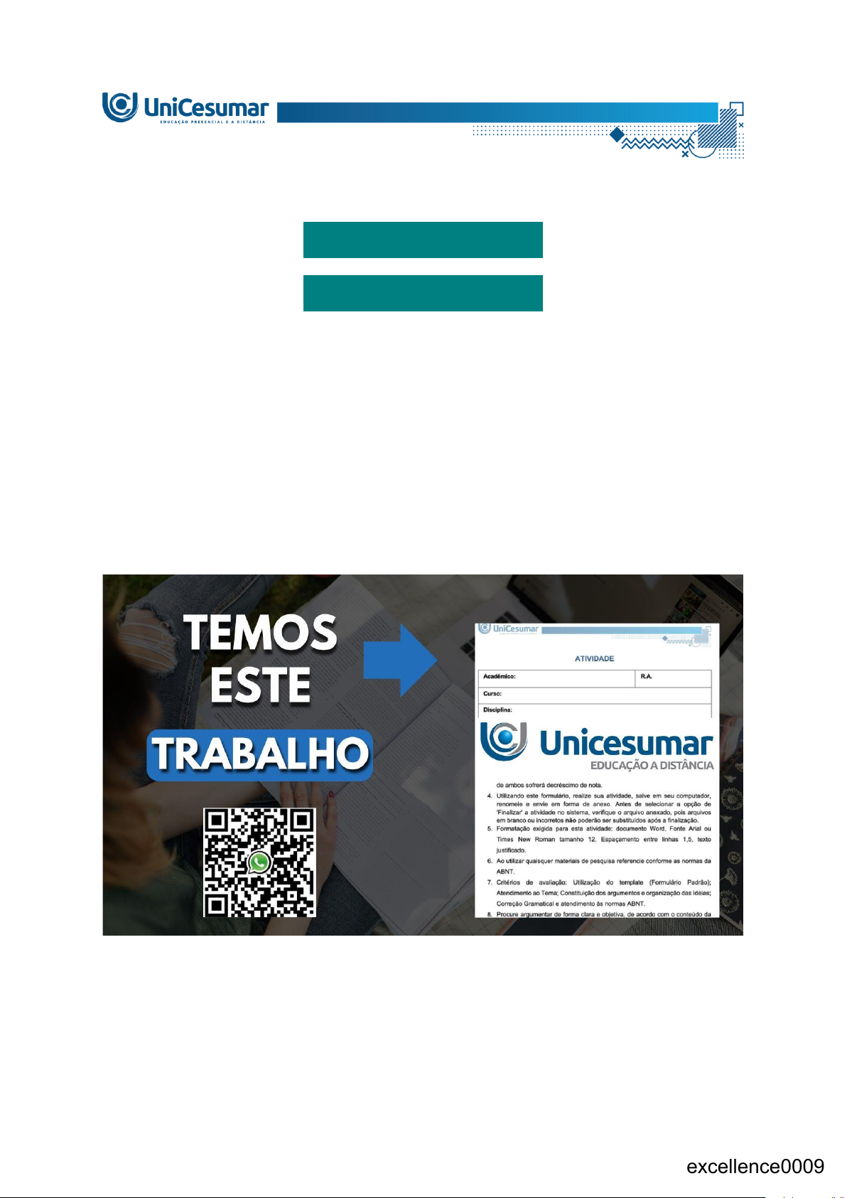 (99) 99119-3171 (99) 99119-3171 Olá!!! Somos da Assessoria Excellence Educacional e iremos te ajudar com este trabalho! Entre em contato conosco! PORTFÓLIO - ENF - EXPERIÊNCIA PROFISSIONAL: SIMULAÇÃO DA ASSISTÊNCIA DE ENFERMAGEM EM CENTRO-CIRÚRGICO E CUIDADOS INTENSIVOS - 54_2025 PORTFÓLIO - ENF - EXPERIÊNCIA PROFISSIONAL: SIMULAÇÃO DA ASSISTÊNCIA DE ENFERMAGEM EM CENTRO-CIRÚRGICO E CUIDADOS INTENSIVOS - 54_2025 excellence0009 • A atividade MAPA busca promover a fixação do aprendizado e estimular "no fazer" as diferentes formas de ampliar o seu repertório científico. O atendimento emergencial para as pessoas pelos profissionais da Enfermagem são pautados em condutas, normas e procedimentos técnicos regulamentos por literatura científica e instituições nacionais e internacionais. O treinamento da população se dá por ações da Educação em Saúde, com instruções para prevenção de agravos e promoção da saúde. Considere os comandos: a) Construir um manequim simulado adaptado com materiais recicláveis para o treinamento da manobras de RCP do Suporte Básico de Vida. Utilize para essa atividade os seguintes materiais: - 1 garrafa PET com tampa. - 1 travesseiro usado. - 1 camiseta usada (cor escura de preferência). - tesoura. - barbante. excellence0009 Passo a passo: Descosturar uma das laterais do travesseiro e expor o enchimento; Inserir a garrafa PET no seu interior, amarrando na parte superior da lateral descosturada. Fixar bem; Costurar a lateral novamente. Vestir o travesseiro com a camiseta usada. Caso tenha dúvidas, pode se embasar no video: https://youtu.be/0o3P3TFoFYs?si=dTHvTCtWyBd25WXB Com o seu manequim confeccionado, a ação a seguir é realizar uma atividade educativa: b) Realizar uma atividade de Educação em Saúde na comunidade (pessoas da família, do trabalho, ou pessoas localizadas em locais públicos como praças, quadras esportivas, centros comunitários) sobre a manobra de reanimação cardiopulmonar utilizando o boneco criado na etapa anterior. . Considere o número mínimo de cinco (05) pessoas. Inserir uma evidência como o registro fotográfico da atividade. Assistir o vídeo explicativo e as orientações do MDD: Atendimentos emergenciais. c) Elaborar um texto dissertativo em até 10 linhas, indicando os benefícios da manobra de reanimação cardiopulmonar para as pessoas leigas e diferenciá-las dos excellence0009 profissionais da saúde. Incluir a responsabilidade do enfermeiro na realização do Suporte Básico de Vida. Atenção! - Utilize o formulário padrão do MAPA. - Construa o manequim simulado e registre. - Inserir uma foto do manequim e da atividade educativa. - Serão desconsideradas imagens ou fotos da internet. - O texto deve ser organizado conforme as normas da ABNT. - Inserir as referências bibliográficas nas normas da ABNT. excellence0009