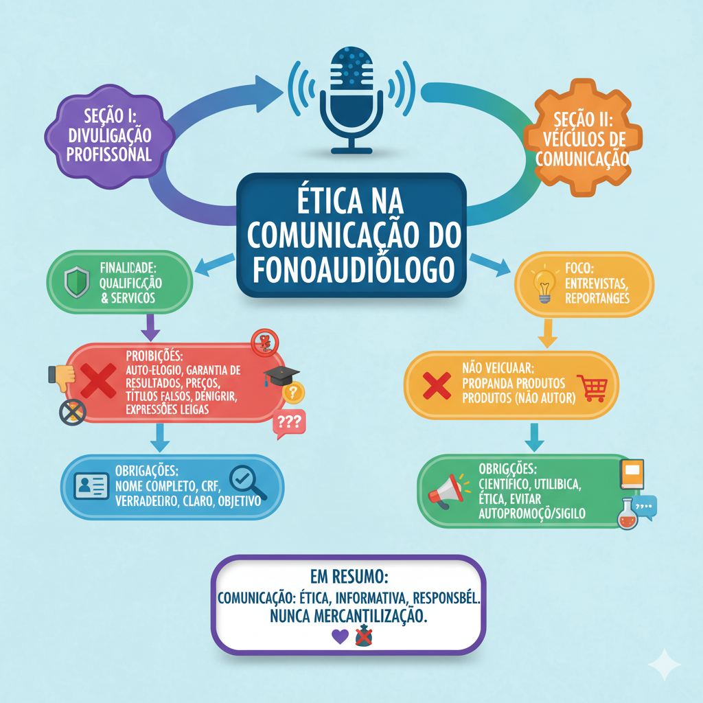 SEÇÃO I: SEÇÃO II: DIVULIGAÇÃO VÉÍCÚLOS DE PROFISSONAL COMUNICAÇÃO ÉTICA NA COMUNICAÇÃO DO FONOAUDIÓLOGO FOCO: QUALIFICAÃO Y ENTREVISTAS, & SERVICOS REPORTANGES PROIBIÇÕES: AUTO-ELOGIO, GARANTIA DE NÃO VEICUAAR: RESULTADOS, PREÇOS, PROPANDA PRODUTOS FALSOS, DENIGRIR, ? PRODUTOS (NÃO AUTOR) EXPRESSÕES LEIGAS ??? OBRIGAÇÕES: OBRIGÇÕES: NOME COMPLETO, CRF, CIENTÍFICO, UTILIBICA, VERRADEORO, CLARO, OBJETIVO ÉTICA, EVITAR AUTOPROMOÇÕ/SIGILO EM RESUMO: COMUNICAÇÃO: ÉTICA, INFORMATIVA, RESPONSBÉL. NUNCA MERCANTILIZAÇÃO.