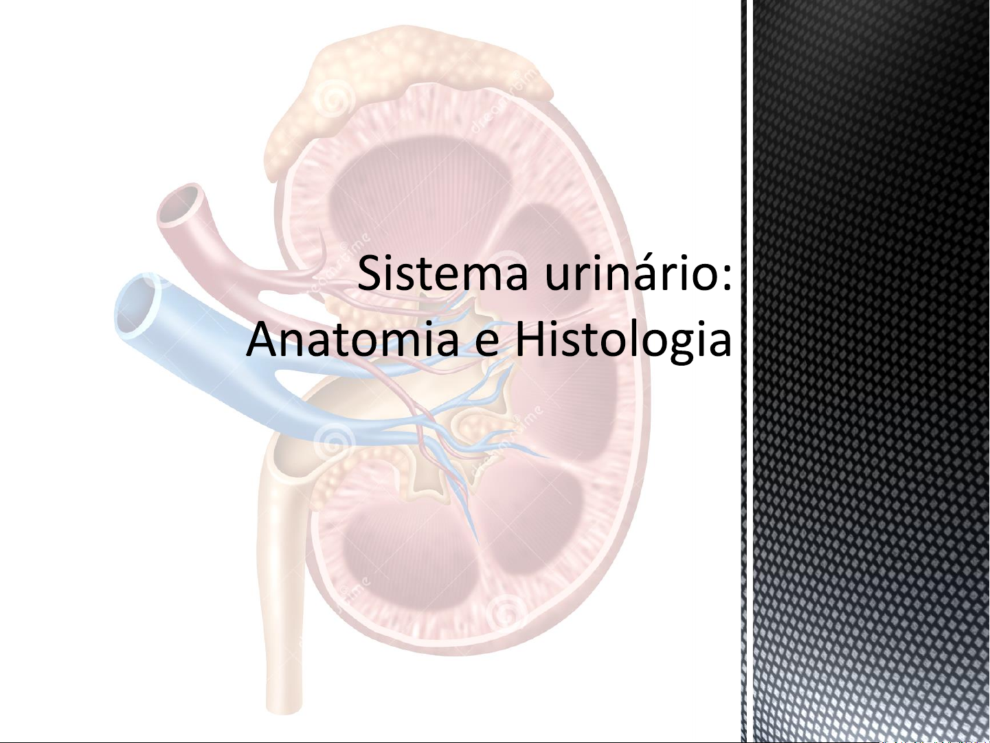 Profª Adriana Alves E-mail: adriana.malves@kroton.com.br Sistema urinário: Anatomia e Histologia ▪2 Rins/ 2 ureteres/ Bexiga/ Uretra ▪ Função – formação da urina ▪ Filtração do sangue ▪ Reabsorção de água e solutos ▪Nefrologia ▪ nefros=rins/ logos=estudo ▪Urologia (uro=urina) ▪ Sist. urinário masculino e feminino ▪ Sist. genital masculino Sistema urinário ➢ Órgãos secretores ➢ Responsáveis pela formação da urina - rins ➢ Órgão excretores ➢ Órgãos associados aos rins, destinados a eliminação da urina: ureteres, bexiga urinária e uretra. Constituição do sistema urinário rins ureteres Bexiga urinária uretra Funções do Sistema urinário ➢Regulação dos níveis de íons no sangue ➢ Na +, K+, Ca+, Cl- ➢Regulação do volume e da pressão sanguínea ➢ Devolve água ao sangue ou elimina através da urina ➢Regulação do pH sanguíneo ➢ Ácido – removem H+ e conservam HCO3 - ➢ Alcalino – removem HCO3 - e conservam H+ ➢Produção de hormônio ➢ Eritropoetina – síntese de eritrócito ➢ Renina – sistema angiotensinogênio-angiotensina ➢ Calcitriol – sintetizado a partir da vit. D – absorção do Ca+ ➢Excreção de resíduo ➢ Creatitina, amônia, uréia (aa), ác. úrico (ac. nucleicos), bilirrubina (hemoglobina), urobilinogênio (cor amarelada)... ➢Ureter ➢Bexiga ➢Uretra Sistema urinário Órgãos excretores ➢ Túbulo muscular que une o rim à bexiga ➢Início - pelve renal (extremidade superior dilatada) ➢Termina na face postero-lateral da bexiga pelo óstio ureteral ➢Óstios dos ureteres ➢Pregas da mucosa da bexiga semelhantes a Válvulas ➢Auxiliam na prevenção do refluxo de urina Sistema urinário Ureter ➢ Órgão oco muscular, elástico ➢ Situada no assoalho da cavidade da pelve ➢ Homens situa-se diretamente anterior ao reto ➢ Mulheres está à frente da vagina e abaixo do útero Sistema urinário Bexiga Bexiga Uretra Pequenos lábios Grandes lábios Vagina Útero Ureter Cólon Sacro Bexiga Uretra Pênis Testículo Sistema urinário Bexiga ➢Reservatório temporário para o armazenamento de urina ➢ Quando cheia - formato esférico (700-800ml) ➢ Quando vazia - formato assemelha-se a uma pirâmide invertida ➢ Internamente, apresenta três orifícios: óstios do ureter (D e E) e o óstio da uretra - área triangular trígono da bexiga Trígono da bexiga Óstio da bexiga Corpo da bexiga Peritônio Fundo da bexiga Colo da bexiga Óstio do ureter esquerdo Músculo esfíncter da uretra ➢ A saída da bexiga urinária contém o músculo esfíncter chamada esfíncter interno da uretra - involuntário, prevenindo o esvaziamento ➢ Abaixo do esfíncter interno, envolvendo a parte superior da uretra, está o esfíncter externo da uretra – voluntário Sistema urinário Bexiga-uretra Histologia da Bexiga ➢Reflexo de Micção ➢ Volume de urina pressão na bexiga impulso nervoso à medula contração no musc. detrussor Início da micção relaxamento do esfíncter interno da uretra relaxamento do esfíncter externo (inibe neurônios motores somáticos) Sistema urinário Incontinência urinária –▪ Complicações ▪ Aumenta a possibilidade de insuficiência renal ▪ Urina com espumas e inchaço Principais doenças do Trato urinário (ITU) ▪Cálculo renal ou Litíase ou Urolitíase ▪ Depósito de sais minerais nos rins (oxalato de cálcio, fósforo, ácido úrico). ▪ Causa ▪ Deficiência genética na excreção dos sais. ▪ Dieta rica em sais – leite e derivados. ▪ Pouca ingestão de líquido ▪ Infecções urinárias ▪ Obstrução das vias urinárias ▪ Hiperparatiroidismo ▪ Tratamento ▪ Cirurgia ▪ Litotripsia – tratamento não invasivo que quebra as pedras renais. Principais doenças do Trato urinário (ITU) ▪Enurese ▪ Micção involuntária durante o sono que afeta crianças até o 5 anos e idosos, normalmente noturna ▪ Origem ▪ Hereditariedade ▪ Insuficiência da vasopressina ▪ Subdesenvolvimento do diafragma pélvico ▪Estenose ▪ Estreitamento das estruturas tubulares ▪ Afeta o ureter e a uretra ▪ Causas ▪ Colesterol, traumatismos após exames, infecções mal cicatrizadas ▪ Complicações ▪ Dificuldade de micção ▪ Pode originar doenças mais graves Principais doenças do Trato urinário (ITU) ▪Multiplicação bacteriana em qualquer segmento do aparelho urinário ▪Prevalência de 5% ▪Mais comum em raça branca e em crianças de 3 – 4 anos ▪Mais comum no sexo feminino ▪ Maior proximidade da uretra com o ânus; Ato de limpar-se de trás pra frente ▪ Menor comprimento da uretra ▪ Uso de roupas apertadas ▪As infecções geralmente ocorrem por via ascendente ▪ Fatores de risco ▪ Infecções diversas; Predisposição genética ▪ Uso abusivo de exames por sondas ▪ Pedras nos rins Infeção do Trato urinário (ITU) ▪ Cistite ▪ Infecção bacteriana aguda da bexiga ▪ Sintomas: disúria, polaciúria, urgência miccional, sensação de esvaziamento incompleto, hematúria e dor pélvica ▪Pielonefrite ▪ Infecção bacteriana aguda dos rins ▪ Sintomas: disúria, polaciúria, dor lombar, febre e calafrios, náuseas e vômitos ▪Qual a importância de um tratamento com urgência da ITU? ▪ Risco de disseminação da infecção dentro do organismo - septicemia Infeção do Trato urinário (ITU) ▪Uma pessoa com dor intensa na região abdominal e nas costas, com náuseas e oscilação de pressão arterial, procura o atendimento médico. Após realização de exames, foi identificada a presença de cálculo renal no ureter direito. ▪Como a pedra nos rins ou cálculo renal apresenta um diâmetro que não consegue ser expelido pela uretra através da urina, isto levou o paciente a ter uma infecção renal. Situação-problema ▪Quais as recomendações iniciais para melhorar o quadro clínico do paciente? ▪Com base nestas informações, justifique o porquê da necessidade de se realizar