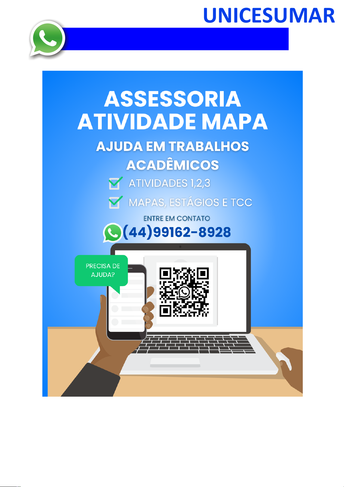 RESPOSTA- (44) 99162-8928 MAPA - DESENHO TÉCNICO - 54_2025 M.A.P.A. - DESENHO TÉCNICO UNICESUMAR RESPOSTA- (44) 99162-8928 Da Representação Bidimensional à Visualização Tridimensional Olá, estudante! Seja bem-vindo à nossa atividade M.A.P.A. da disciplina de Desenho Técnico. O objetivo dessa atividade é colocar em prática as habilidades fundamentais de um desenhista e projetista, executando tarefas que são a base para qualquer projeto de engenharia. A atividade está dividida em três etapas sequenciais: As suas principais tarefas nesse M.A.P.A. serão: - Etapa 1: preparar duas pranchas de desenho normalizadas em formato A4, uma em paisagem e outra em retrato. - Etapa 2: interpretar uma perspectiva isométrica e, a partir dela, desenhar as três vistas ortogonais com cotagem completa na prancha paisagem. - Etapa 3: analisar um conjunto de vistas ortogonais e, a partir delas, construir a perspectiva isométrica na prancha retrato. Bom trabalho! INSTRUÇÕES DE ENTREGA Este é um trabalho INDIVIDUAL . As respostas devem ser entregues utilizando o Modelo de Resposta MAPA disponibilizado. Sobre o seu preenchimento, é necessário o cumprimento das seguintes diretrizes: UNICESUMAR RESPOSTA- (44) 99162-8928 Não serão aceitas respostas que contenham apenas o resultado numérico, sem que seja demonstrado o raciocínio que levou àquela resposta. Toda e qualquer fonte ou referência (se necessário) utilizada para responder aos questionários deve ser citada ao final da questão. Após inteiramente respondido, o Modelo de Resposta MAPA deve ser enviado para correção pelo seu Studeo em formato de arquivo DOC / DOCX ou PDF , e apenas estes formatos serão aceitos. O Modelo de Resposta MAPA pode ter quantas páginas forem necessárias, desde que siga a sua estrutura. O Modelo de Resposta MAPA deve ser enviado única e exclusivamente pelo seu Studeo, no campo "M.A.P.A." desta disciplina. Toda e qualquer outra forma de entrega não será considerada. A qualidade do trabalho será considerada na avaliação, então preencha tudo com cuidado, explique o que está fazendo, responda às perguntas e mostre sempre o passo a passo das resoluções e deduções. Quanto mais completo for seu trabalho, melhor! Problemas frequentes a evitar: Coloque um nome simples no arquivo para não se confundir no momento de envio. Se você usa Open Office ou Mac , transforme o arquivo em PDF para evitar incompatibilidades. UNICESUMAR RESPOSTA- (44) 99162-8928 Verifique se está enviando o arquivo correto! É o MAPA da disciplina certa? Ele está preenchido adequadamente? Como enviar o arquivo: Acesse no Studeo o ambiente da disciplina e clique no botão M.A.P.A. No final da página, há uma caixa tracejada de envio de arquivo. Basta clicar nela e selecionar o arquivo de resposta da sua atividade. Antes de clicar em FINALIZAR , certifique-se de que está tudo certo, pois, uma vez finalizado, você não poderá mais modificar o arquivo. Sugerimos que faça o download do link gerado para conferir se está conforme o arquivo entregue. Lembre-se de que, uma vez enviada, a atividade não poderá ser substituída nem ter o arquivo alterado. Além disso, a data de entrega é improrrogável . Sobre plágio e outras regras: Trabalhos copiados da internet ou de outros alunos serão zerados. Trabalhos copiados de anos anteriores também serão zerados, mesmo que você tenha sido o autor. A equipe de mediação está à sua disposição para atendimento de dúvidas por meio do “Fale com o Mediador” no seu Studeo. Aproveite essa ferramenta! VOCÊ ESTÁ PREPARADO? UNICESUMAR RESPOSTA- (44) 99162-8928 Nessa atividade, você será desafiado a executar o fluxo de trabalho essencial de um projetista. Como vimos em nosso material, o Desenho Técnico é uma linguagem gráfica que "permite que as ideias concebidas por alguém sejam executadas por terceiros". Para que essa linguagem funcione, ela precisa de padronização, precisão e, acima de tudo, da sua capacidade de transitar entre a visualização de um objeto em três dimensões (perspectiva) e sua representação detalhada em duas dimensões (vistas ortogonais). Dominar a criação de pranchas, a projeção de vistas e a construção de perspectivas a partir de informações 2D são competências que formam o alicerce da sua atuação como futuro engenheiro, capacitando-o a ler, interpretar e criar projetos com clareza e segurança. Você está pronto? Vamos lá! ETAPA 1: Preparação das Pranchas de Desenho Antes de qualquer projeto tomar forma, o desenhista precisa preparar sua área de trabalho: a prancha. A padronização do formato da folha, das margens e da legenda (ou carimbo) é o primeiro passo para garantir a organização e a comunicação eficaz das informações técnicas. Atividade da ETAPA 1: sua tarefa é preparar as duas pranchas-base que serão utilizadas nas etapas seguintes. Prancha 1 (Paisagem): em uma folha de papel A4 (297 x 210 mm), prepare a prancha na posição paisagem. Desenhe a margem de 25 mm à esquerda e 7 mm nas demais bordas. Em seguida, desenhe a legenda (carimbo) no canto inferior UNICESUMAR RESPOSTA- (44) 99162-8928 direito, seguindo exatamente as dimensões e divisões apresentadas na Figura 2 da página 51 do livro da disciplina. Deixe a legenda em branco por enquanto. Prancha 2 (Retrato): em outra folha de papel A4 (210 x 297 mm), prepare a prancha na posição retrato. Desenhe as margens e a legenda (carimbo) seguindo as mesmas especificações da Prancha 1. Deixe a legenda em branco. ETAPA 2: Da Perspectiva para as Vistas Ortogonais A interpretação de um modelo tridimensional e sua "tradução" para as vistas ortogonais (projeções em 2D) é uma tarefa diária no mundo da engenharia. Esse processo permite analisar e dimensionar cada face do objeto de forma clara e precisa, sendo fundamental para a sua fabricação. Atividade da ETAPA 2: Utilizando a Prancha 1 (paisagem) que você criou, sua tarefa é desenhar as três vista