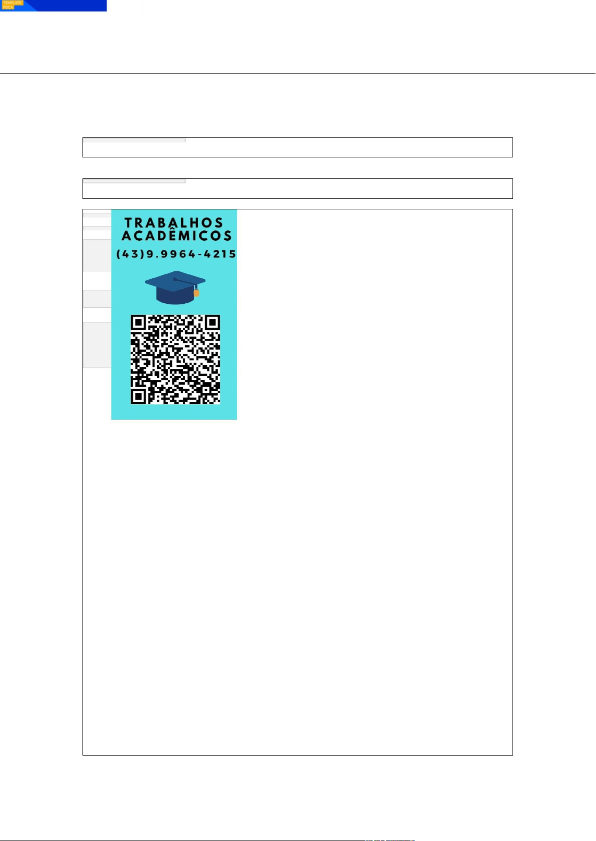 ALUNO: CURSO: CST EM LOGÍSTICA COMPONENTE CURRICULAR: PROJETO DE EXTENSÃO II - LOGÍSTICA PROGRAMA DE EXTENSÃO: PROGRAMA DE INOVAÇÃO E EMPREENDEDORISMO. FINALIDADE E MOTIVAÇÃO: Orientada pelo Programa de Inovação e Empreendedorismo, a extensão universitária do CST em Logís possibilita que sejam oferecidas contribuições à solução de problemas diversificados, presentes no contexto social, e ao desenvolvimento local ou regional, sendo que a inovação e o empreendedorismo impactam na economia e na produ dos negócios, dessa forma, levando à criação do novo saber e do desenvolvimento de competências e soft skills específica. As ações poderão ser realizadas em locais diversos, como: Micro e Pequena Empresa, Estabelecimento de Microempreendedor (MEI), Associação de Bairro, Associação Comercial, Escola, Sebrae, Porto, Associação de Transporte Rodo Ferroviário e Aéreo. COMPETÊNCIAS: I - Estabelecer processos de compras, de iden e de desenvolvimento de fornecedores, além de negociar padrões de recebimento e expedição; II - Gerenciar a cadeia de suprimentos por meio da integração entre fornecedores e clientes; III - Implantar soluções para o e para racionalizar os processos logís PERFIL DE EGRESSO: A IES idealizou um perfil do egresso para o CST em Logís do profissional que tenha como valores e pressupostos essenciais um perfil generalista, crí reflexivo, proposi humanís e dinâmico, apto a agir diagnos os ambientes externo e interno, para a tomada de decisão e do estabelecimento de estratégias e obj a fim de inves inovações e implementá-las nos processos estruturados e, atuando postura socialmente responsável, sendo que, pelas a extensionistas vinculadas ao Programa de Inovação e Empreendedorismo, esse egresso poderá desenvolver habilidades, com domínio cien e intelectual, com capacidade para empreender no negócio e na sua carreira, conduzir a do processo gerencial e aquelas referentes à que permite a formação compreensão da realidade social, cultural e econômica do meio em que está inserido, contribuindo com a promoção da transformação da realidade e do desenvolvimento da inovação, do emprego e dos negócios. 1 Público SOFT SKILLS (COMPETÊNCIAS SOCIOEMOCIONAIS): Planejamento e organização Inteligência Emocional Tomada de Decisão OBJETIVOS DE APRENDIZAGEM: Proporcionar a geração do novo conhecimento, originado da aplicação da aprendizagem mul inovação local e, consequentemente, a contribuição com o desenvolvimento econômico e social do local e da região, é o principal obj da extensão universitária vinculada ao Programa de Inovação e Empreendedorismo. do curso em bene do empreendedorismo e da do CST em Logís CONTEÚDOS: I - Fundamentos de logís II - Empreendedorismo e inovação; III - Gestão da cadeia de suprimentos. INDICAÇÕES BIBLIOGRÁFICAS: ALMEIDA, Eder Gonçalves de; ALEIXO, Tayra Carolina Nascimento. Empreededorismo e inovação. Londrina: Editora e Distribuidora Educacional S.A., 2020. FERREIRA, Leonardo; et al. Gerenciamento da cadeia de suprimentos. Londrina : Editora e Distribuidora Educacional S.A., 2016. FERREIRA, Leandro et al. Processos logís Educacional S.A., 2016. Londrina: Editora e Distribuidora TEMPLATE PDCA Aluno e Aluna, essa a um documento orienta é para sua organização e uso da metodologia PDCA. Por isso é e não precisa ser entregue. Veja as orientações apresentadas no MANUAL DE ATIVIDADES EXTENSIONISTAS. 1. PLANEJAMENTO (PLAN) Antes de definir sua proposta, explore os Obje Organização das Nações Unidas (ONU) no link h baixar o documento pelo link h br.pdf. de Desenvolvimento Sustentável (ODS) da -br/sdgs. Se preferir, pode -09/agenda2030-pt- Compreenda a proposta da ONU e engaje-se nessa oportunidade de contribuir com as metas de um organismo internacional tão importante ao mesmo tempo em que par soluções de seu contexto! Analise os 17 obje projeto. Para isso, clique no ícone de cada obje em cada um. É necessário que você escolha pelo menos uma meta. Pode ser que você encontre metas aderentes à sua proposta em diferentes obje mas não se restrinja. escolha quais metas podem ser aderentes à sua proposta e ao seu e observe a listagem de metas disponível Pode escolher dessa forma e mantenha o foco da essência de sua proposta. 2 Público Feito isso, liste aqui suas escolhas. Essa informação também deverá ser declarada em seu Relatório Final de A Extensionistas. LISTAR METAS DOS ODS ADERENTES AO SEU PROJETO DEFINA A PROPOSTA. IMERSÃO: DEFINA OS ITENS DA IMERSÃO Segue sugestão de perguntas para u na entrevista com o parceiro. SUGESTÃO DE SCRIPT DE ENTREVISTA 1. Quais os principais problemas, fragilidades ou dificuldades que a ins convive com maior frequência? 1 1 1 .1. Os problemas estão a com o programa/conteúdo proposto no componente curricular? Se não es será necessário voltar à pergunta 1. .2. É possível resolver ou mi extensão. os problemas iden no prazo de duração de projeto de Se não for possível deve voltar à pergunta 1. .3. A solução ou mi auxiliará a comunidade ou um grupo de pessoas da comunidade? Se não auxiliar deve voltar à pergunta 1. 2. Quais serão as pessoas envolvidas na ação para buscar resolver ou mi iden os problemas 3. 4. 5. 6. 7. 8. Onde será realizada a ação? Há limitação de pessoas ou restrição para acesso ao local indicado? Quais serão as pessoas beneficiadas diretamente? Necessitará de insumos/recursos financeiros para a realização da ação? Será necessário agendamento? Qual o período, dia da semana, horário que será realizada a ação? IDEAÇÃO: DEFINA OS ITENS DA IDEAÇÃO. PROTOTIPAÇÃO: DEFINA OS ITENS DA PROTOTIPAÇÃO. 3 Público IDEIAS E ANOTAÇÕES: 2. REALIZAÇÃO (DO) CRONOGRAMA: ATIVIDADES PER. 1 PER. 2 PER. 3 PER.4 3. VERIFICAÇÃO (CHECK) Planejamento: Imersão realizada? () SIM () NÃO Ideação realizada? () SIM () NÃO Prot realizada? () SIM () NÃO Planejamento est