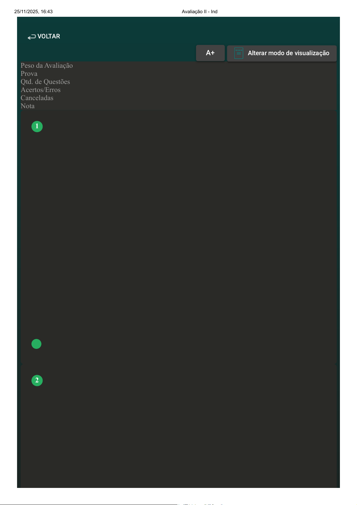Prova Impressa GABARITO | Avaliação II - Individual (Cod.:1523421) Peso da Avaliação 2,00 Prova 104900677 Qtd. de Questões 10 Acertos/Erros 9/0 Canceladas 1 Nota 10,00 O ano de 2020 nos surpreendeu com o vírus que está tendo um impacto mundial, causando uma pandemia mundial. O Coronavírus até então não possui uma vacina eficaz, e a comunidade científica está em uma corrida para obter essa vacina. Sobre resposta imunológica e memória imunológica, observe o relato: "Em um experimento, um camundongo recebeu pela primeira vez uma dose uma toxina bacteriana e após manifestou a resposta imunológica, produzindo anticorpos contra essa toxina (antitoxina). Após um determinado tempo, será aplicada uma segunda dose dessa toxina no animal. Acerca do exposto, analise as sentenças a seguir: I- Espera-se que o camundongo demore mais tempo para produzir os anticorpos (antitoxina). II- Espera-se que o camundongo produza a antitoxina mais rapidamente, em razão da memória imunológica. III- Podemos caracterizar como memória imunológica quando um antígeno entra em contato novamente com um organismo, ocorre a produção mais rápida de novos anticorpos contra esse antígeno. IV- Espera-se que o camundongo produza uma menor quantidade de anticorpos (antitoxina). Assinale a alternativa CORRETA: A As sentenças I e II estão corretas. B As sentenças III e IV estão corretas. C As sentenças I e IV estão corretas. D As sentenças II e III estão corretas. As reações de antígeno e anticorpos são altamente específicas. Devido à grande especificidade, as reações entre antígenos e anticorpos são apropriadas para a identificação de um deles e pelo uso de outro. Esta é a base das reações sorológicas. Os testes sorológicos têm uma grande importância na patologia clínica. Sobre a pesquisa de antígenos e anticorpos, analise as sentenças a seguir: I- A pesquisa dos anticorpos é importante no diagnóstico diferencial, onde através da detecção das diferentes classes de imunoglobulinas pode-se diferenciar a fase da doença. II- O diagnóstico de uma doença congênita é baseado na presença de IgG no soro do recém-nascido. III- A pesquisa dos anticorpos pode ser usada como avaliação do prognóstico de doenças. IV- A pesquisa de antígenos no soro do paciente pode ser utilizada como critério de cura, avaliando a presença ou a ausência do patógeno. V- A pesquisa de anticorpos pode ser usada em Inquéritos epidemiológicos, podendo estabelecer a prevalência de uma doença, através da pesquisa do anticorpo IgM. VOLTAR A+ Alterar modo de visualização 1 2 25/11/2025, 16:43 Avaliação II - Individual about:blank 1/6 Assinale a alternativa CORRETA: A As sentenças I e II estão corretas. B As sentenças II, III e IV estão corretas. C As sentenças II e IV estão corretas. D As sentenças I, III e IV estão corretas. A ativação de células T gera células de memória que duram anos e que estão sempre preparadas para reagir rapidamente contra aquele antígeno específico caso ele seja reintroduzido no organismo. Com relação ao padrão de migração e localização tecidual das diferentes populações linfocitárias, classifique V para as sentenças verdadeiras e F para as falsas: ( ) Linfócitos T efetores migram e localizam-se em determinados locais teciduais/inflamatórios, enquanto os Linfócitos T virgens circulam entre os órgãos linfoides secundários até encontrarem um antígeno ou morrerem. ( ) Linfócitos T efetores migram e localizam-se nos órgãos linfoides primários, enquanto linfócitos T virgens circulam entre os órgãos linfoides secundários até encontrarem um antígeno ou morrerem. ( ) Linfócitos T virgens migram e localizam-se em determinados teciduais/inflamatórios, enquanto linfócitos T efetores e de memória circulam entre os órgãos linfoides primários até encontrarem um antígeno ou morrerem. Assinale a alternativa que apresenta a sequência CORRETA: A V - V - F. B V - V - V. C V - F - F. D F - V - V. O sistema inato é capaz de reconhecer estruturas moleculares que são produzidas pelos patógenos microbianos, ao qual podemos chamar de "padrões moleculares associados aos patógenos" (PAMPs) e "padrões moleculares associados ao dano" (DAMPs). Você deve se perguntar como o sistema imune inato é capaz de reconhecer essas substâncias PAMPs e DAMPs. Esse reconhecimento é graças aos vários tipos de receptores celulares, presentes em diferentes localizações nas células, e moléculas solúveis no sangue e secreções mucosas, que são capazes de reconhecer os PAMPs e DAMPs. Com relação ao sistema imune inato, classifique V para as sentenças verdadeiras e F para as falsas: ( ) Imunidade inata representa uma resposta tardia e estereotipada a um número grande, mas limitado, de estímulos. ( ) Moléculas, tais como lipopolissacarídeos, resíduos de manose e ácidos teicoicos, são consideradas Padrões moleculares Associados a patógenos (PAMPS) e ativam a resposta imune inata, por interação de receptores de reconhecimentos padrões. ( ) As principais características da Imunidade inata são: especificidade e diversidade de reconhecimento, memória, especialização da resposta, autolimitação e tolerância a componentes 3 4 25/11/2025, 16:43 Avaliação II - Individual about:blank 2/6 próprios. ( ) Os receptores que reconhecem os PAMPs recebem o nome de "receptores de reconhecimento padrão" (PRRs), eles atuam na opsonização e ativação do sistema complemento, induzem a resposta inflamatória e ativam a fagocitose. Assinale a alternativa que apresenta a sequência CORRETA: A F - V - V - F. B F - V - F - V. C V - F - F - V. D V - V - F - F. Existem três vias do sistema complemento: a via clássica, a via das lectinas e a via alternativa. O sistema complemento faz parte da resposta imune inata e adaptativa, ou seja, ele pode ser ativado por microrganismos/patógenos ou por anticorpos. A forma como o sistema compleme