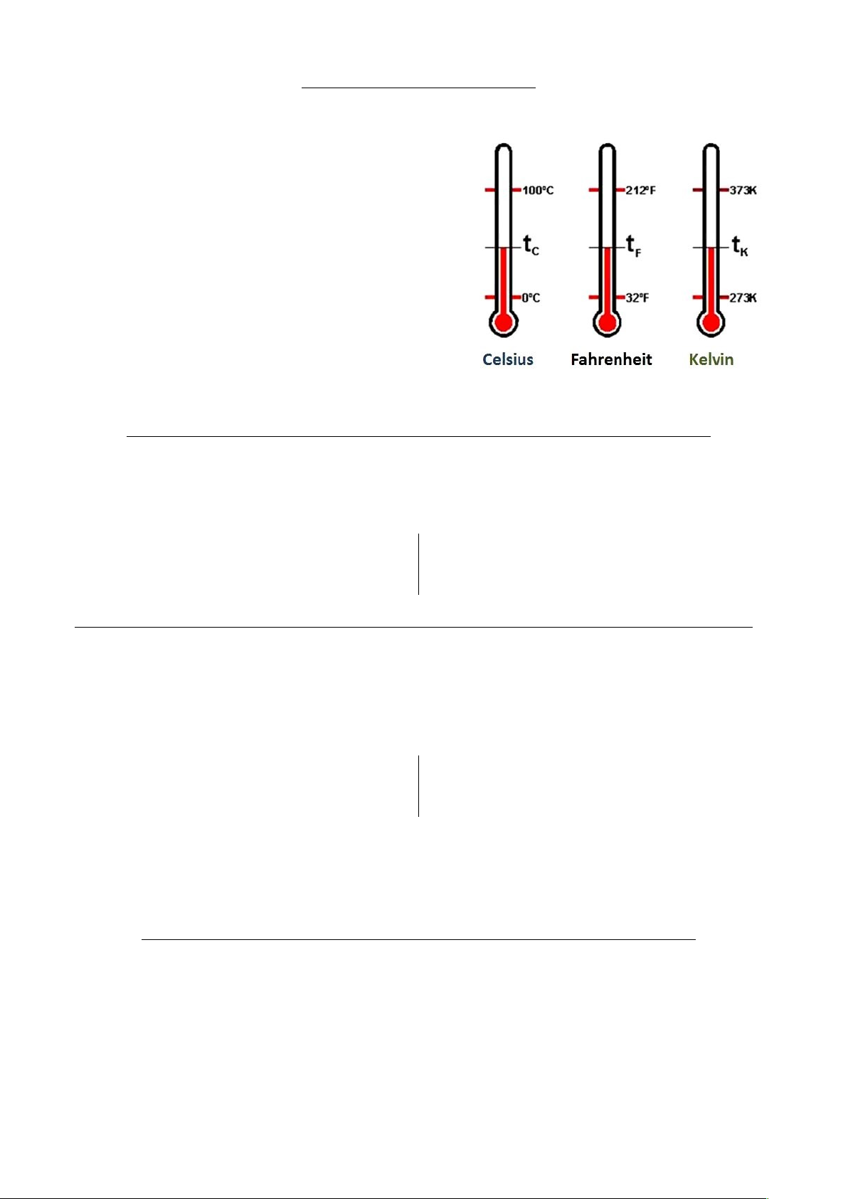 ESCALAS TERMOMÉTRICAS AS ESCALAS TERMOMÉTRICAS SÃO UTILIZADAS PARA MEDIR A TEMPERATURA. ELAS SÃO UTILIZADAS PARA INDICAR SE UM DETERMINADO CORPO ESTÁ QUENTE OU FRIO. SÃO UTILIZADAS NOS DIAS ATUAIS: CELSIUS, FAHRENHEIT E KELVIN. ESSAS ESCALAS UTILIZAM COMO PADRÃO OS PONTOS DE FUSÃO E EBULIÇÃO DA ÁGUA. ESCALA CELSIUS – ( °C ) CRIADA POR ANDERS CELSIUS EM 1742→ É UMA ESCALA TERMOMÉTRICA CENTÍGRADA, OU SEJA, QUE APRESENTA CEM INTERVALOS ENTRE OS PONTOS DE FUSÃO E EBULIÇÃO. PONTO DE FUSÃO DA ÁGUA = 0° C PONTO DE EBULIÇÃO DA ÁGUA = 100° C ESCALA FAHRENHEIT – ( °F ) CRIADA POR DANIEL G. FAHRENHEIT EM 1724→ NA SUA ESCALA, FAHRENHEIT UTILIZOU COMO REFERÊNCIA OS VALORES DOS PONTOS DE FUSÃO E EBULIÇÃO DA ÁGUA, PARA OS QUAIS ELE ADOTOU OS SEGUINTES VALORES: PONTO DE FUSÃO DA ÁGUA = 32° F PONTO DE EBULIÇÃO DA ÁGUA = 212° F COMO TEMOS 180 INTERVALOS ENTRE AS TEMPERATURAS 32 E 212, A ESCALA FAHRENHEIT NÃO É CONSIDERADA CENTÍGRADA, COMO É A ESCALA CELSIUS. MUITO UTILIZADA HOJE EM PAÍSES COMO INGLATERRA E ESTADOS UNIDOS. ESCALA KELVIN – ( °K) – CRIADA POR LORD KELVIN EM 1864→ A ESCALA KELVIN É CHAMADA DE "ESCALA ABSOLUTA" POIS TEM COMO PONTO DE REFERÊNCIA O ZERO ABSOLUTO. ELA GERALMENTE É USADA NA PESQUISA CIENTÍFICA E EM CASOS ESPECÍFICOS QUE NECESSITAM DE UMA ESCALA ABSOLUTA DE TEMPERATURA. LORD KELVINUTILIZOU COMO REFERÊNCIA OS SEGUINTES PONTOS DE FUSÃO E EBULIÇÃO DA ÁGUA: PONTO DE FUSÃO DA ÁGUA = 273° K PONTO DE EBULIÇÃO DA ÁGUA = 373° K COMO CONVERTER UMA ESCALA TERMOMÉTRICA EM OUTRA→ COMO AS TRÊS ESCALAS TERMOMÉTRICAS SÃO UTILIZADAS EM LUGARES DIFERENTES, É INTERESSANTE SABER A FORMA DE CONVERTER UMA EM OUTRA. PARA ISSO, BASTA UTILIZAR A SEGUINTE RELAÇÃO: CONVERTER CELSIUS PARA KELVIN CONVERTER KELVIN EM CELSIUS CONVERTER CELSIUS EM FAHRENHEIT OU VICE-VERSA CONVERTER KELVIN EM FAHRENHEIT OU VICE-VERSA EXERCICIOS: 1º) TRANSFORMAR 150° K PARA A ESCALA CELSIUS TC = TK - 273 TC = _____________ TC = _____________ 2º) TRANSFORMAR 40° C PARA A ESCALA FAHRENHEIT: EXERCICIOS: 1º) QUANDO SE DESEJA REALIZAR EXPERIMENTOS A BAIXAS TEMPERATURAS, É MUITO COMUM A UTILIZAÇÃO DE NITROGÊNIO LÍQUIDO COMO REFRIGERANTE, POIS SEU PONTO NORMAL DE EBULIÇÃO É DE - 196 ºC. NA ESCALA KELVIN, ESTA TEMPERATURA VALE: TK=TC + 273 a) 77 K b) 100 K c) 196 K 2) UM TERMÔMETRO DIGITAL, LOCALIZADO EM UMA PRAÇA NA INGLATERRA, MARCA A TEMPERATURA DE 10,4 . ESSA TEMPERATURA, NA ESCALA CELSIUS, SERÁ:℉ a) – 5 ℃ b) – 10 ℃ c) – 12 ℃ 3) MARIA USOU UM LIVRO DE RECEITAS PARA FAZER UM BOLO DE FUBÁ. MAS, AO FAZER A TRADUÇÃO DO LIVRO DO INGLÊS PARA O PORTUGUÊS, A TEMPERATURA PERMANECEU EM FAHRENHEIT ( ). A RECEITA DISSE QUE O BOLO DEVE SER LEVADO℉ AO FORNO A 392 E PERMANECER NESSA TEMPERATURA POR 30 MINUTOS. QUAL É℉ A TEMPERATURA EM GRAUS CELSIUS QUE MARIA DEVE DEIXAR O FORNO PARA NÃO ERRAR A RECEITA? CONVERTER CELSIUS PARA KELVIN CONVERTER KELVIN EM CELSIUS CONVERTER CELSIUS EM FAHRENHEIT OU VICE-VERSA CONVERTER KELVIN EM FAHRENHEIT OU VICE-VERSA