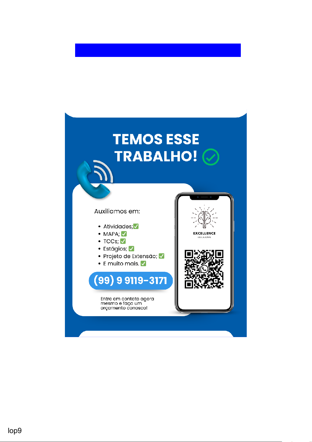 RESPOSTA: (99) 99119 - 3171 MAPA - ENF - PARASITOLOGIA - 54_2025 MAPA - ENF - PARASITOLOGIA - 54_2025 • Olá aluno (a), seja bem-vindo a atividade MAPA (Material de Avaliação Prática de Aprendizagem) desta disciplina! CONTEXTUALIZAÇÃO: “Uma pesquisa da Universidade Federal da Paraíba (UFPB) identificou contaminação do solo com presença de parasitos em 04 praças públicas da cidade de João Pessoa (...) lop9 Os pesquisadores retiraram amostras dos solos que foram analisadas no Laboratório de Parasitologia do Departamento de Fisiologia e Patologia da UFPB, por meio da utilização de três métodos laboratoriais para investigação e identificação microscópica (Método de Hoffman, Pons e Janer; Método de Rugai, Mattos e Brisola e Método de Faust). Nas 04 praças públicas de João Pessoa foram encontrados ovos de helmintos Ancilostomídeos, (parasitos do intestino delgado, ou parasitas como mais popularmente são conhecidos) e Toxocara canis (parasitos de cães que podem infectar humanos), que representaram 57,1% e 21,4%, respectivamente, do total de amostras de solo contaminadas. Já as espécies de larvas encontradas foram o equivalente a 50% de Ancilostomídeos (causadores da ancilostomíase) e 71,4% de Strongyloides stercoralis (causador da estrongiloidíase). Os pesquisadores esclarecem que a presença de formas evolutivas parasitárias de protozoários e helmintos no solo de ambientes públicos resulta em um grave problema de saúde pública. As espécies parasitárias encontradas podem ocasionar a incidência de zoonoses que são doenças infecciosas transmitidas entre os animais e seres humanos, tais como a Estrongiloidíase, Larva migrans cutânea (Bicho geográfico) e Toxocaríase. Essas parasitoses podem ocasionar dor abdominal, náuseas, vômitos, diarreia, anemia, febre, perda de peso, cansaço, bem como coceira e lesões na pele (...). “ Fonte: https://www.ufpb.br/ufpb/contents/noticias/risco-a-saude-pesquisa-da-ufpb- identifica-presenca-de-parasitos-em-solos-de-pracas-publicas-de-joao-pessoa O QUE DEVO FAZER NESTA ATIVIDADE? Com base nessas informações, você deve elaborar um post para o instagram destacando informações importantes sobre UMA das patologias mencionadas na reportagem acima. Não é necessário fazer a postagem, somente elaborar o post. Siga os comandos abaixo para criar seu post: 1- ESCOLHA uma das patologias: Estrongiloidíase, Larva migrans cutânea (Bicho geográfico) OU Toxocaríase. 2- ESCREVA um texto com no máximo 800 caracteres destacando a importância da parasitose escolhida. 3- INSIRA, de 4 a 6 imagens. 4- INCLUA: - O nome do parasito da patologia escolhida; - As principais formas de transmissão e o ciclo biológico; - Sinais e sintomas relacionados; - Medidas de prevenção; - O que a população deve fazer caso apresentar os sintomas dessa patologia. Instruções: - Use e abuse da criatividade! - Você pode utilizar ferramentas como PowerPoint e Canva para elaborar as imagens a serem postadas no instagram. - Utilize o Formulário Padrão MAPA para realizar esta atividade. Ele se encontra na pasta "Material da Disciplina". Siga todas as instruções constantes nesse modelo. - Além do material da disciplina, você pode utilizar as referências abaixo para auxiliar na sua resposta: FEREIRA, M. U. Parasitologia Contemporânea. 2. ed. [S. l.]: Grupo GEN, 2020. NEVES, D. P. et al. Parasitologia Humana. 14. ed. [S. l.]: Atheneu, 2022. REY, L. Bases da Parasitologia Médica. 3. ed. Rio de Janeiro: Guanabara Koogan, lop9 2009. REY, L. Parasitologia. 4. ed. [S. l.]: Grupo GEN, 2008. ZEIBIG, E. Parasitologia Clínica: uma abordagem clínico-laboratorial. 2. ed. [S. lop9