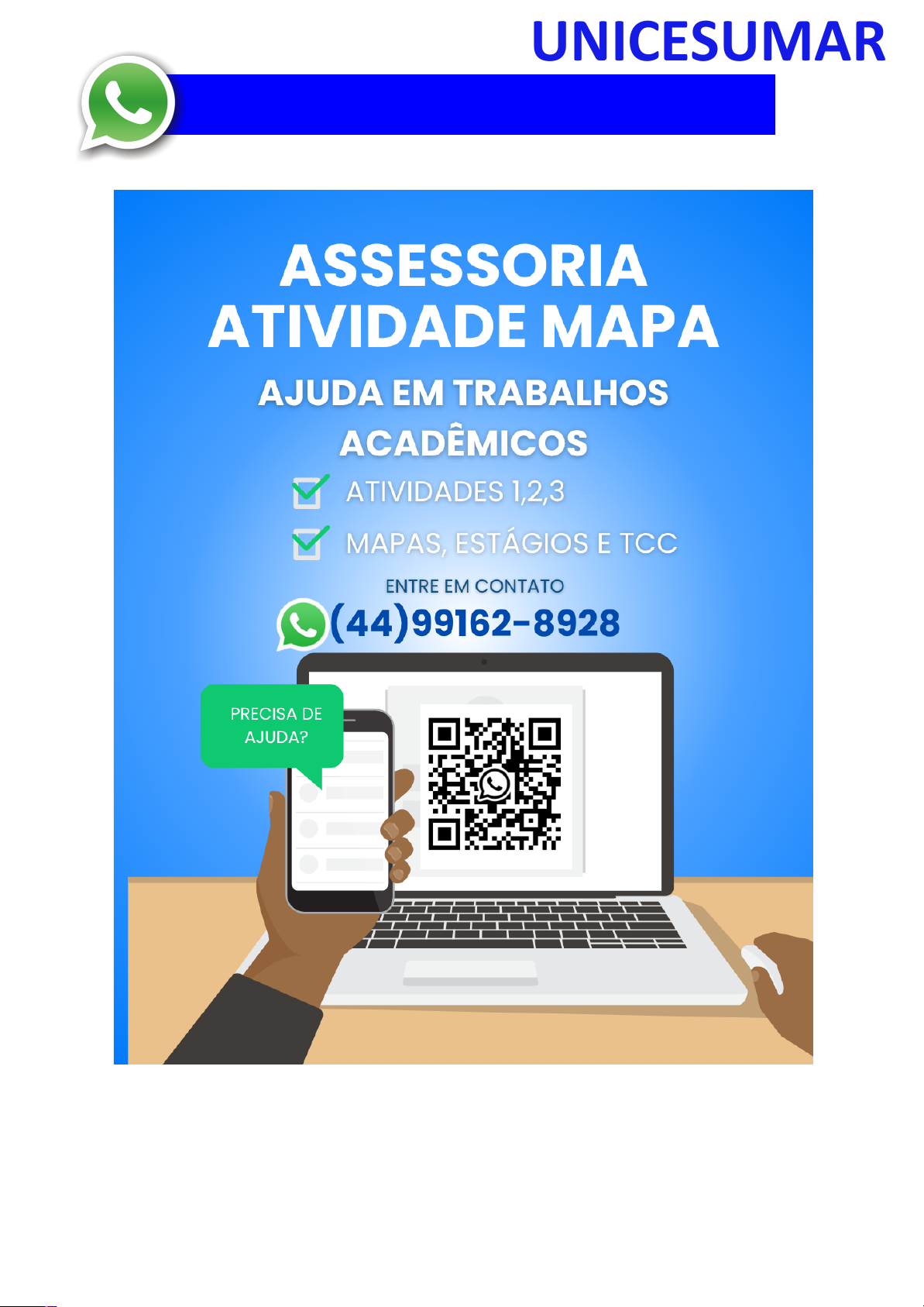RESPOSTA- (44) 99162-8928 MAPA - FISIOLOGIA GERAL E DO MOVIMENTO - 54_2025 A fisiologia humana e do exercício é uma área fundamental para a formação do educador físico, seja ele bacharel, voltado para o treinamento, prescrição de exercícios e promoção da saúde em diferentes contextos, ou licenciado, direcionado UNICESUMAR RESPOSTA- (44) 99162-8928 para a prática pedagógica na escola e para a formação integral dos estudantes por meio do movimento. Compreender como o organismo funciona em repouso e durante o exercício permite ao profissional interpretar respostas agudas, reconhecer adaptações crônicas ao treinamento e, a partir disso, planejar intervenções eficazes e seguras. Essa compreensão envolve desde o estudo da bioenergética e do metabolismo até os sistemas cardiorrespiratório, muscular e endócrino, que trabalham de forma integrada para manter a homeostase e sustentar o desempenho físico. ARDENGUE, Mariana; LUZ, Suelen R., Fisiologia geral e do movimento. Florianópolis, SC: Arqué, 2025. Nesta atividade, você será desafiado(a) a responder questões discursivas que contemplam os principais temas do livro da disciplina . Orientações gerais: -Leia com atenção a solicitação da pergunta e responda sempre de forma simples e objetiva. -Muitas perguntas são interpretativas, assim, é necessário que você entenda o conteúdo solicitado na questão, para conseguir elaborar sua resposta. -Utilize o arquivo MODELO MAPA – FISIOLOGIA GERAL E DO MOVIMENTO disponível na pasta Material da Disciplina , para responder esta atividade. -Utilize o livro em PDF (disponível dentro do ambiente da disciplina) para elaborar suas respostas. -Assista ao vídeo explicativo da atividade, disponível dentro do ambiente da disciplina. Tema 1 - Bioenergética e metabolismo do exercício 1. Preencha o quadro a seguir, considerando as características das vias de ressíntese de ATP: ATP-C P Glicólise anaeróbia Sistema oxidativo Dependente de O2 Substrato(s) Utilizado(s) Local onde a via acontece Velocidade de ressíntese de ATP Quantidade de ATP UNICESUMAR RESPOSTA- (44) 99162-8928 2. Quando iniciamos uma atividade física ou um exercício físico a exigência energética aumenta, impondo desafios as vias metabólicas. Nesse contexto, explique o que significa o período descrito como “déficit de oxigênio”. 3. A intensidade e a duração do exercício são os dois principais fatores que determinam qual via metabólica predominara durante a atividade ou exercício físico. A partir disso, descreva qual via metabólica de ressíntese de ATP predomina em cada modalidade esportiva apresentada a seguir: a) Maratona (aproximadamente 2 horas de prova): b) 100 metros rasos na natação (aproximadamente 50 segundos de prova) c) 100 metros rasos no atletismo (aproximadamente 10 segundos de prova): d) 800 metros com barreiras no atletismo (aproximadamente 1m e 35 segundos): Tema 2 - Sistemas cardiorrespiratório e suas respostas ao exercício 1. Descreva de forma simples e objetiva qual a função do sistema respiratório e do sistema cardiovascular no fornecimento de O2. 2 . Durante o exercício, o sistema cardiorrespiratório realiza uma série de ajustes imediatos, denominados respostas agudas ao exercício, cujo principal objetivo e fornecer mais oxigênio aos músculos e, assim, gerar mais energia para manter a atividade física. Considerando essas informações, responda: a) Qual é a resposta aguda da Frequência cardíaca (FC) durante um exercício contínuo. b) O que é Débito Cardíaco (DC) e qual a resposta dessa variável durante o exercício físico? c) O que acontece com o fluxo sanguíneo durante o exercício físico? d) O que significa a sigla "VO2" e o que essa variável representa? Tema 3 – Sistema muscular e exercício 1 . A contração muscular pode ser classificada em diferentes tipos, conforme a relação entre a forca gerada pelo musculo e o movimento resultante. Cite e descreva os três tipos de contração muscular, apresentando um exemplo de cada. 2. Cite 3 adaptações crônicas (estruturais e/ou funcionais) que ocorrem com a pratica regular do exercício ao longo do tempo, no musculo esquelético. Tema 4 – Sistema endócrino e exercício 1 . O cortisol e a testosterona são hormônios que possuem papéis relevantes no metabolismo, na adaptação ao esforço e na regulação de processos corporais. Esses hormônios diferem quanto ao local de produção, composição química e forma de atuação, refletindo funções específicas no organismo. Preencha o quadro a seguir, descrevendo o que se pede. UNICESUMAR RESPOSTA- (44) 99162-8928 Testostero na Cortis ol Local onde é produzido Estrutura química Classificação da ação Funções principais Respostas principais ao exercício Tema 5 – Exercício físico e variáveis fisiológicas 1 . O que é o VO2máx (o que ele representa) e como ele pode ser utilizado na prática profissional? 2. Como a FCmáx pode ser utilizada na prática profissional? 3. Como a escala de Percepção Subjetiva de Esforço (PSE) pode ser utilizada na pratica profissional? Orientações finais: -Cópias parciais ou totais serão zeradas. -Poste seu arquivo em formato word (.doc) ou PDF. Outros formatos não serão aceitos. -Certifique-se se o arquivo enviado está correto. Se houver algum problema na postagem, comunique ao seu mediador, com urgência, pois após a finalização do prazo, não há como alterar o arquivo. Se seu arquivo for enviado de maneira incorreta, você poderá ficar sem nota. -Todas as atividades do curso são avaliadas conforme a solicitação. Sendo assim, o descumprimento dessas orientações pode acarretar algum UNICESUMAR