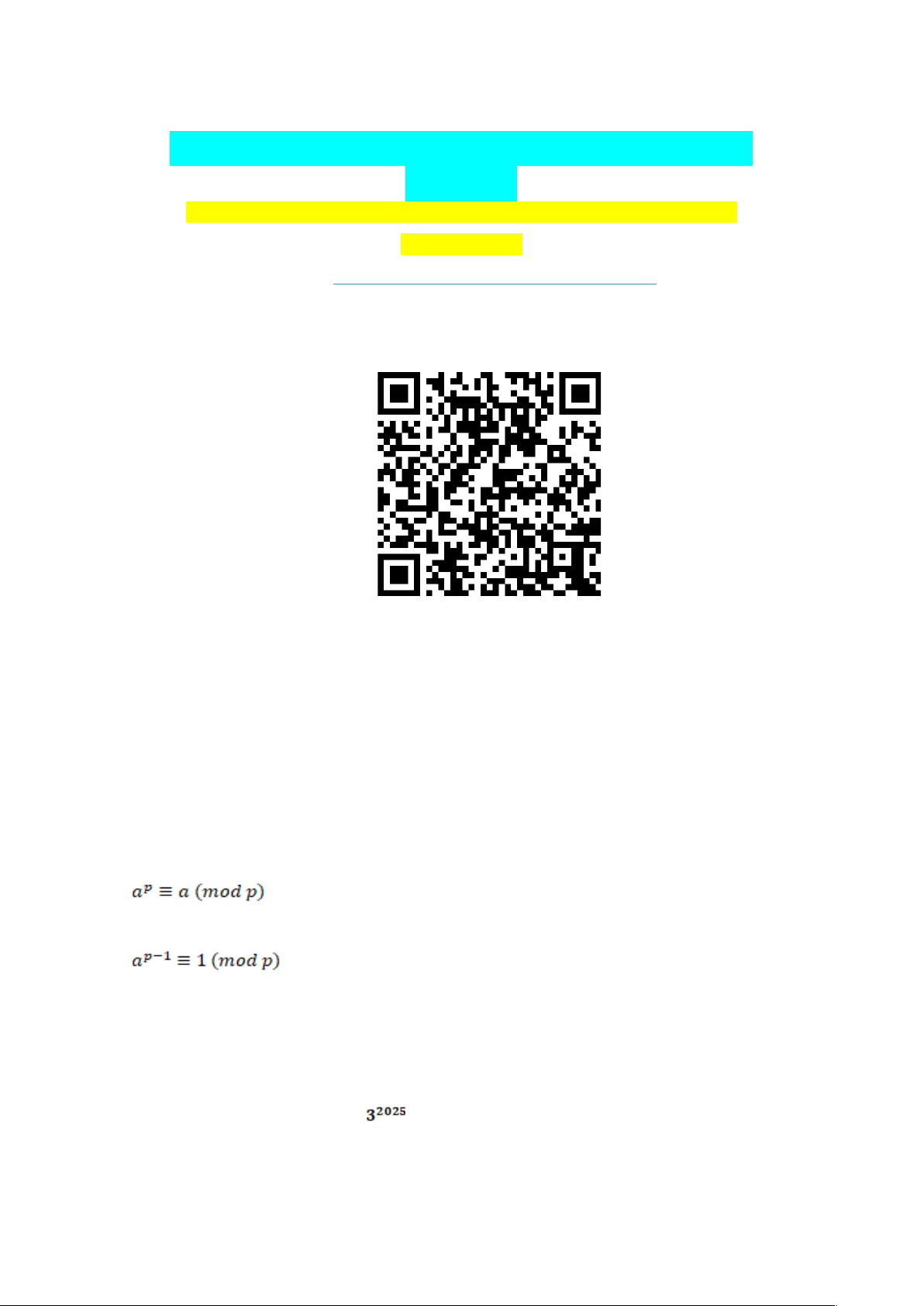MAPA - MAT - ESTRUTURAS ALGÉBRICAS - 54_2025 Assessoria nos seus TRABALHOS entre em contato com a DL ASSESSORIA E-mail: assessoriaacademicadl@gmail.com · (15) 99143-3322 QUESTÃO 1 Nesta atividade, vamos explorar um dos resultados mais fascinantes e úteis da Teoria dos Números, que nos permite resolver problemas de potenciação e divisibilidade que parecem complexos à primeira vista. A ferramenta que usaremos é conhecida como o Pequeno Teorema de Fermat, uma joia da matemática desenvolvida por Pierre de Fermat, um jurista do século XVII que tinha a matemática como sua grande paixão e contribuiu com descobertas geniais para a área. Vamos então ao enunciado do resultado que nos interessa: Pequeno Teorema de Fermat: Seja p um número primo e a ∈ Z. Então . Em particular, se p não divide a, então . Esse resultado é muito útil se precisarmos encontrar o resto da divisão de alguma grande potência de um número por um número primo que não faz parte de sua decomposição em fatores primos. Propomos assim que, utilizando esse teorema e pesquisando mais sobre o assunto, você encontre o resto da divisão de por 5. ORIENTAÇÕES PARA O MAPA: 1 PASSO: Pesquise em algum material mais informações sobre o Pequeno Teorema de Fernat, caso seja necessário. 2 PASSO: Você deve digitar toda a resolução do exercício. Utilize as ferramentas do WORD, como EQUATION (Fica localizado na aba Inserir do lado direito - ou através do comando Alt +). Não serão aceitos trabalhos realizados à mão e fotografados/digitalizados. 3 PASSO: Leia atentamente o que você escreveu e revise os conceitos e símbolos. 4 PASSO: Realize uma cuidadosa correçào ortografica em seu texto e faça a atividade no template (modelo) disponibilizado no Material da Disciplina. 5 PASSO: Anexe o arquivo na Atividade, clicando sobre o local especificado (caso tenha dúvidas em como enviar o arquivo no STUDEO, entre em contato com a mediação). 6 PASSO: Após anexar o MAPA, certifique-se que se trata do arquivo correto, clique no botão Responder e, posteriormente, em Finalizar Questionário (após finalizar o Questionário, não será possível realizar qualquer modificação no arquivo enviado). 57 image4.png image5.png image1.png image2.png image3.png