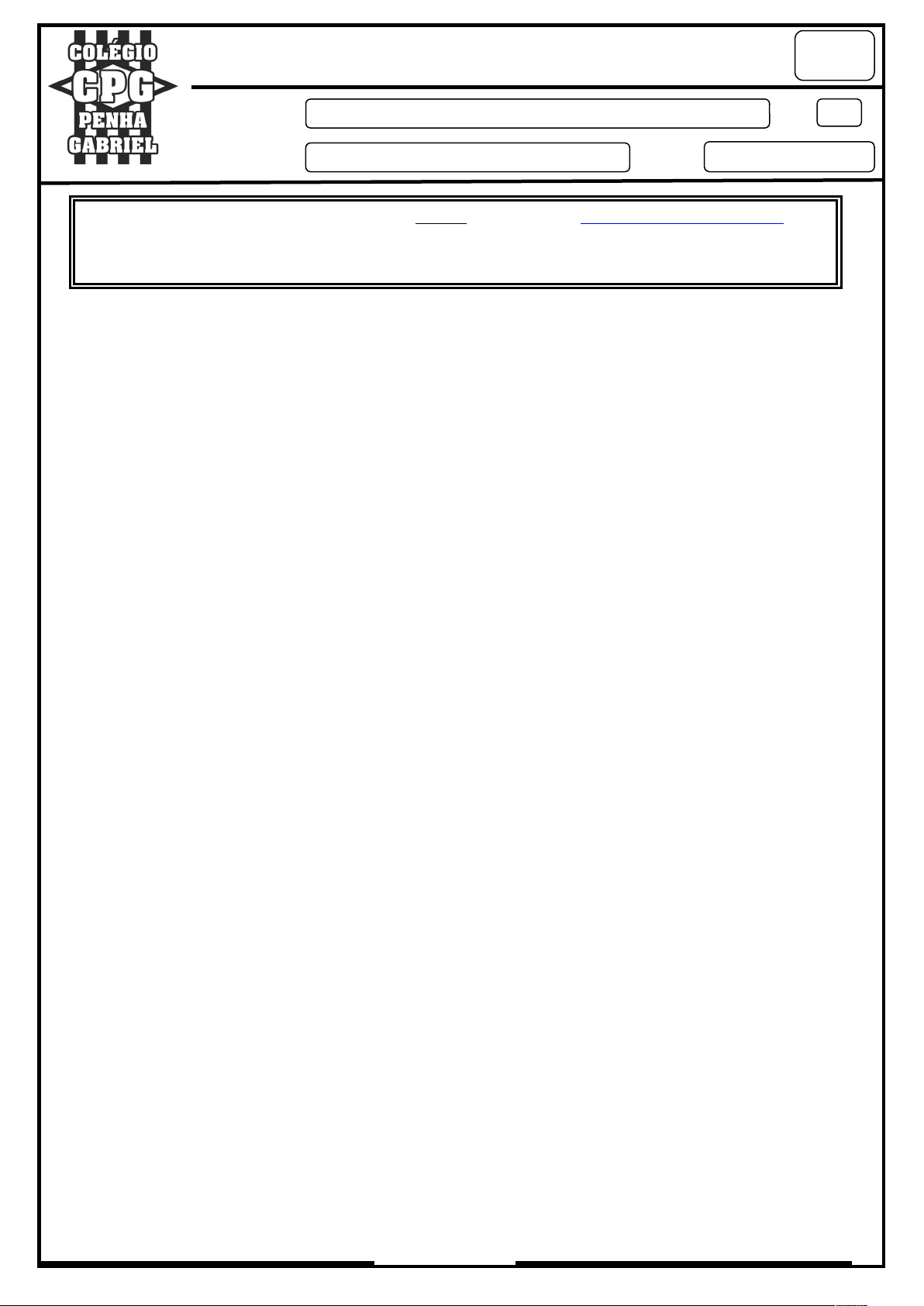 1) Assinale corretamente: (1,0) Que atividades econômicas se somaram à produção açucareira e movimentaram a economia colonial? (a) Indústria e produção têxtil. (b) Comércio e navegação. (c) Pecuária e mineração. (d) Indústria e extrativismo. 2) Assinale corretamente: (1,0) No século XVII, contribuíram para a penetração do interior brasileiro: (a) a Guerra do Contestado e o desenvolvimento da cultura do algodão. (b) a captura de indígenas e a busca pelos metais preciosos. (c) a necessidade de defesa e o combate aos franceses. (d) a Guerra de Canudos e a transferência da capital da Colônia para o Rio de Janeiro. 3) Assinale corretamente: (1,0) Conflito que se estendeu de 1707 a 1709 na região de Minas Gerais que marcou a rivalidade entre paulistas e estrangeiros pela posse das regiões mineradoras: (a) Guerra de Secessão. (b) Guerra dos Mascates. (c) Guerra do Contestado. (d) Guerra dos Emboabas. 4) Responda: a) Explique como funcionava o sistema de contrato instituído pelo governo português, em 1739. (1,0) ____________________________________________________________________________________________________________________________________________________________________________________________________________________________________________________________________________________________________________ b) Explique como funcionava a derrama. (1,0) ____________________________________________________________________________________________________________________________________________________________________________________________________________________________________________________________________________________________________________ Enviar foto do Teste resolvido até o dia 27/11 para o e-mail � HYPERLINK "mailto:prof.tati.cpg@bol.com.br"��prof.tati.cpg@bol.com.br� com o seguinte título: CPG – Turma: 701 - “Nome completo do aluno”. 1 CPG – 55 Anos