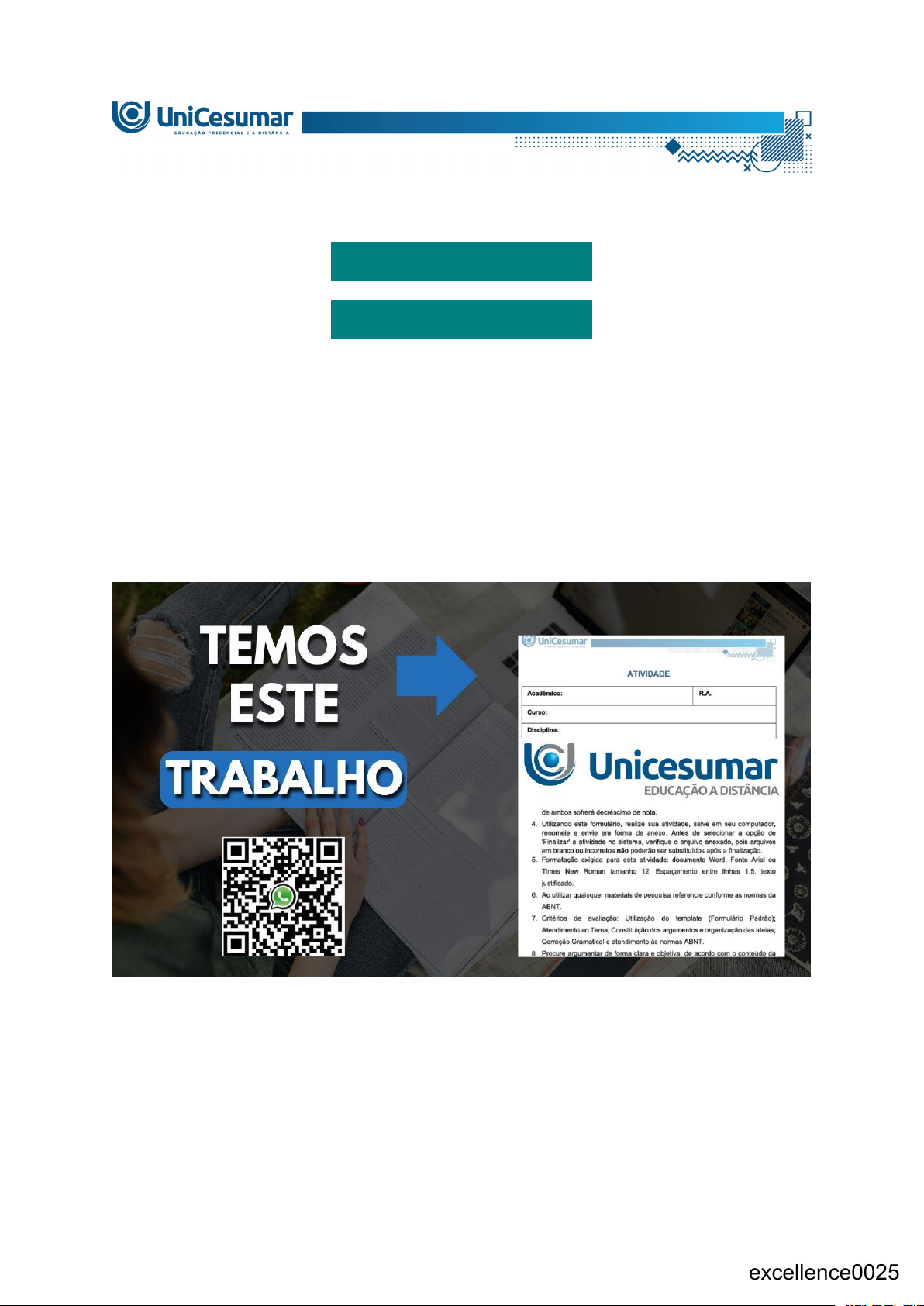 (99) 99119-3171 (99) 99119-3171 Olá!!! Somos da Assessoria Excellence Educacional e iremos te ajudar com este trabalho! Entre em contato conosco! PORTFÓLIO - GERON - IMERSÃO PROFISSIONAL: TÉCNICAS E PROCEDIMENTOS DE PRIMEIROS SOCORROS - 54_2025 PORTFÓLIO - GERON - IMERSÃO PROFISSIONAL: TÉCNICAS E PROCEDIMENTOS DE PRIMEIROS SOCORROS - 54_2025 Prezado estudante, Nesta atividade MAPA, você será convidado a explorar os componentes do atendimento da Ressuscitação Cardiopulmonar (RCP) em adultos e adolescentes. Esta atividade excellence0025 conectará teoria e prática, abordando desde o reconhecimento da Parada Cardiorrespiratória (PCR) até as ações de compressões torácicas e o uso do Desfibrilador Externo Automático (DEA). Seu desafio: Imagine que você é o profissional de saúde responsável por iniciar o atendimento de uma vítima em PCR no ambiente extra-hospitalar. Sua missão é aplicar corretamente os passos da cadeia de sobrevivência, demonstrar a utilização do DEA e registrar a execução prática das manobras de compressão torácica. Ao final, você deverá refletir sobre como essas condutas aumentam a chance de sobrevivência da vítima. O objetivo desta atividade é criar um paralelo entre as diretrizes de RCP da American Heart Association (AHA) e a prática em primeiros socorros, estimulando a aplicação correta, rápida e segura. Você deve entregar sua atividade utilizando o formulário padrão respondendo as seguintes questões: 1. Quais são os componentes do atendimento da RCP para adultos e adolescentes? Liste todos os passos e explique a forma de execução de cada um. 2. Descreva a função do DEA (Desfibrilador Externo Automático) durante o atendimento da PCR. Explique como o equipamento auxilia o socorrista na tomada de decisão e na reversão dos ritmos chocáveis. 3. Parte prática – agora com auxílio de um colega ou familiar, registre em fotos a execução dos seguintes momentos: a) Você na posição correta para realizar compressão torácica em uma vítima no chão. b) O procedimento de reconhecimento da PCR (checagem de responsividade). Em uma vítima no chão. Obs: foto da atividade proposta precisa estar anexada ao formulário-padrão, devendo ser incluída de forma que não identifique rostos, preservando assim a identidade e a privacidade excellence0025 Atenção: durante a simulação prática, não realize compressões reais para evitar lesões no colega ou familiar. Apenas demonstre a posição correta. Fonte: STIES, S. W.; ORTOLAN, X. R. Técnicas e procedimentos de primeiros socorros. Maringá: Unicesumar, 2019. Reimpr. 2022. Para uma boa execução da atividade: - Utilização das normas da ABNT. - Utilizar o Formulário do MAPA, disponível no campo “Material da Disciplina”. - Assistir ao vídeo explicativo, gravado pelo Professor. excellence0025