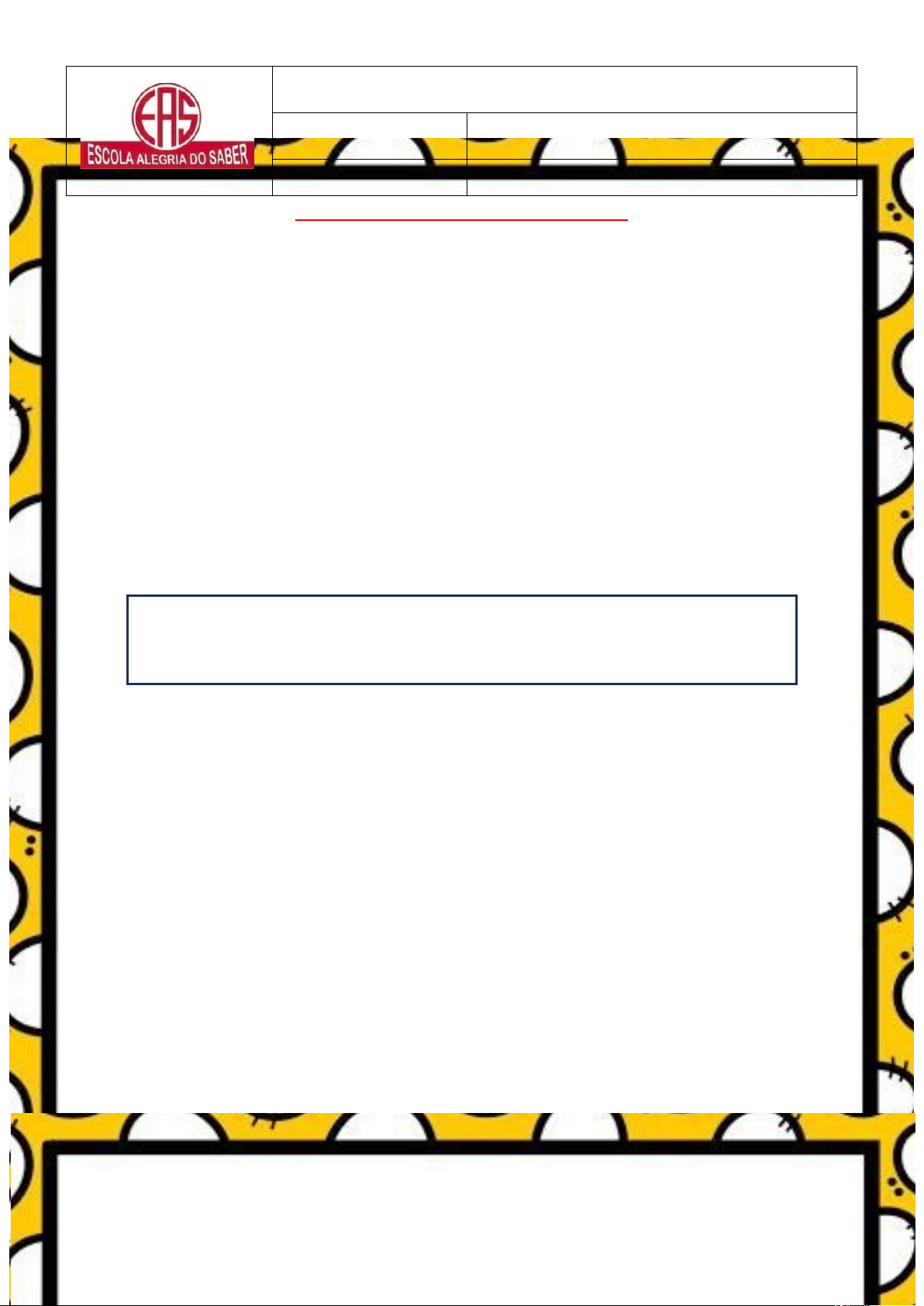 Escola: Alegria do Saber Data: Aluno(a): Pró: Daniele Série: 3º Ano Prova de Português – II unidade 1º - Crie novas palavras usando ç e Til, como no exemplo. a) operar ___________________ d) proibir ____________________ b) avaliar ___________________ e) explicar __________________ c) respirar ___________________ f ) iluminar ___________________ 2º - Circule a sílaba tônica das palavras abaixo: a) palhaço d) minhoca b) história e) periquito c) aluno f) ônibus 3º - No texto: A música lírica encantava a plateia animada. No espetáculo, a emoção foi total e o cantor cantou canções de amor. a) Encontre uma palavra oxítona _______________________________ b) Encontre uma palavra paroxítona ____________________________ c) Encontre uma palavra proparoxítona _________________________ 4º - Troque os substantivos próprios por substantivos comuns nas frases a seguir. a) Tereza é bastante alegre e gosta de cantar. __________________________________________________________________________________ b) João e Pedro são gêmeos e estão fazendo 5 anos. __________________________________________________________________________________ c) Ano que vem vou estudar no Sesi. __________________________________________________________________________________ d) Sempre que podemos, eu e minha família almoçamos na Pizzaria Veneza. __________________________________________________________________________________ 5º - Escreva os coletivos das palavras: a) peixes ________________________ b) image1.jpeg image2.jpeg Prova de Português – II unidade 1º - Crie novas palavras usando ç e Til, como no exemplo. a) operar ___________________ d) proibir ____________________ b) avaliar ___________________ e) explicar __________________ c) respirar ___________________ f ) iluminar ___________________ 2º - Circule a sílaba tônica das palavras abaixo: a) palhaço d) minhoca b) história e) periquito c) aluno f) ônibus 3º - No texto: A música lírica encantava a plateia animada. No espetáculo, a emoção foi total e o cantor cantou canções de amor. a) Encontre uma palavra oxítona _______________________________ b) Encontre uma palavra paroxítona ____________________________ c) Encontre uma palavra proparoxítona _________________________ 4º - Troque os substantivos próprios por substantivos comuns nas frases a seguir. a) Tereza é bastante alegre e gosta de cantar. __________________________________________________________________________________ b) João e Pedro são gêmeos e estão fazendo 5 anos. __________________________________________________________________________________ c) Ano que vem vou estudar no Sesi. __________________________________________________________________________________ d) Sempre que podemos, eu e minha família almoçamos na Pizzaria Veneza. __________________________________________________________________________________ Escola: Alegria do Saber Data: Aluno(a): Pró: Daniele Série: 3º Ano