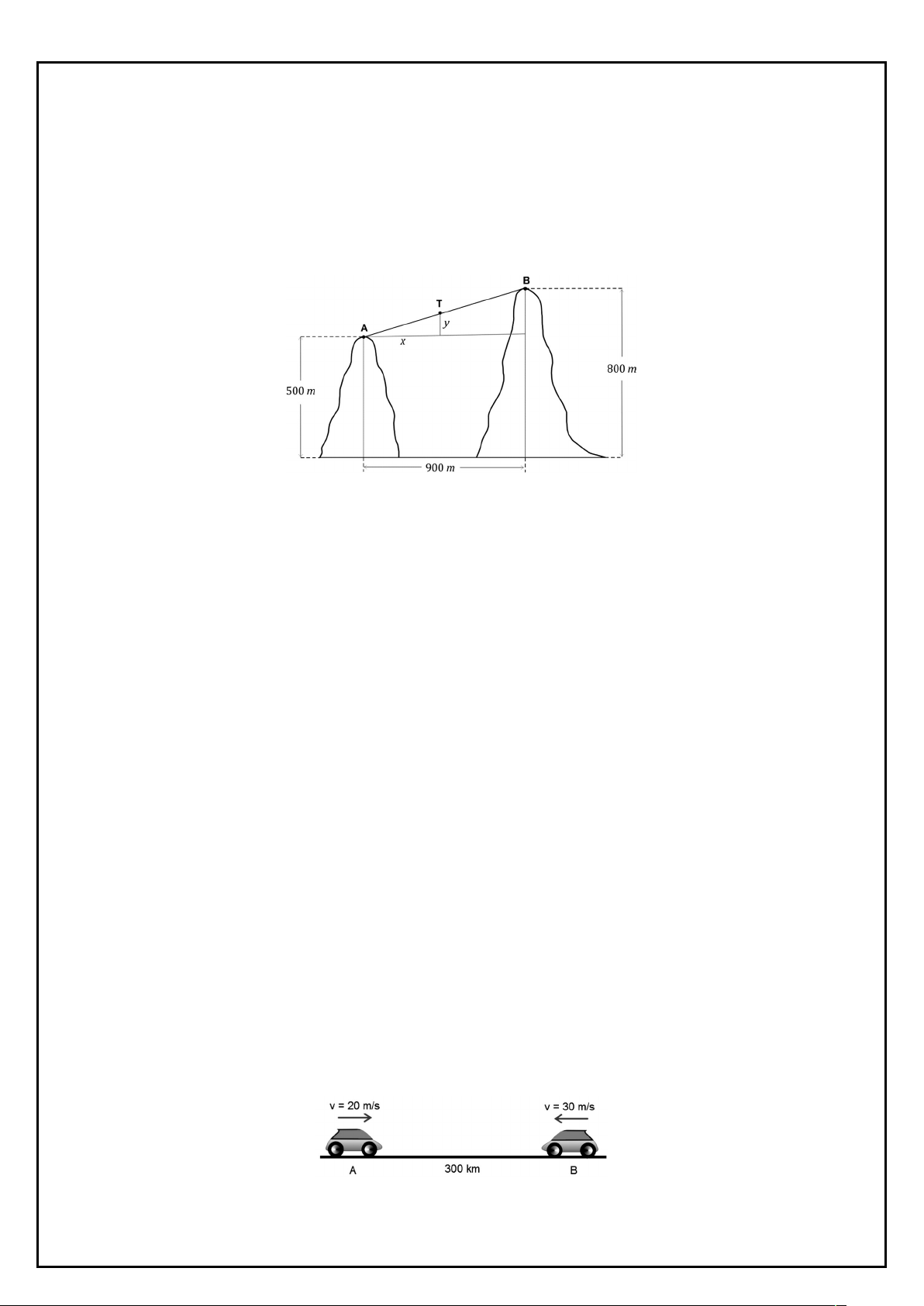 FÍSICA– 1o ano 01 - (FUVEST SP) Um teleférico transporta turistas entre os picos A e B de dois morros. A altitude do pico A é de 500 m, a altitude do pico B é de 800 m e a distância entre as retas verticais que passam por A e B é de 900 m. Na figura, T representa o teleférico em um momento de sua ascensão e x e y representam, respectivamente, os deslocamentos horizontal e vertical do teleférico, em metros, até este momento. a) Qual é o deslocamento horizontal do teleférico quando o seu deslocamento vertical é igual a 20m? b) Se o teleférico se desloca com velocidade constante de 1,5 m/s, quanto tempo o teleférico gasta para ir do pico A ao pico B? 02 - (UPE) Um automóvel vai de P até Q, com velocidade escalar média de 20 m/s e, em seguida, de Q até R, com velocidade escalar média de 10 m/s. A distância entre P e Q vale 1 km, e a distância entre Q e R, 2 km. Qual é a velocidade escalar média em todo o percurso em m/s? a) 15 b) 12 c) 9 d) 10 e) 20 03 - (FAVIP PE) A vazão de uma bomba de gasolina de um posto de combustível dá uma medida do volume de gasolina que é injetado no tanque de um automóvel por unidade de tempo. Suponha que uma bomba de gasolina tenha vazão constante de 50 litros por minuto. O tanque de combustível de um automóvel, de capacidade 40 litros, encontra-se inicialmente vazio. Quanto tempo demorará para encher um quarto do tanque do automóvel utilizando esta bomba? a) 10 s b) 12 s c) 30 s d) 45 s e) 60 s 04 - (UFGD) De duas cidades A e B, separadas por 300 km, partem dois carros no mesmo instante e na mesma direção, porém em sentidos opostos, conforme a figura a seguir. Os dois carros estão em movimento retilíneo uniforme. O carro da cidade A parte com velocidade inicial de 20 m/s; o carro da cidade B, 30 m/s. A distância da cidade A, quando os dois carros se cruzam, é? a) 100 km b) 120 km c) 150 km d) 180 km e) 200 km 05 - (ESPCEX) Um automóvel percorre a metade de uma distância D com uma velocidade média de 24 m/s e a outra metade com uma velocidade média de 8 m/s. Nesta situação, a velocidade média do automóvel, ao percorrer toda a distância D, é de: a) 12 m/s b) 14 m/s c) 16 m/s d) 18 m/s e) 32 m/s 06 - (UNIOESTE PR) O motorista de um caminhão percorre a metade de uma estrada retilínea com velocidade de 40 km/h, a metade do que falta com velocidade de 20 km/h e o restante com velocidade de 10 km/h. O valor mais próximo para a velocidade média para todo o trajeto é de a) 30,0 km/h. b) 20,0 km/h. c) 33,3 km/h. d) 23,3 km/h. e) 26,6 km/h. 07 - (UFRJ) João fez uma pequena viagem de carro de sua casa, que fica no centro da cidade A, até a casa de seu amigo Pedro, que mora bem na entrada da cidade B. Para sair de sua cidade e entrar na rodovia que conduz à cidade em que Pedro mora, João percorreu uma distância de 10 km em meia hora. Na rodovia, ele manteve uma velocidade escalar constante até chegar à casa de Pedro. No total, João percorreu 330 km e gastou quatro horas e meia. a) Calcule a velocidade escalar média do carro de João no percurso dentro da cidade A. b) Calcule a velocidade escalar constante do carro na rodovia. 08 - (UNIFOR CE) É dado o gráfico s x t para certo movimento retilíneo. A velocidade média no intervalo de 1,0 s a 4,0 s é, em m/s, a) 48 b) 16 c) −12 d) −16 e) −48 09 - (UFSCar SP) Um navio é responsável por verificar a energia mareomotriz de determinada região da costa. Na coleta de informações, o timoneiro traça uma rota rumo ao continente. Algum tempo depois, na cabine do capitão, um alarme alerta para as leituras feitas automaticamente pelo sonar, que mostram a rápida diminuição da profundidade do leito oceânico. Supondo que a inclinação do leito oceânico seja constante e sabendo que a quilha da embarcação está 3 m abaixo da linha d’água, se nenhuma atitude for imediatamente tomada, o encalhe irá ocorrer entre os instantes a) 1,0 minuto e 1,5 minutos. b) 1,5 minutos e 2,0 minutos. c) 2,0 minutos e 2,5 minutos. d) 2,5 minutos e 3,0 minutos. e) 3,0 minutos e 3,5 minutos. 10 - (FAMECA SP) Três amigos, João, Marcos e Sílvia, formaram uma equipe para disputar uma maratona de revezamento na qual deveriam correr, ao todo, 42 km, sendo que cada um deveria correr 14 km. No dia da prova, João correu sua parte com velocidade média de 10 km/h; Marcos, com 6 km/h e Sílvia, com 12 km/h. Pode-se afirmar que a velocidade média da equipe, em km/h, foi de, aproximadamente, a) 8,6. b) 8,9. c) 9,3. d) 9,6. e) 10,1. 11 - (FATEC SP) As teorias de fluxos de tráfego estudam as relações entre os veículos, as vias e a infraestrutura disponível. Como as características do tráfego variam no tempo e no espaço, os estudos costumam adotar valores médios, sendo que essas médias podem ser temporais ou espaciais. Características fundamentais do tráfego Fluxo (F), em veículos/hora: é o número de veículos que atravessam uma determinada seção transversal de uma via na unidade de tempo. Densidade (D), em veículos/quilômetro: é o número de veículos que, em certo momento, ocupam uma dada extensão de uma via. Velocidade Média (V), em quilômetros/hora: D F V = Espaçamento (E), em metros/veículo: é a distância entre a parte dianteira de um veículo e a parte dianteira do veículo subsequente, que trafegam em uma mesma faixa. (www.transportes.ufba.br/.../Estudos_de_Trafego_Variaveis_do_Trafego.doc Acesso em: 11.03.2011. Adaptado) Considere que em uma certa avenida, passam em média 2 400 veículos por hora, com velocidade média de 60 km/h. Sendo assim, o espaçamento médio entre dois veículos que ocupam posições consecutivas em uma mesma faixa é, em metros, a) 25. b) 30. c) 35. d) 40. e) 45. 12 - (FATEC SP) Numa viagem de carro de São Paulo a Santos, percurso de aproximadamente 60 km, um motorista é informado pelo rádio que o tempo médio de viagem é estimado em 45 minutos. Considerando que ele chegue a Santos no tempo previsto, a velocidade média