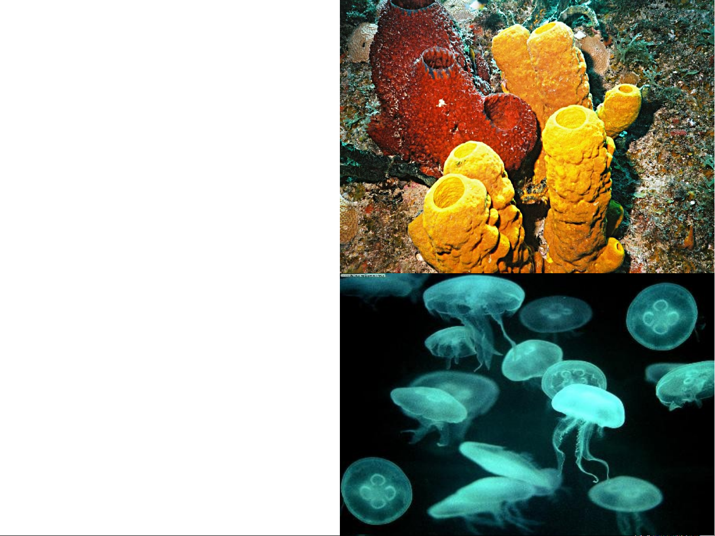 Filo Porífera e Cnidária Características Gerais Aplicações Industriais, Comerciais, Médicas e Ecológicas Curiosidades Classificação Científica Domínio: Eukaryota Reino: Animalia Sub-reino: Parazoa Classes: Calcarea, Hexactinellida, Demospongiae Filo Porífera Porífera (do latim porus, poro + phoros, portador de) é um filo do reino Animalia, onde se enquadram os animais conhecidos como esponjas. Características Gerais Organismos simples Maioria das espécies marinhas Sésseis Alimentam-se por filtração Reprodução Sexuada e Assexuada Não possuem tecidos verdadeiros, também não apresentam músculos, sistema nervoso nem órgãos internos. Alimenta-se bombeando a água através das paredes do corpo e retendo as partículas de alimento nas suas células, cada célula alimenta-se por si própria. Reprodução Sexuada Reprodução Assexuada Importância dos Poríferos *Algumas espécies de esponja produzem toxinas, dentre a qual esta a que permitiu a produçao do AZT, antiviral usado no tratamento da AIDS. *Algumas são de grande valor comercial, pois o seu esqueleto pode ser usado como esponja para o banho, após decomposição de todas as células vivas, já que são muito macias e absorventes. *Antigamente pessoas que sofriam de problemas de tireoide utilizam os poríferos já que são ricos em iodo. *Os poríferos possuem grande importância ecológica, abrigam grande comunidade de organismos aquáticos e servem de alimento para muitas teias alimentares. *As esponjas produzem uma grande diversidade de metabólitos secundários, muitos dos quais têm estruturas originais de grande interesse para a farmacologia e a pesquisa biomédica. Doenças Transmitidas Em algumas espécies de esponjas, formam-se células finas e chatas, que secretam substâncias químicas irritantes (peçonha) para a pele humana. Quando as espículas penetram na pele com a consequente inoculação da peçonha, é uma dermatite desagradável e dolorosa. Prevenção Embora esses acidentes não sejam muito comuns, recomenda-se o uso de luvas para o manuseio destes animais. A roupa de neoprene dos mergulhadores protege em caso de contato brusco. Tratamento Irrigue a região afetada com ácido acético à 5% (vinagre) por 10 a 15 minutos. Após essa aplicação, seque a pele. Depile o local afetado com esparadrapo ou lâmina, para remover a maior parte das espículas que possam estar encravadas na pele. Repita o tratamento com ácido acético à 5% por 5 minutos.Aplique uma camada fina de loção de hidrocortisona 0,5 a 21%, 2 vezes ao dia, até que a irritação desapareça. Nas manifestações alérgicas graves, com formação de grande edemas e fortes dores locais, administre medicação sistêmica, de acordo com a gravidade do caso. Curiosidades *No uso comum, o termo esponja é usado somente para designar os esqueletos desses animais, após a matéria viva ter sido removida por maceração e lavagem. O material de que essas esponjas são compostas é a espongina (tipo de colágeno). *Esponjas marinhas vêm de peixarias no Mediterrâneo e nas Índias Ocidentais. A produção de esponjas sintéticas tem diminuído muito sua pesca nos últimos anos. *As esponjas são um dos grupos de organismos com maior percentagem de espécies produtoras de compostos antibióticos, antitumorais e antivirais. * Existem mais de 15 000 espécies modernas de esponjas conhecidas *Como demoram muito para crescer, podem viver até 50 anos. Filo Cnidária Classificação Científica Reino: Animalia Filo: Cnidaria Classes: Anthozoa, Scyphozoa, Cubozoa, Hydrozoa, Conulata Cnidaria (do grego knidos, urticante, e do latim aria, sufixo plural) é um filo de animais aquáticos, de que fazem parte as hidras de água doce, medusas, alforrecas ou águas-vivas, que são normalmente oceânicas, os corais, anémonas-do-mar e as caravelas. Características Gerais Apresentam polimorfismo: pólipo e medusa. Simetria radial. Boca rodeada de tentáculos. Não possui sistema circulatório, respiratório e excretor. Reprodução sexuada e assexuada. Polimorfismo e Simetria Os pólipos têm corpo cilíndrico e podem viver fixos a um substrato ou se locomoverem através de cambalhotas. Já as medusas são planctónicas, se movimentam pouco. Reprodução Sexuada Classe Hydrozoa Reprodução Assexuada Importância dos Cnidários *Os recifes de corais proporcionam ambiente ideal para o desenvolvimento de fauna e flora marinha. Devido às condições de iluminação e transparência da água, os recifes de corais são localidades de alta produtividade biológica, são as comunidades mais ricas em biodiversidade. Acidentes causados por Cnidários São comuns ao redor do mundo, incluindo acidentes graves e com registro de fatalidades em alguns mares. Todos os cnidários possuem cnidócitos, tentáculos com células urticantes, e são potencialmente perigosos para o ser humano sensibilidade ao efeito tóxico varia muito e pode estar associada a outro problema de saúde que a pessoa já apresente. As medusas e caravelas são encontradas em todos os mares. Vivem em águas claras, quentes e não muito profundas. Ao entrar em contato com a pele humana os tentáculos desses animais podem provocar vários efeitos. Sintomas: Leve sensação de formigamento, vermelhidão e inchaço da pele, dores abdominais, alteração dos batimentos cardíacos, dificuldades na respiração, suor intenso, náusea e vômitos. Ainda podem surgir efeitos alérgicos imediatos ou mais tardios. Tratamento: Em caso de acidentes, a vitima deve ser retirada imediatamente da água para evitar o afogamento. Em seguida, retirar os tentáculos aderidos à pele, ou mesmo à roupa de neoprene, com auxílio de toalhas, algas ou areia. Aplicação, sobre as lesões, de álcool, solução de amônia, bicarbonato de sódio ou solução de ácido bórico; cortisona e anti-histamínicos em intoxicações graves. Curiosidades *Chironex fleckeri, água-viva que ocorre no litoral da Austrália e pode 