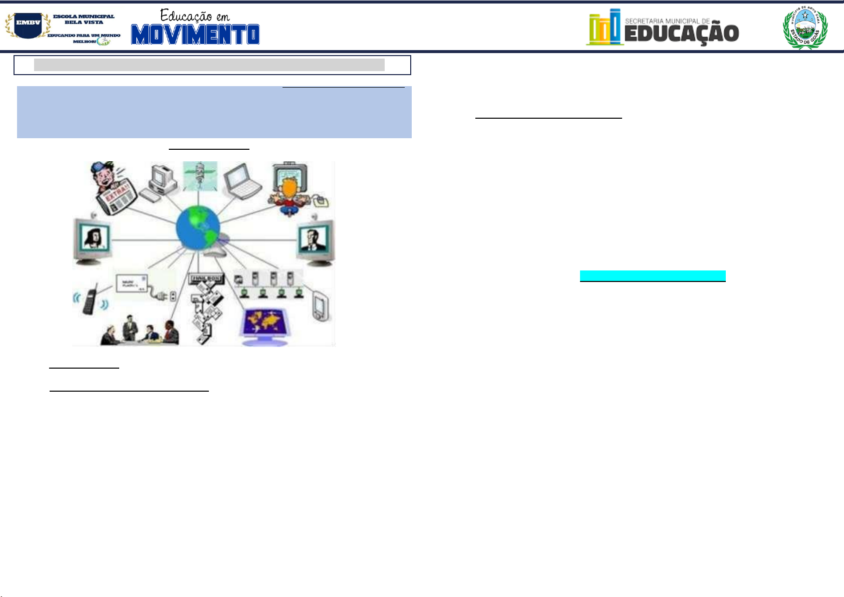 Escola Municipal Bela Vista Disciplina: GEOGRAFIA Ano: 8º Ano Professores: LENA SOLTO E JAILZA NERY ESCOLA MUNICIPAL BELA VISTA APOSTILA DE GEOGRAFIA DO 1º BIMESTRE – 8º ANO Na aula de hoje falaremos sobre: Globalização. Leia o texto com bastante atenção, copie e responda no caderno as atividades propostas. Caso tenha alguma dúvida, me envie uma mensagem no horário de aula via WhatsApp. Ao término, fotografe os exercícios do caderno, que devem ser feitos à caneta. APOSTILA DE GEOGRAFIA – 8º ANO 1ª SEMANA DO 1º BIMESTRE Data de aplicação: 12/02/2021 GLOBALIZAÇÃO A globalização é um processo de integração social, econômica e cultural entre as diferentes regiões do planeta. Pontos positivos da Globalização - Como principal ponto positivo da globalização podemos citar os avanços tecnológicos que tornam mais fácil a vida das pessoas. Ela facilita o fluxo de informação e de capitais (dinheiro) mediante inovações nas áreas das Telecomunicações e da Informática. - Instantaneidade e velocidade das informações (por exemplo, via internet). - Os benefícios da Globalização também estão relacionados ao livre comércio. A globalização permite que a população tenha mais opções de produtos no mercado para escolher. - Além disso, quando existe uma maior abertura comercial, isto é, quando as empresas de países diferentes têm liberdade para negociar, os preços tendem a ficar menores. - Maior acesso do consumidor a produtos importados melhores e mais baratos, assim como produtos nacionais. - Investimentos estrangeiros em outros países. - Desenvolvimento tecnológico. - Possibilidade de troca de culturas e costumes (por exemplo a culinária), enriquecendo o conhecimento sobre outros países. - Melhora do relacionamento entre países. Pontos negativos da Globalização - Os países em desenvolvimento podem ter que competir muito com indústrias de países desenvolvidos. As novas indústrias podem enfrentar custos mais altos de produção do que as indústrias avançadas, que já têm mais experiência de mercado. - Nas economias pequenas, as marcas multinacionais podem forçar os comerciantes do país, diminuindo a diversidade cultural e a valorização dos produtos nacionais. - Concentração de riqueza: a maior parte do lucro das empresas transnacionais fica nos países desenvolvidos; - Aumento do desemprego: a Globalização e a revolução tecnológica e científica causaram a automação da produção, ou seja, robôs e máquinas realizando o trabalho antes feito por humanos. - Descaracterização de costumes culturais. - Exploração de matéria-prima e mão de obra barata. ATIVIDADE – GLOBALIZAÇÃO 1) O que é Globalização? 2) Complete as lacunas a seguir: a) Como principal ponto positivo da globalização podemos citar ________________________________que tornam mais fácil a vida das pessoas. b) A Globalização facilita _________________________________mediante inovações nas áreas das Telecomunicações e da Informática. c) Os benefícios da Globalização também_____________________________________. A globalização permite que a população tenha mais opções de produtos no mercado para escolher. d) Na Globalização _____________________________________________podem ter que______________________________________________________. As novas indústrias podem enfrentar ____________________________________________ do que as indústrias avançadas, que já têm mais experiência de mercado. Escola Municipal Bela Vista Disciplina: GEOGRAFIA Ano: 8º Ano Professores: LENA SOLTO E JAILZA NERY ESCOLA MUNICIPAL BELA VISTA APOSTILA DE GEOGRAFIA DO 1º BIMESTRE – 8º ANO Na aula de hoje falaremos sobre: Globalização no Brasil. Leia o texto com bastante atenção, copie e responda no caderno as atividades propostas. Caso tenha alguma dúvida, me envie uma mensagem no horário de aula via WhatsApp. Ao término, fotografe os exercícios do caderno, que devem ser feitos à caneta. APOSTILA DE GEOGRAFIA – 8º ANO - 2ª SEMANA DO 1º BIMESTRE Data de aplicação: 26/02/2021 GLOBALIZAÇÃO NO BRASIL Somente a partir da década de 1990 que a Globalização passou a ter um maior impacto na economia brasileira. A partir de 1990, com o neoliberalismo sendo instalado no país, o Brasil adotou diversas medidas para crescer no mundo globalizado. Houve crescimento da indústria, privatização de estatais e o surgimento de empresas multinacionais (ou transnacionais). Multinacionais, também conhecidas como transnacionais: são empresas que possuem matriz num país e possuem atuação em diversos países. Geralmente são grandes empresas que instalam filiais em outros países em busca de mercado consumidor, energia, matéria-prima e mão de obra barata. Exemplos de multinacionais instaladas no Brasil: Podemos citar como exemplos de multinacionais que atuam no Brasil atualmente e seus países de origem: IBM (Estados Unidos), Volkswagen (Alemanha), Fiat (Itália), General Motors (Estados Unidos), Toyota (Japão), Nokia (Finlândia), Nestlé (Suíça), Sony (Japão), Siemens (Alemanha), Dell (Estados Unidos), Peugeot (França), entre outras. O neoliberalismo no Brasil começa com o governo de Fernando Collor de Mello e se consolida com a chegada de Fernando Henrique Cardoso à presidência: Houve redução de investimentos públicos e privatização de empresas estatais. Exemplos das Privatizações no Brasil (transferência do que é do Estado (governo) para a iniciativa privada. - Privatização da telefonia estatal como a Telebrás, Telerj, Telesp, Telemig, etc. e da empresa nacional Embratel. - Venda dos bancos estaduais como Banerj, Banestado, Banesp, etc. - Privatização de empresas como Embraer, Vale do Rio Doce e Companhia Siderúrgica Nacional. - Redução de 20% dos funcionários públicos em nível federal e estadual por meio da aposentadoria antecipada ou demissão. - Terceirização de trabalhadores e vários serviços do estado. - Abert